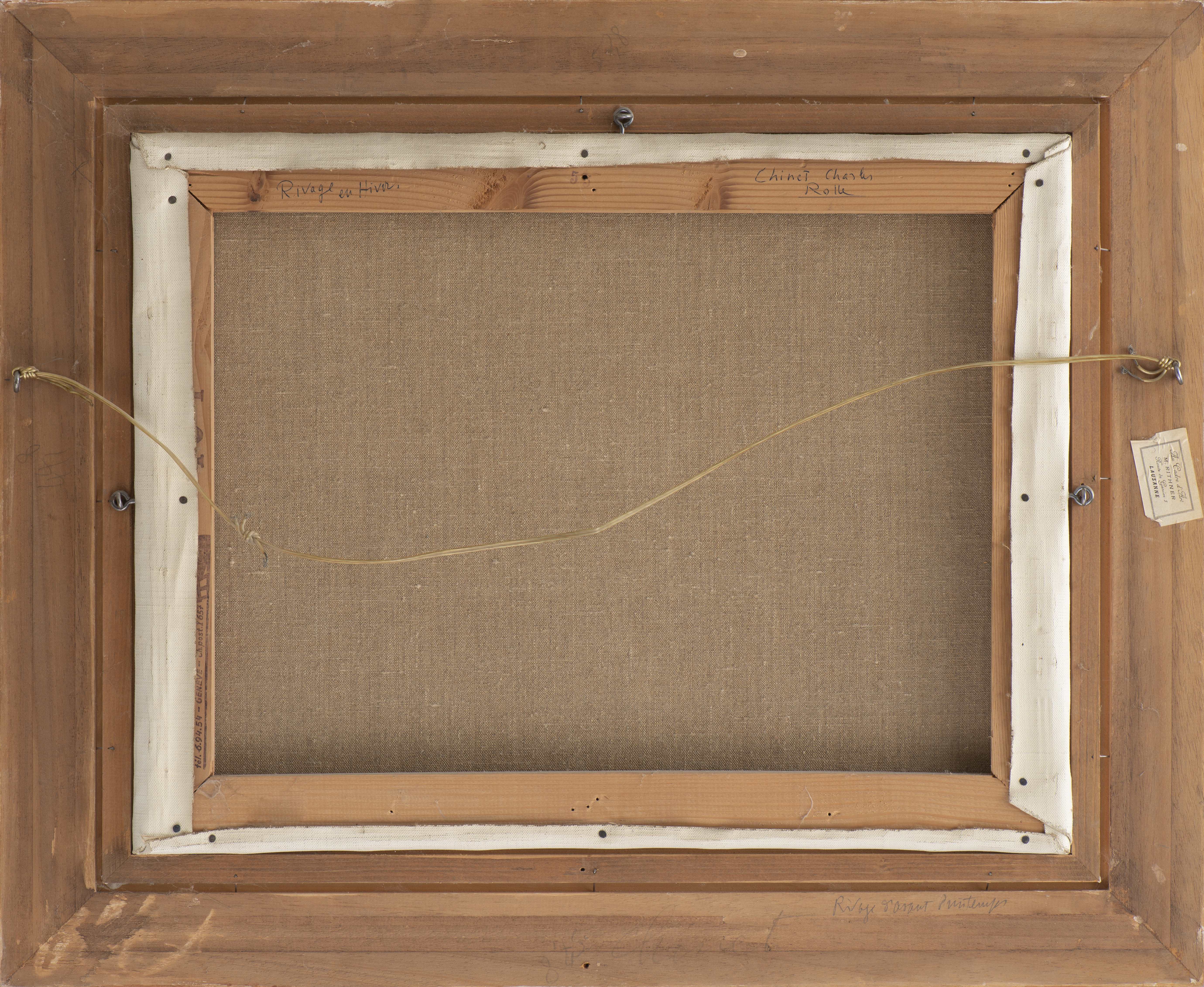Charles CHINET (1981-1978), "Rivage de Rolle en hiver", huile sur toile sbg en rouge.