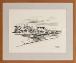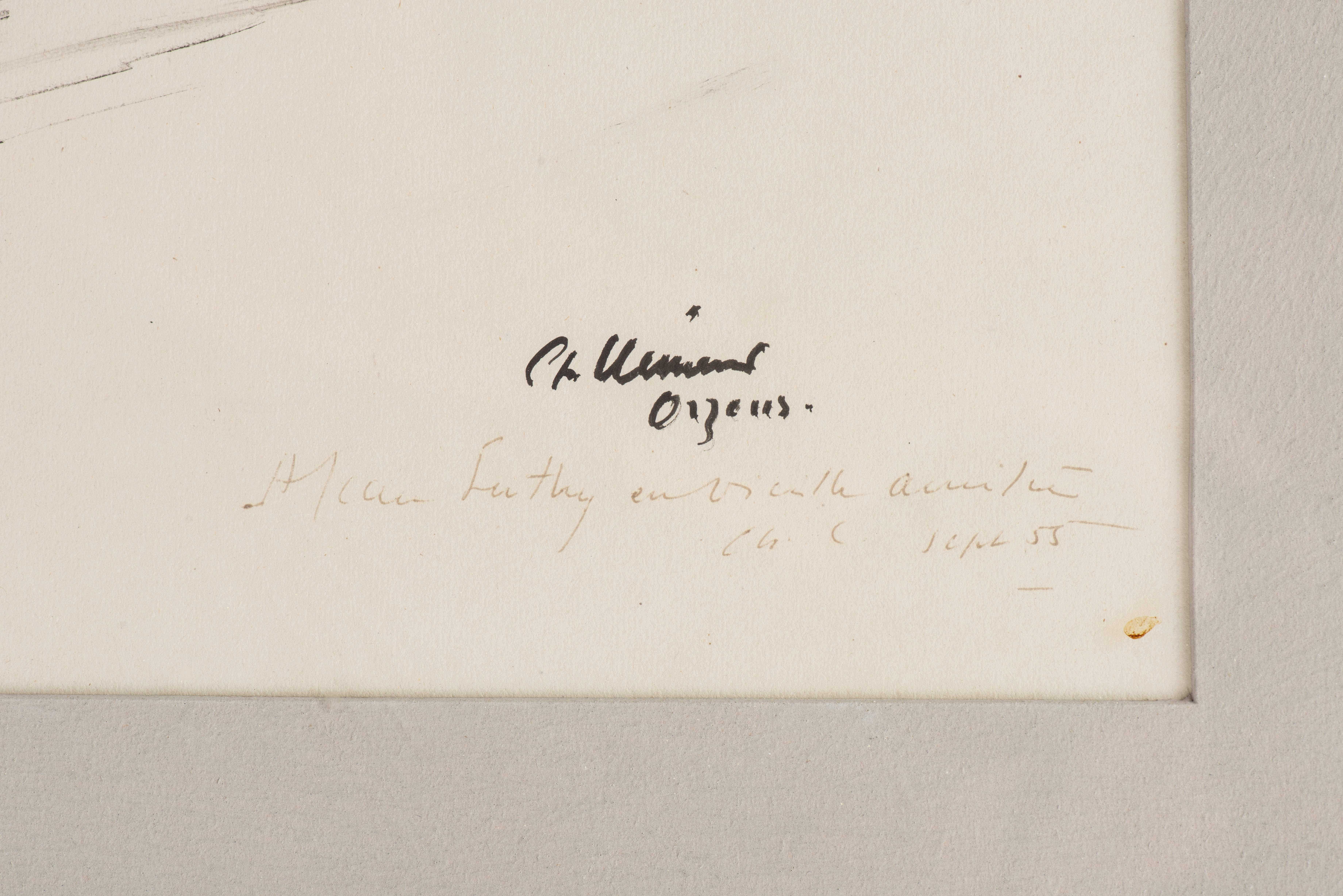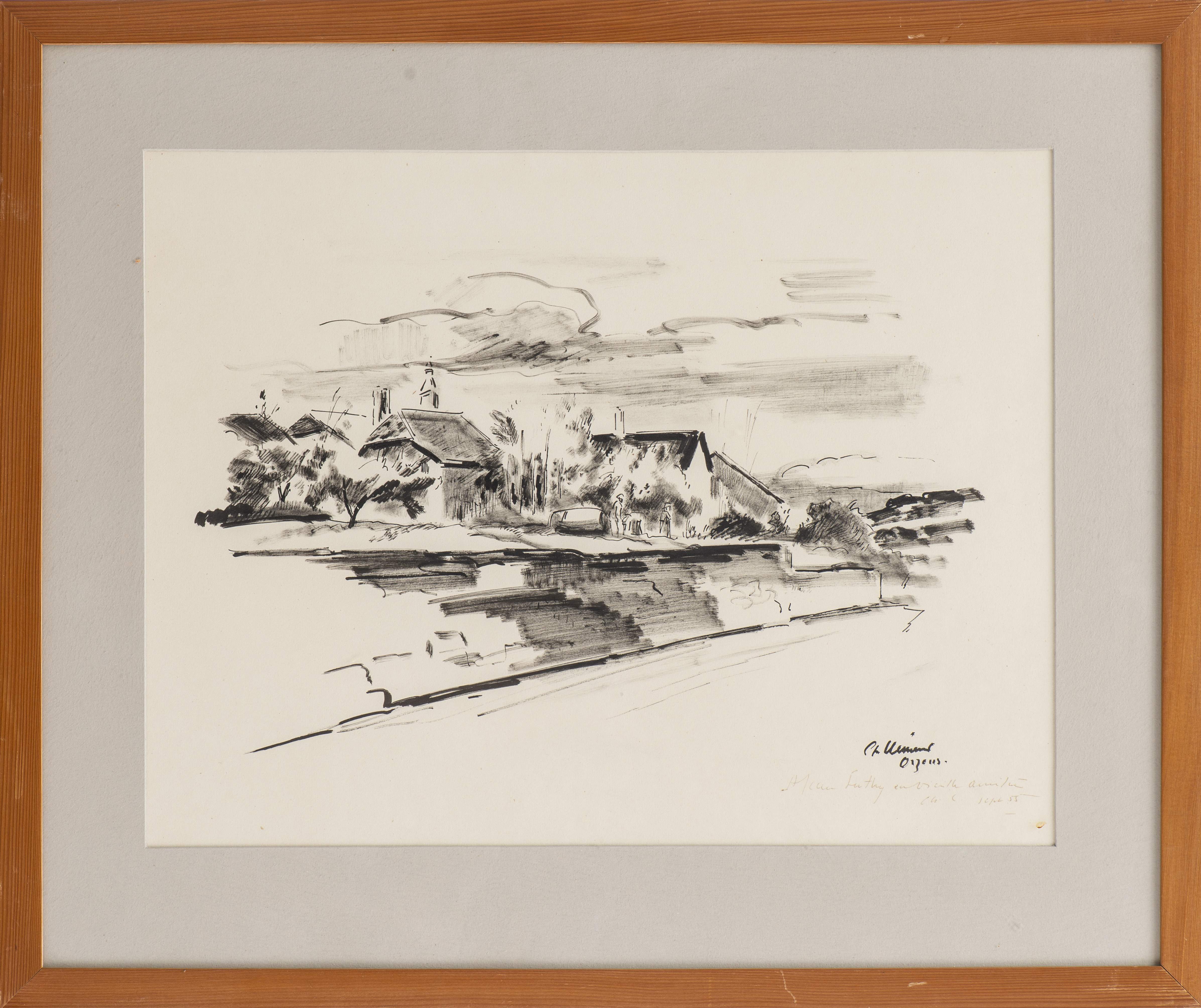 - "Orzens" feutre noir sur papier sbd et titré Orzens en bd dédicacé et daté sept 55 en bd. 27x43 cm