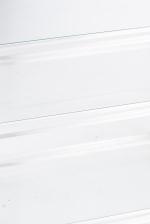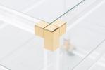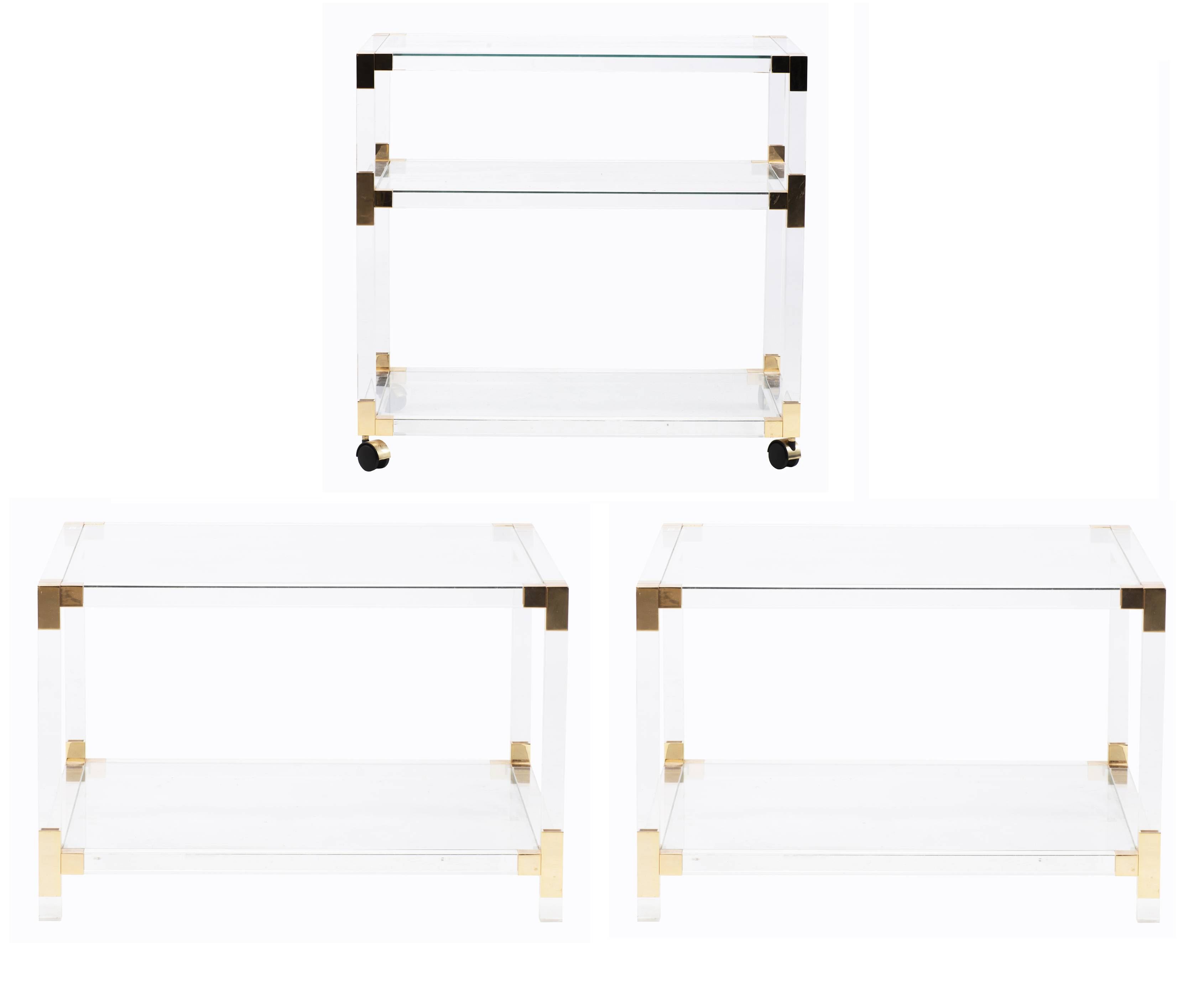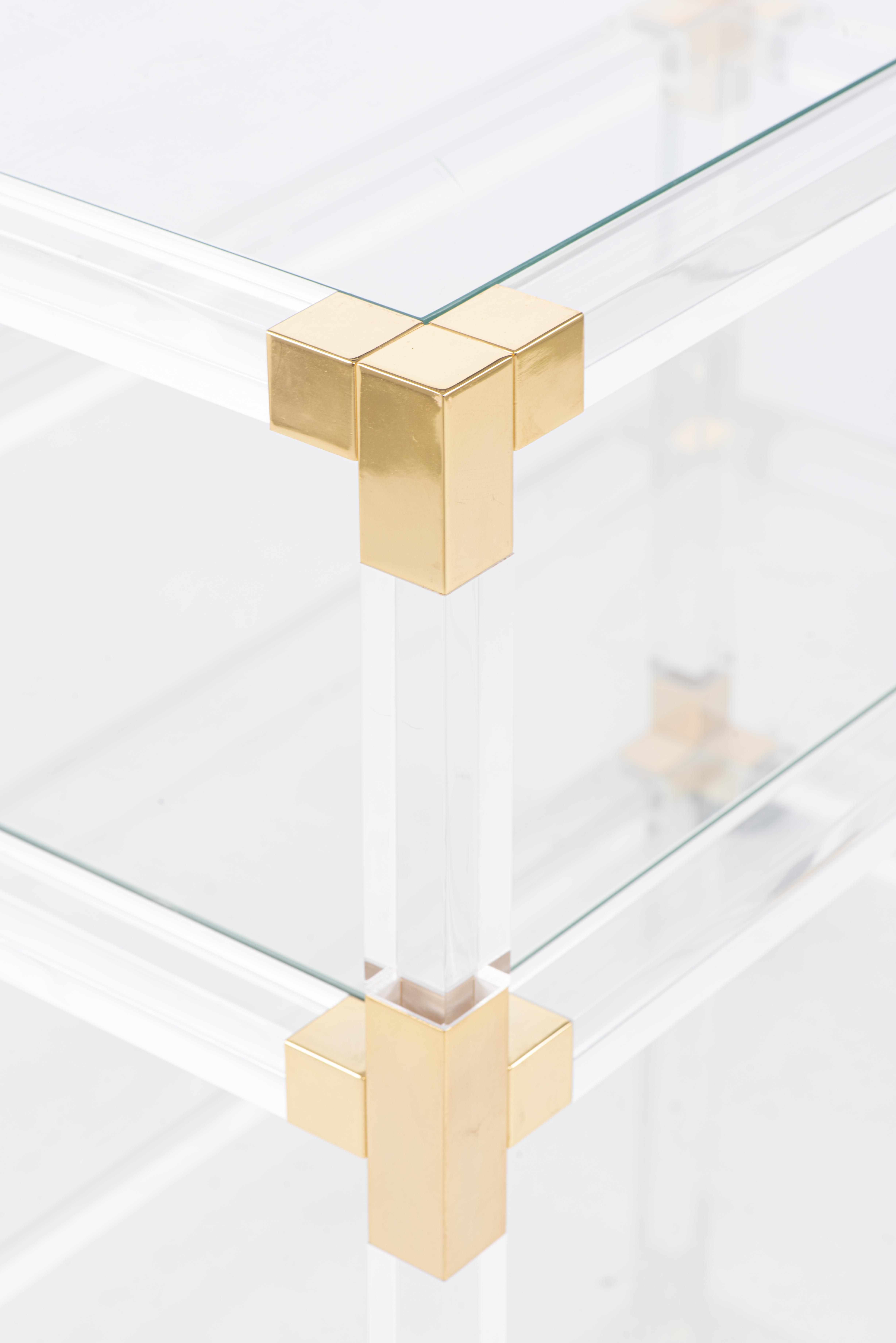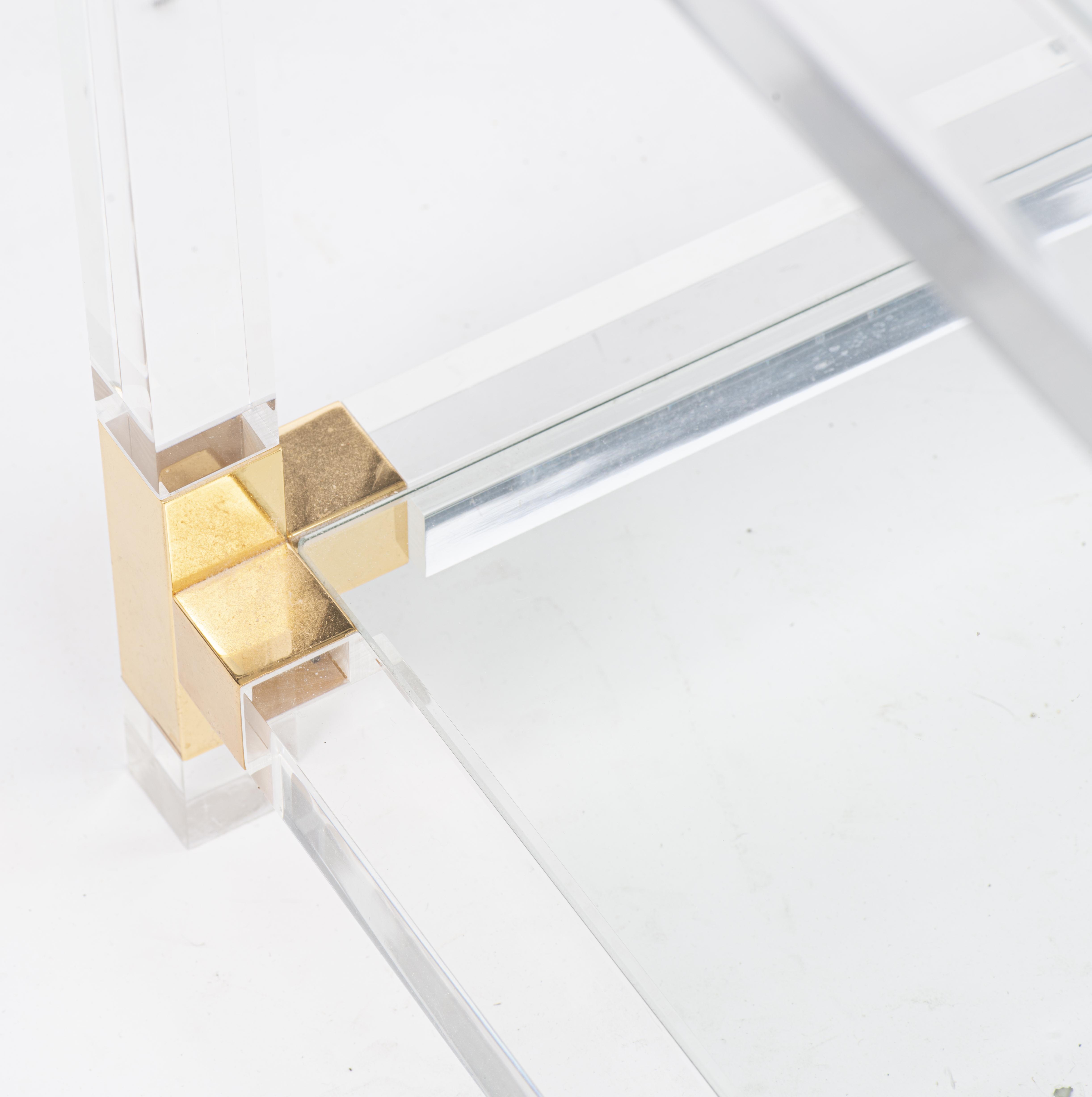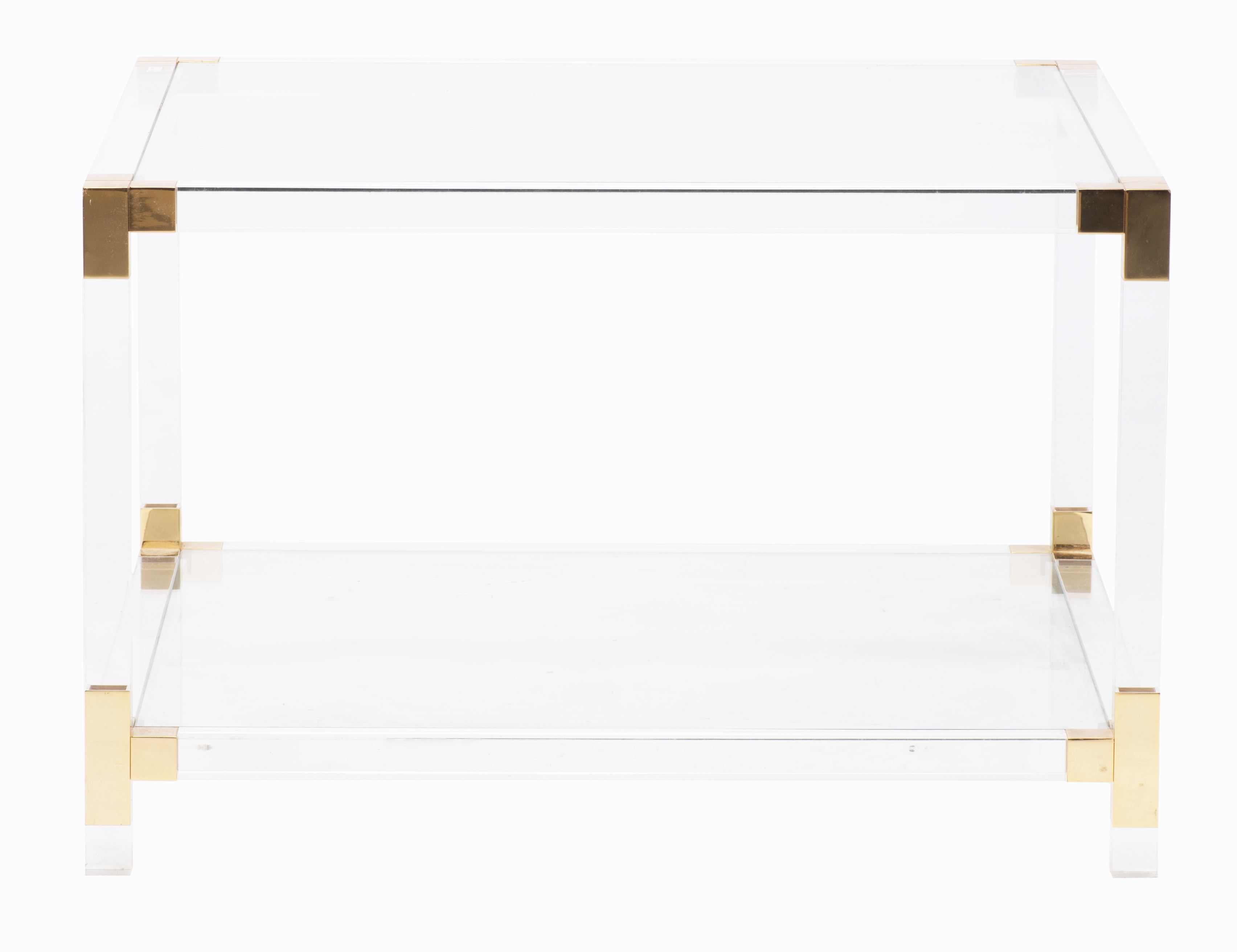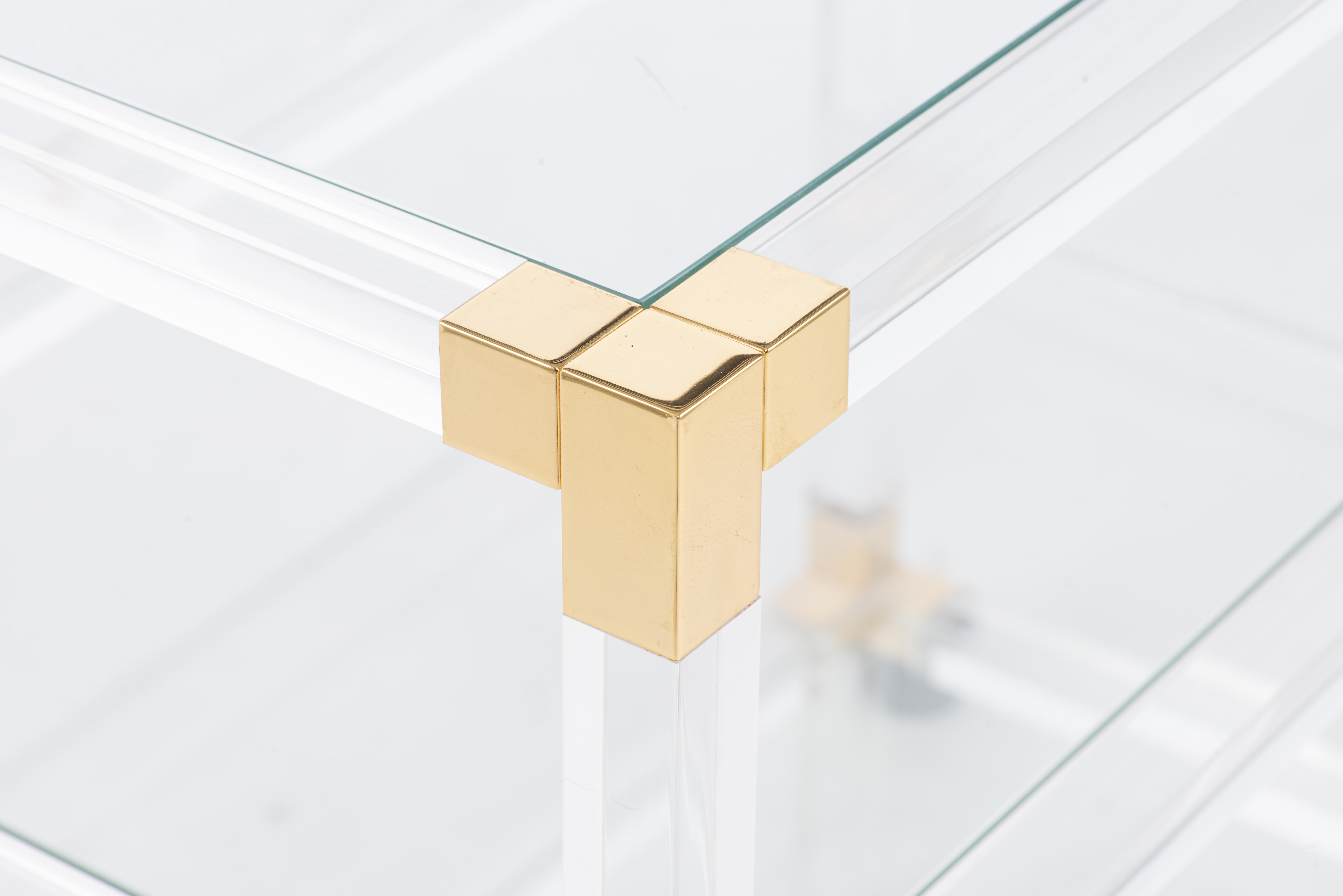 Charles Hollis Jones attr. Deux tables bout de canapé en laiton doré et altuglas, deux plateau de verre encastrés. Vers 1970