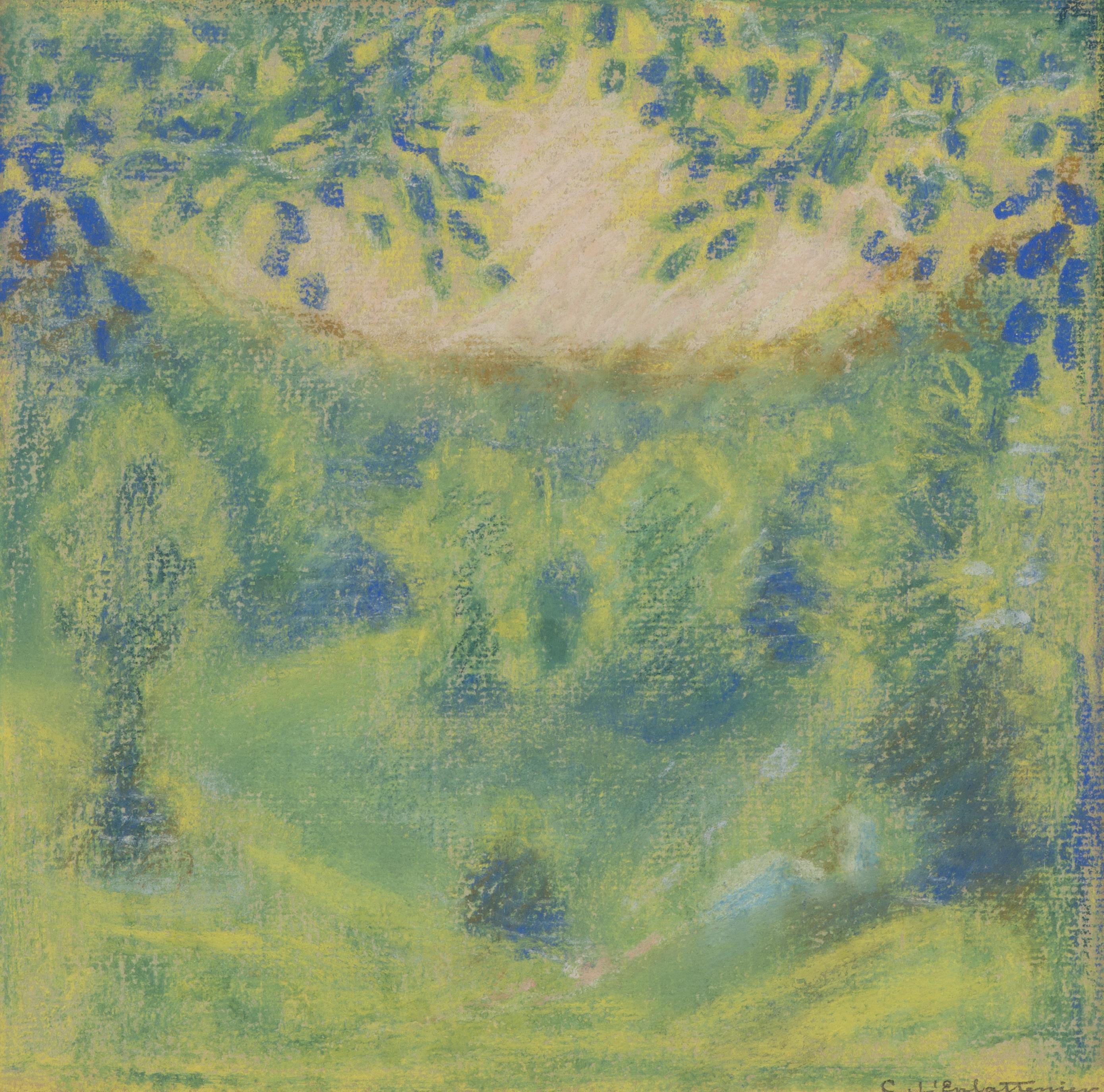 Charles L'EPLATTENIER (1874-1946), "Jardin au printemps", pastel sur papier, sbd au crayon.