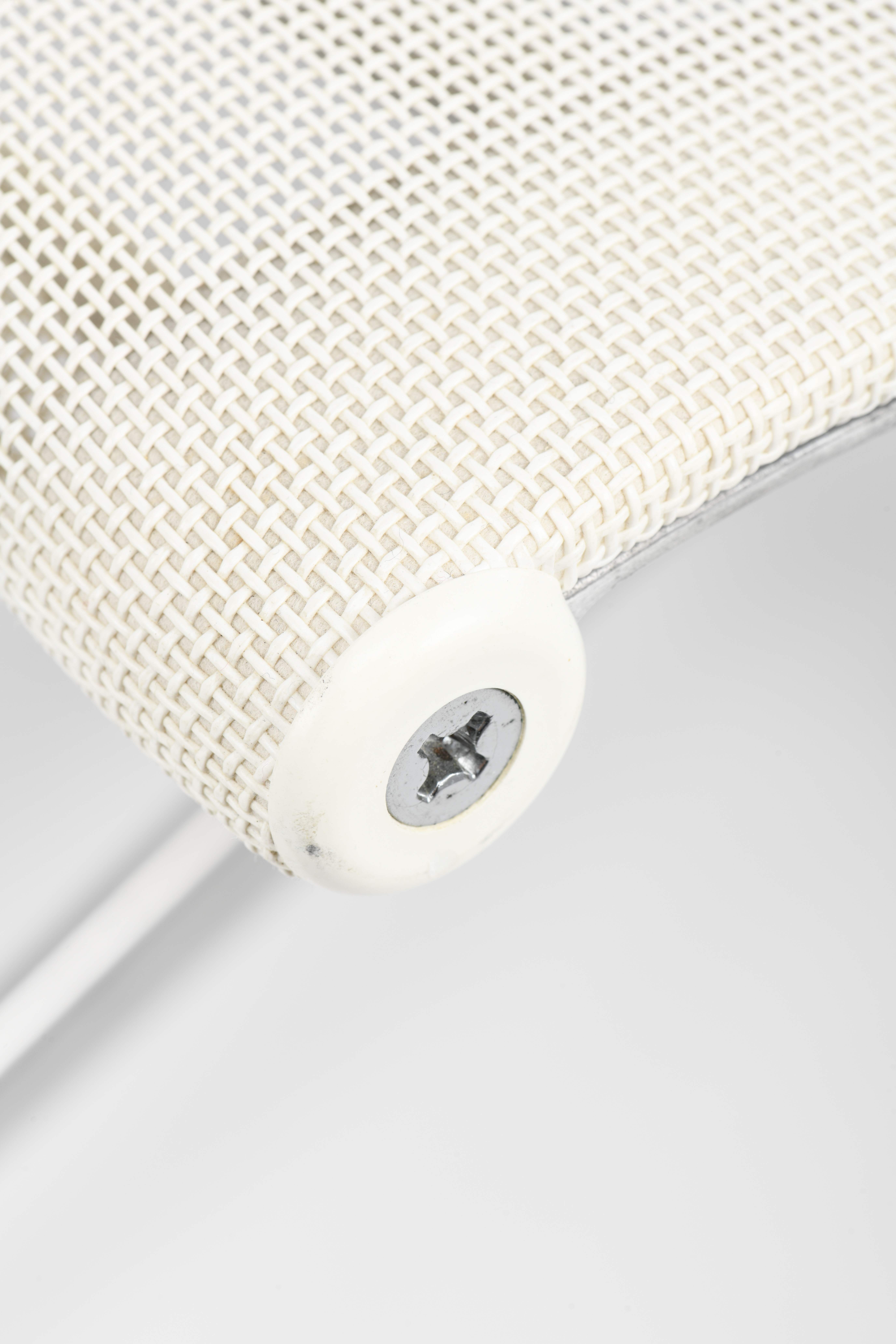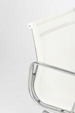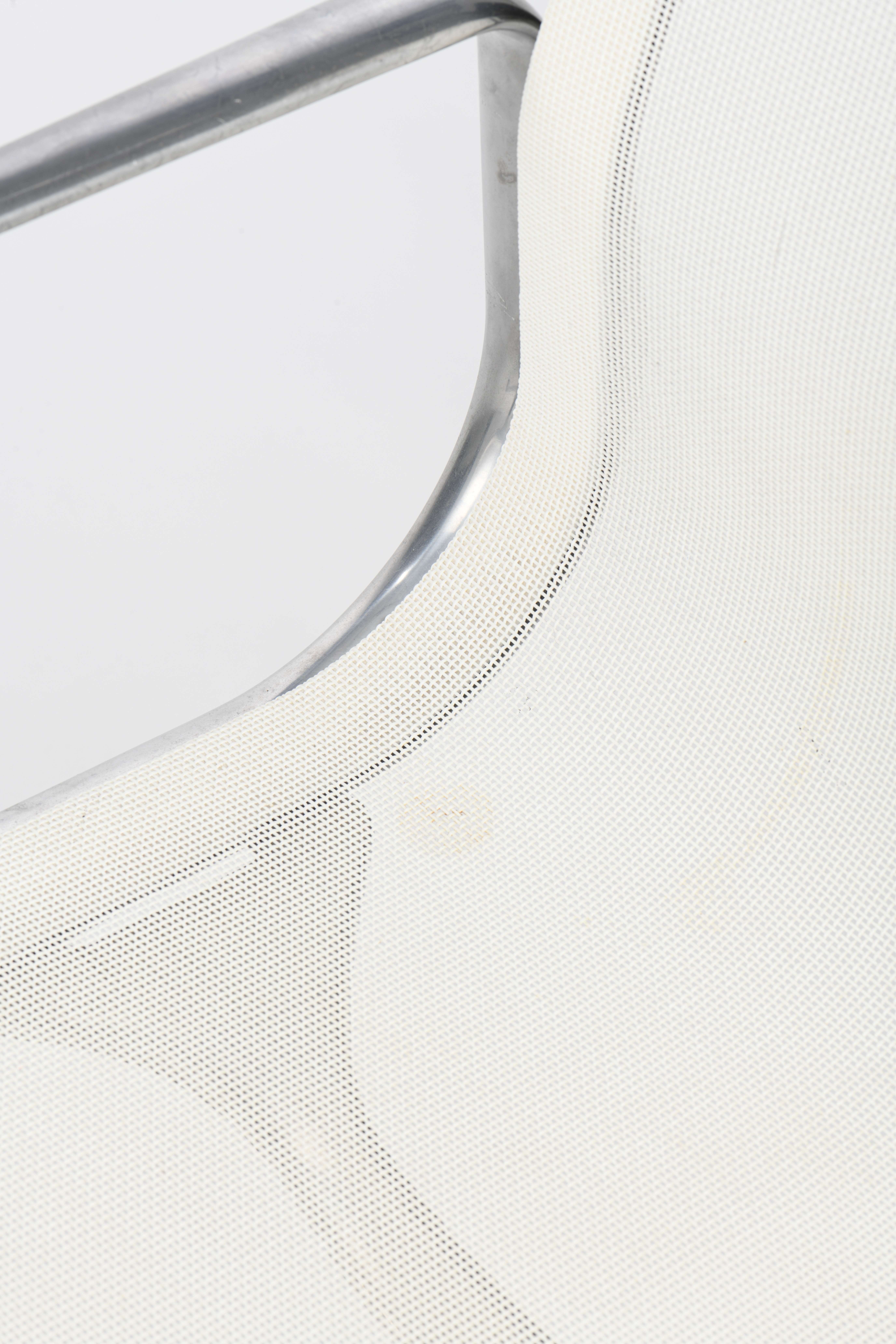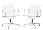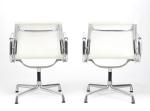 Charles & Ray EAMES (XXe), deux chaise de bureau EA 108, Aluminium Group, édition Vitra, fonte d'aluminium chromée, assise en treillis blanc, quatre patins. 82 x 58 x 59 cm