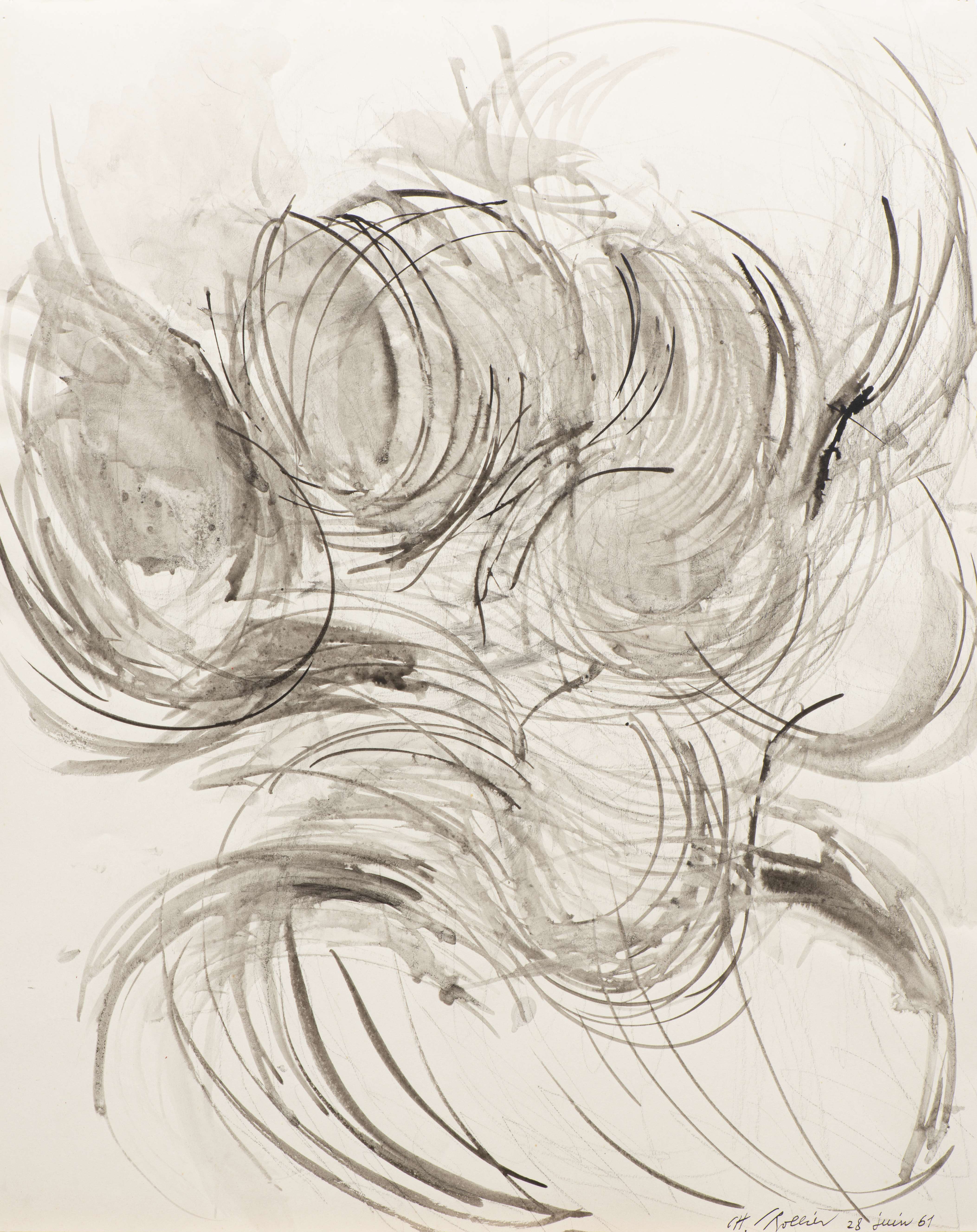 Charles ROLLIER (1912-1968), 'Composition abstraite', 1961, lavis d’encre signé et daté en bas à droite.