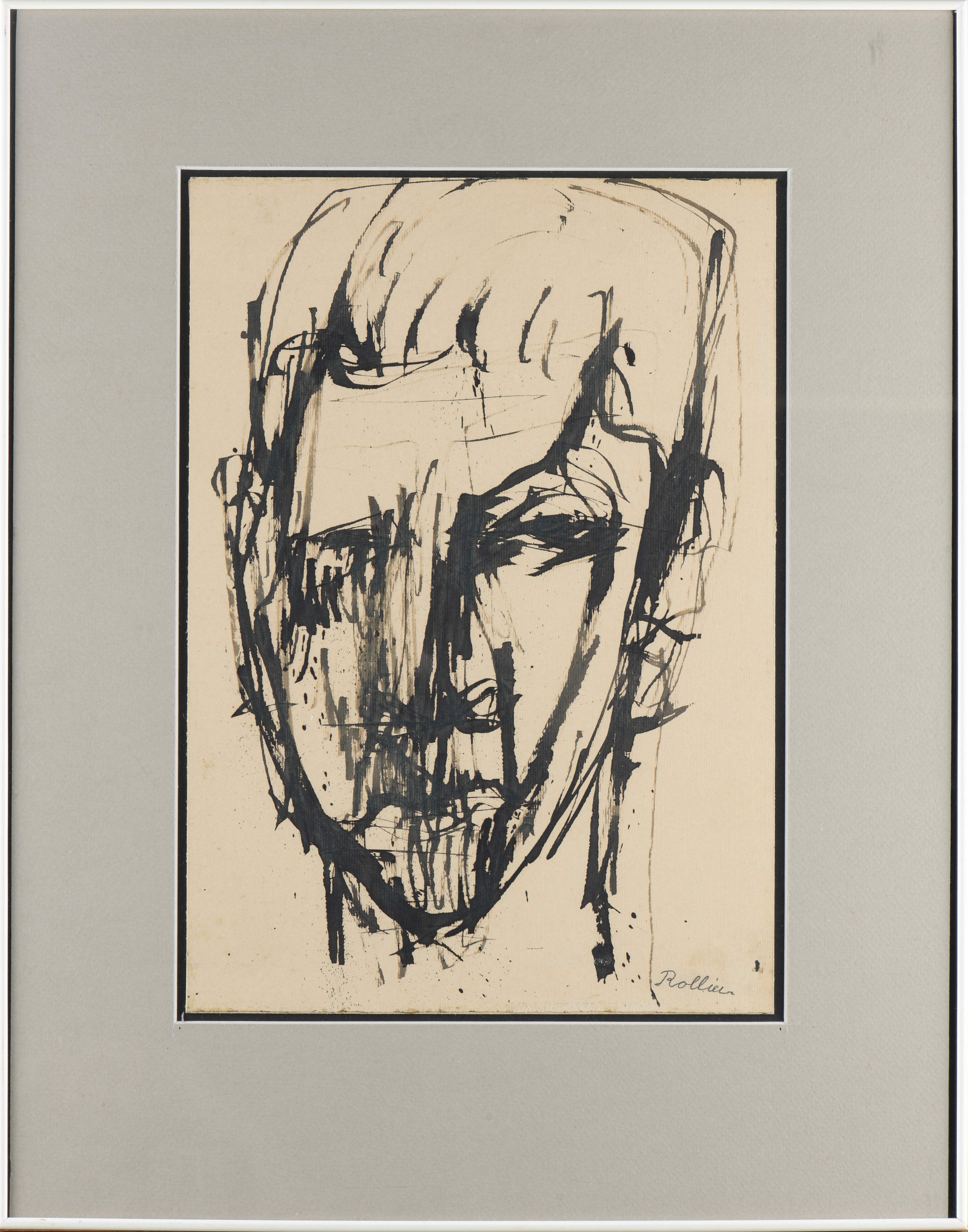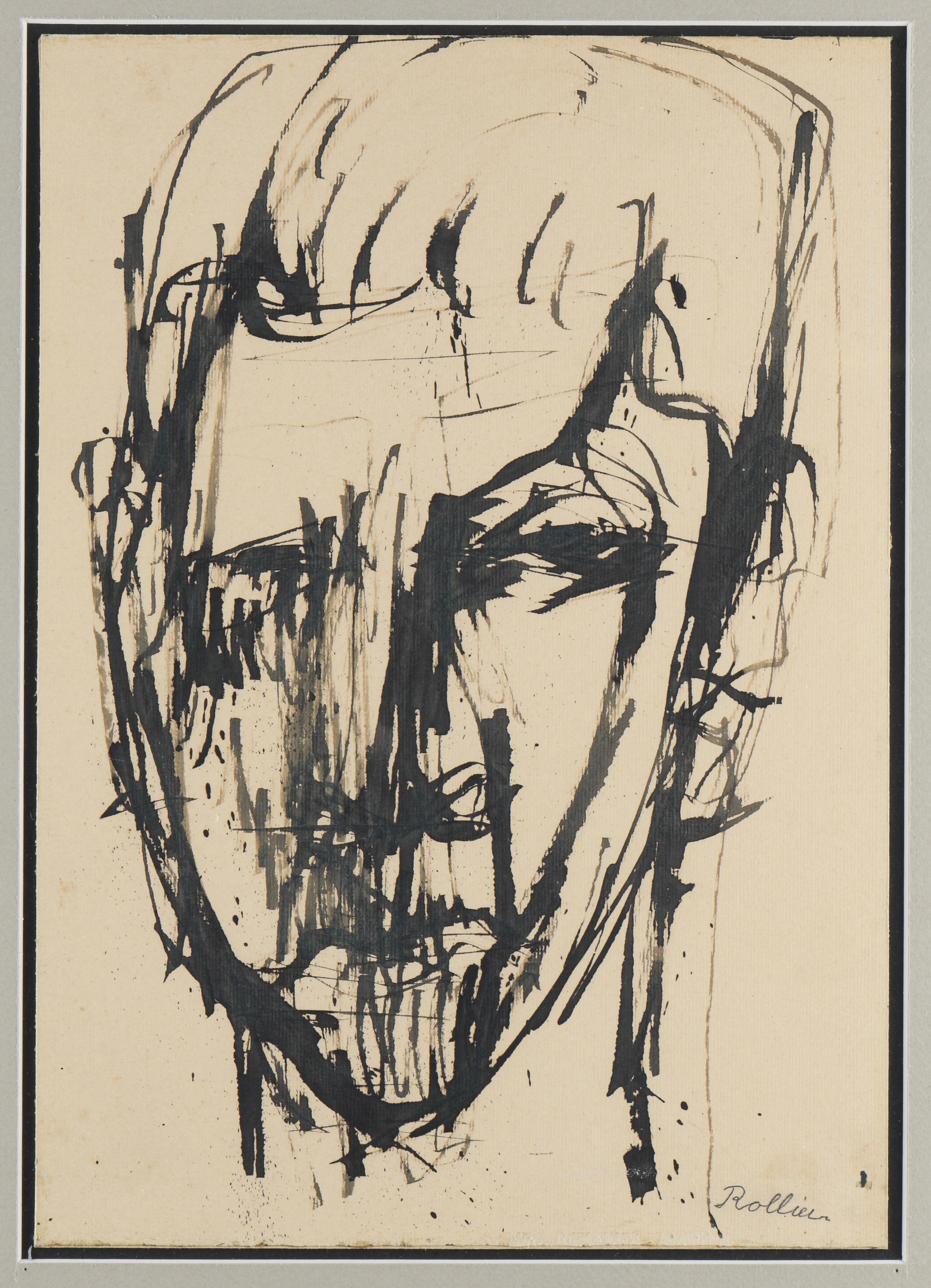 Charles ROLLIER (1912-1968), "Portrait d'homme", encre sur papier, signé en bas à droite.