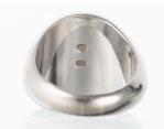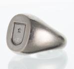 Chevalière en or blanc avec une armoirie en bas-relief sur la table
