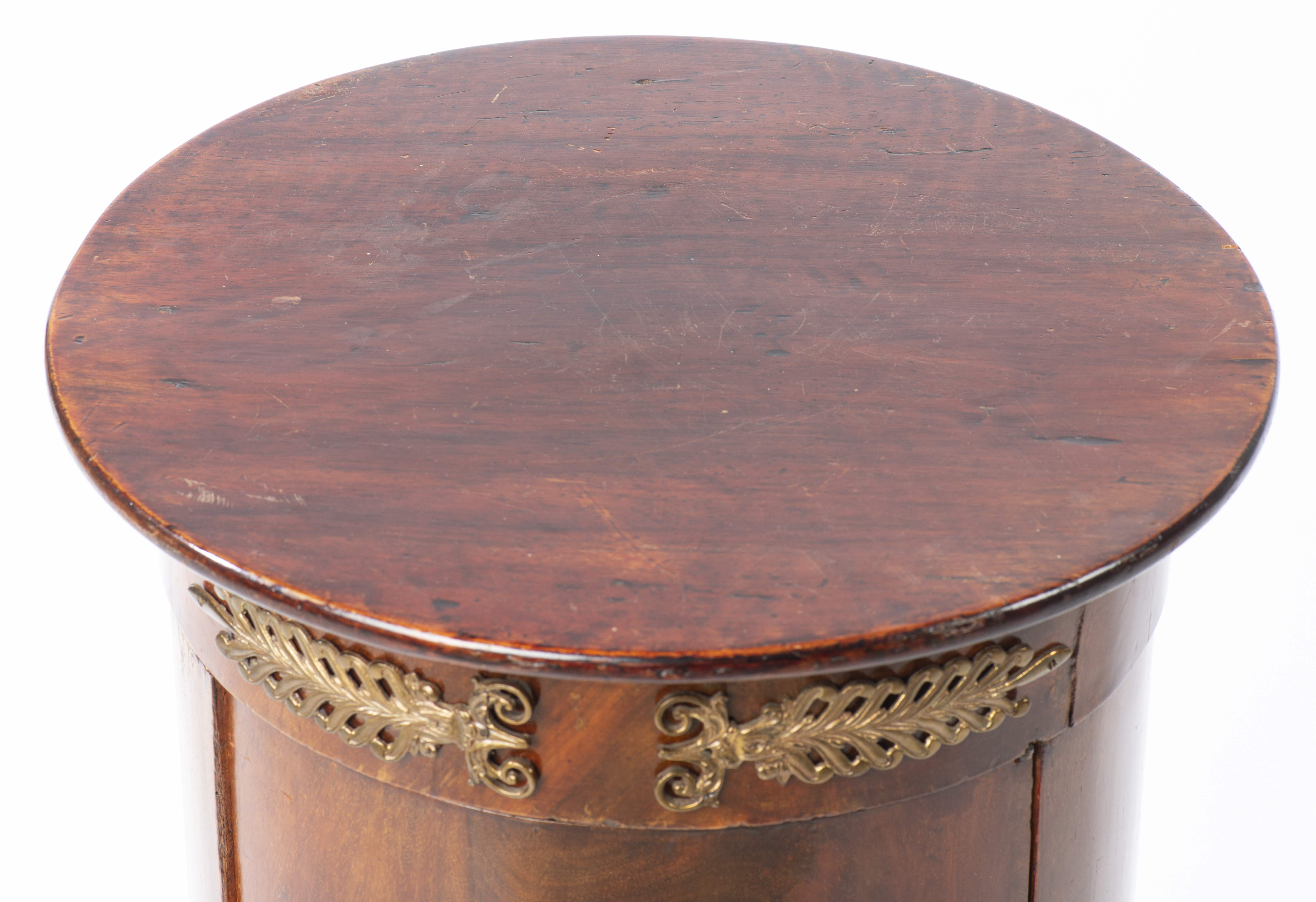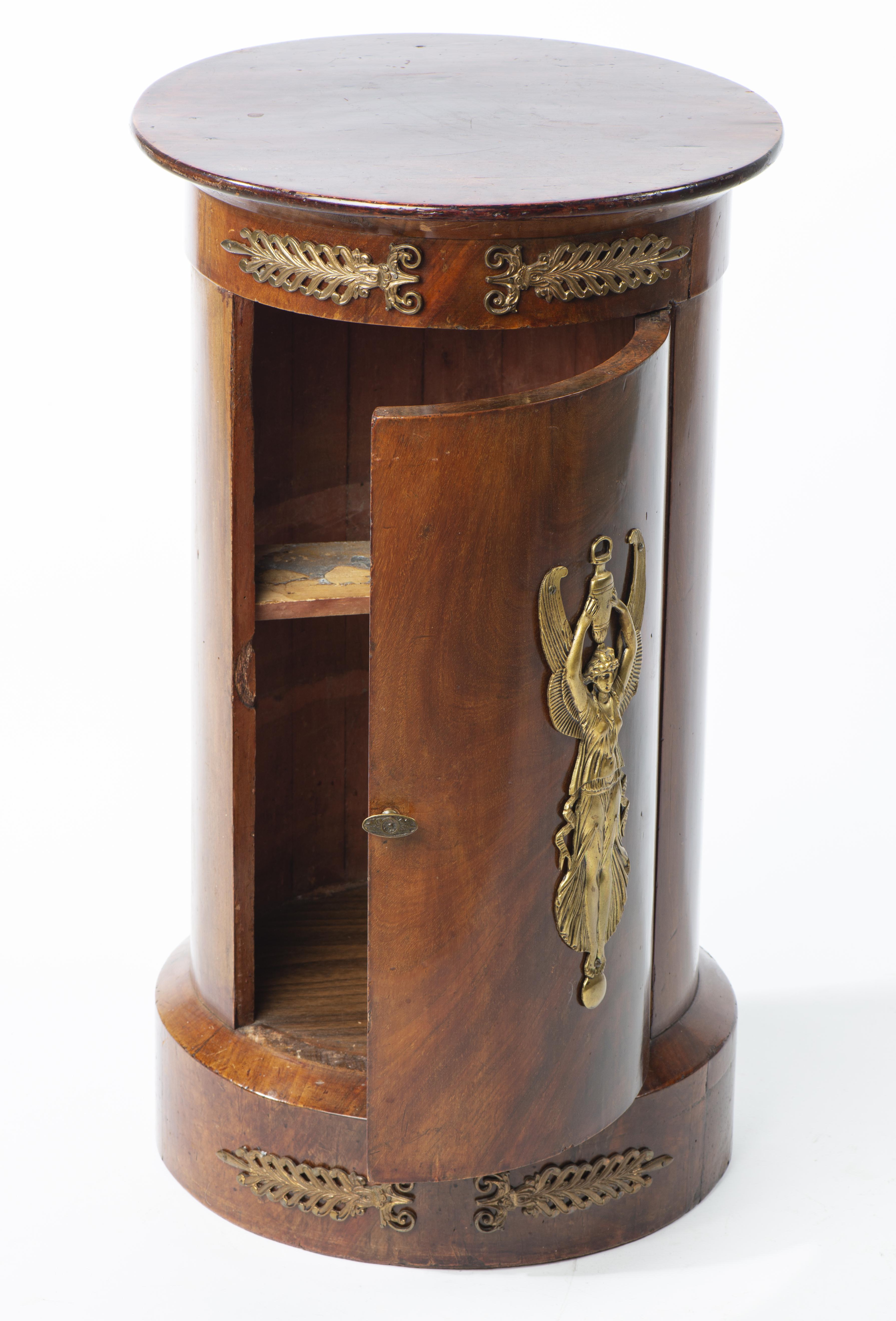 Chevet colonne ou somno d'époque Empire italien en placage d'acajou et garnitures de bronze doré, Début XIXe.