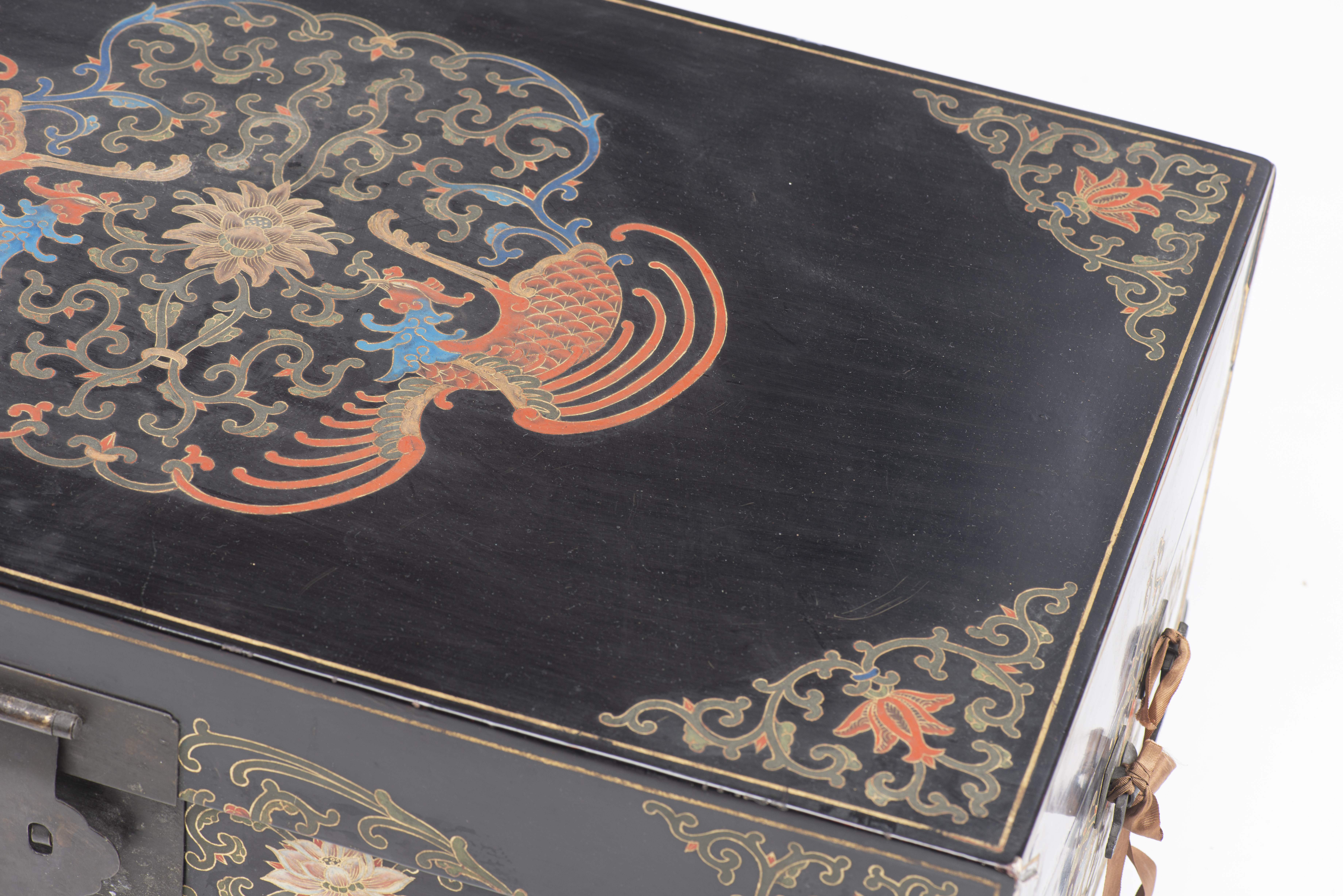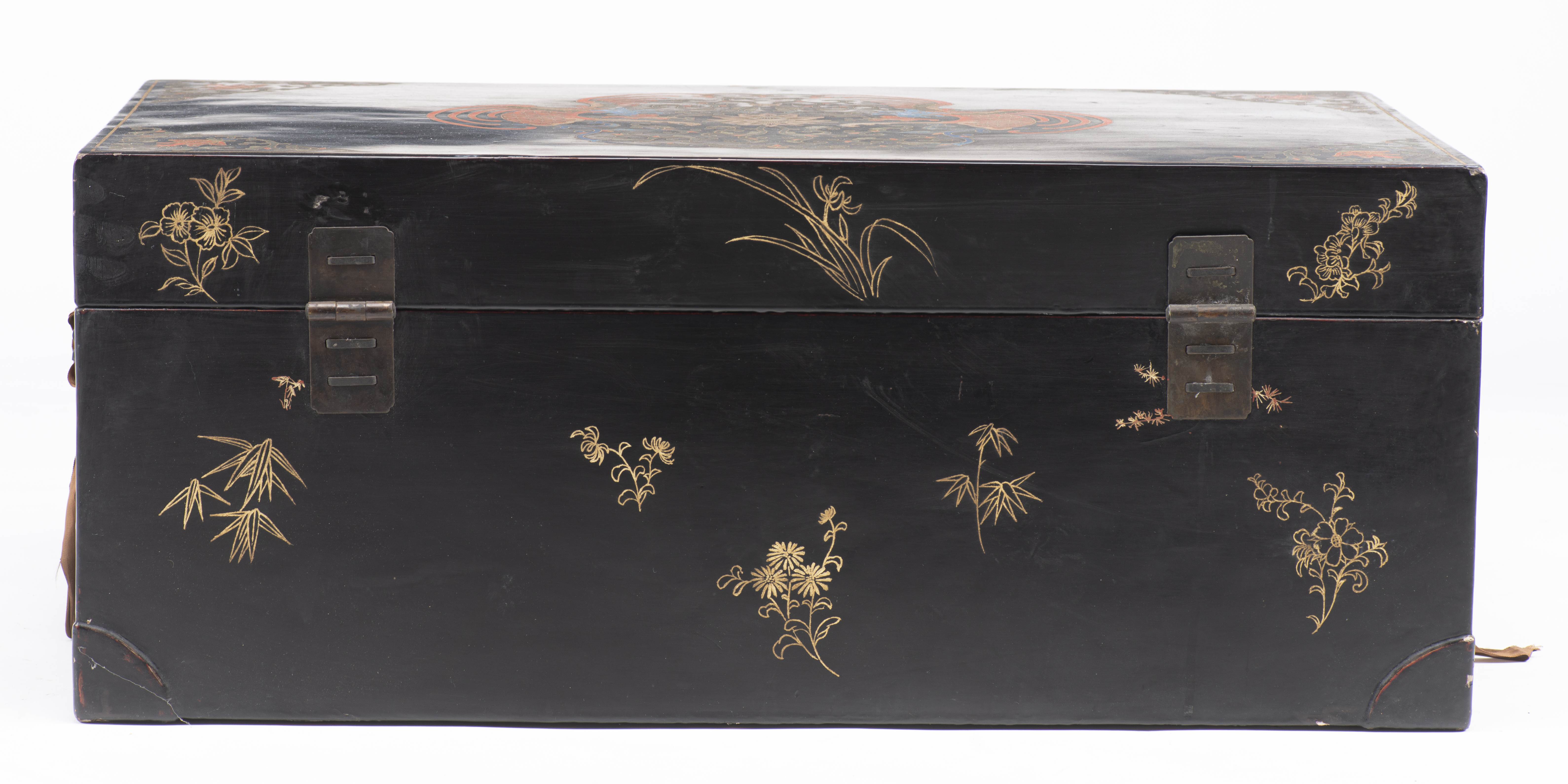 Coffre en carton bouilli laqué de Chine, rectangulaire.