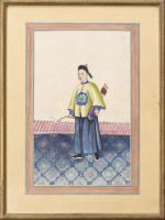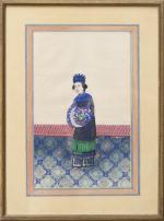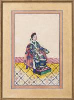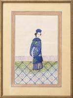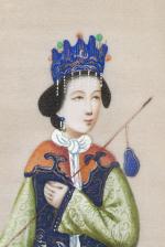 CHINE, Ensemble de neuf gouaches représentant des femmes en costume traditionnel