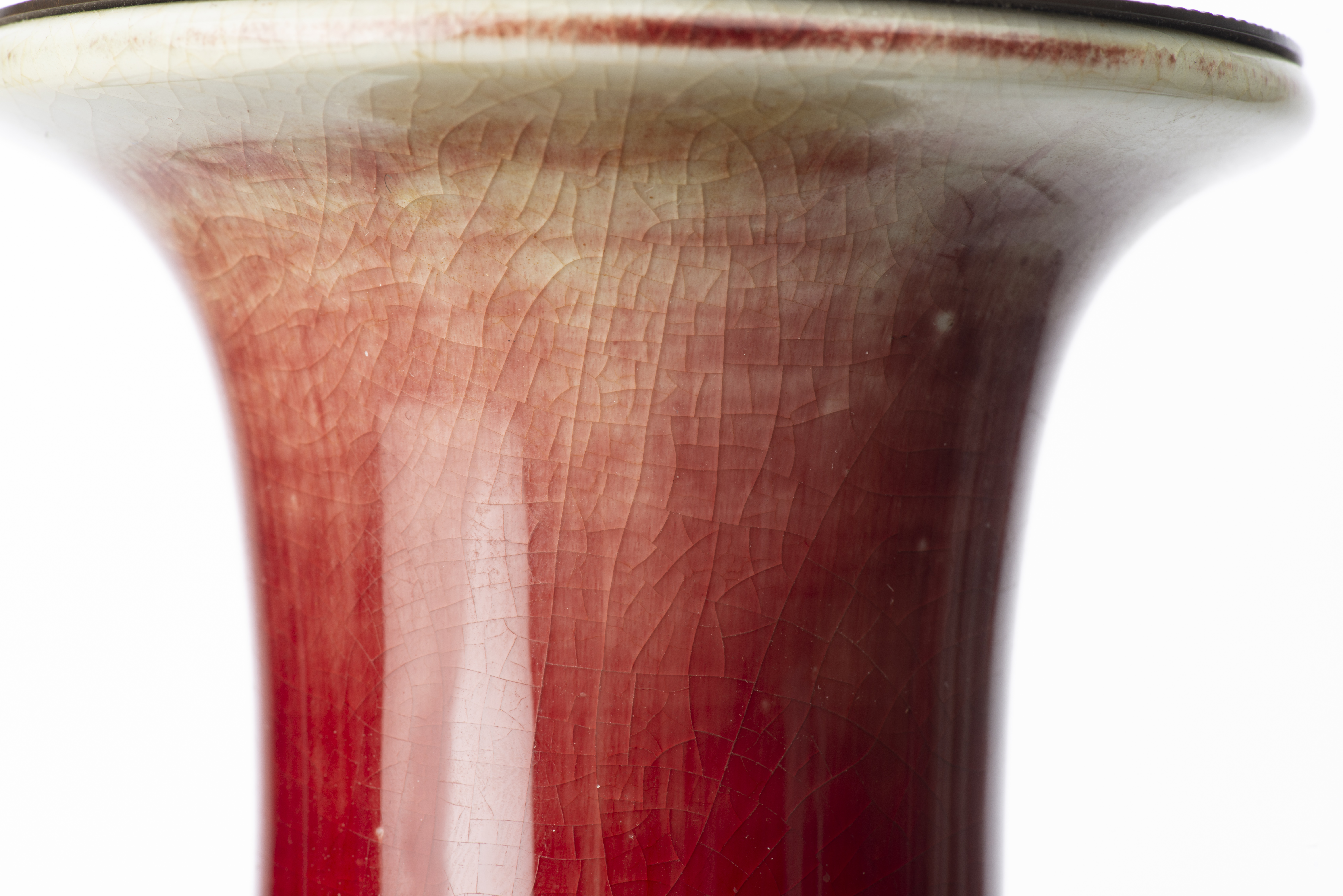 CHINE - Vase boule à long col évasé à la lèvre Qianqiuping , couverte sang de boeuf