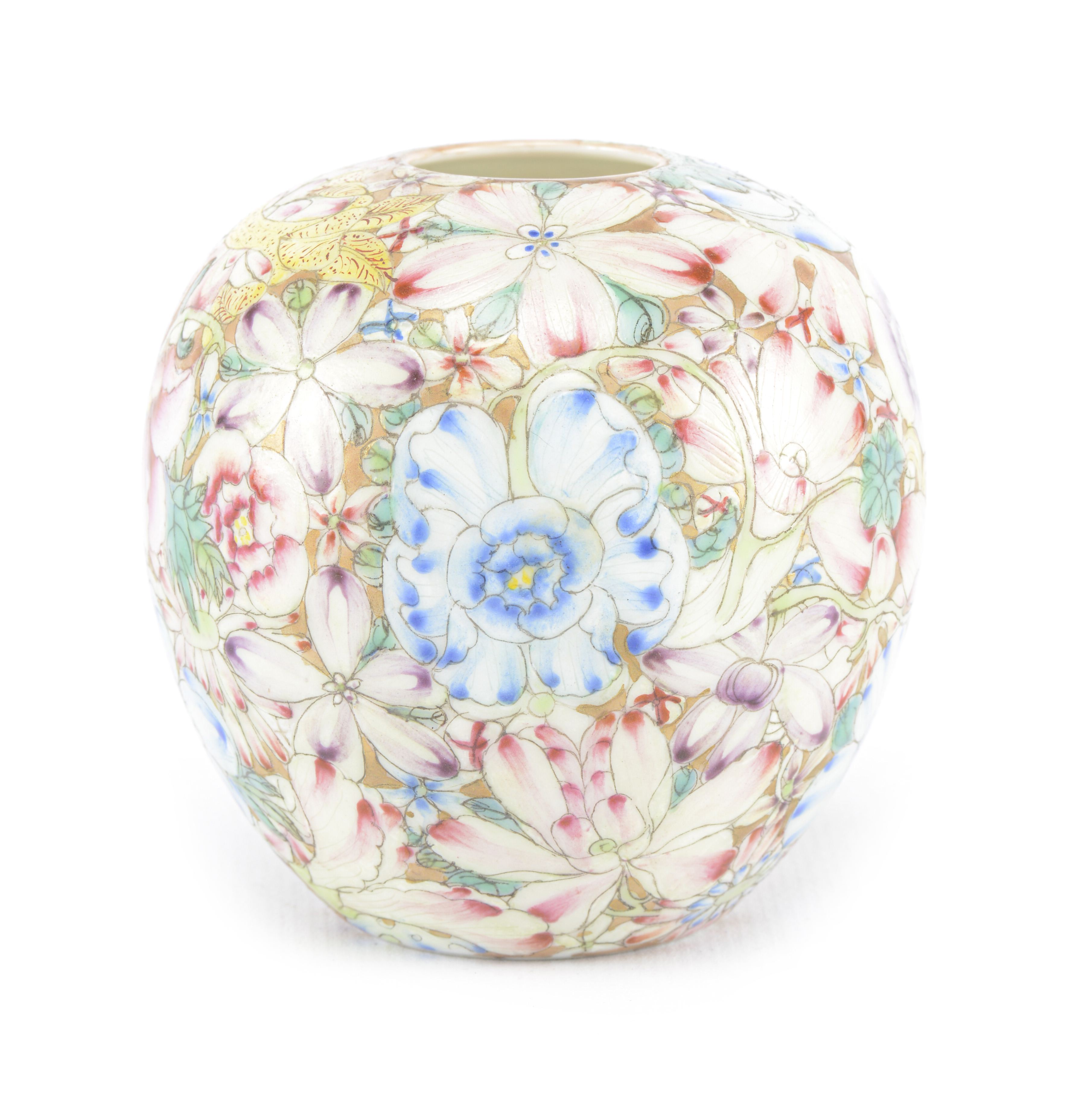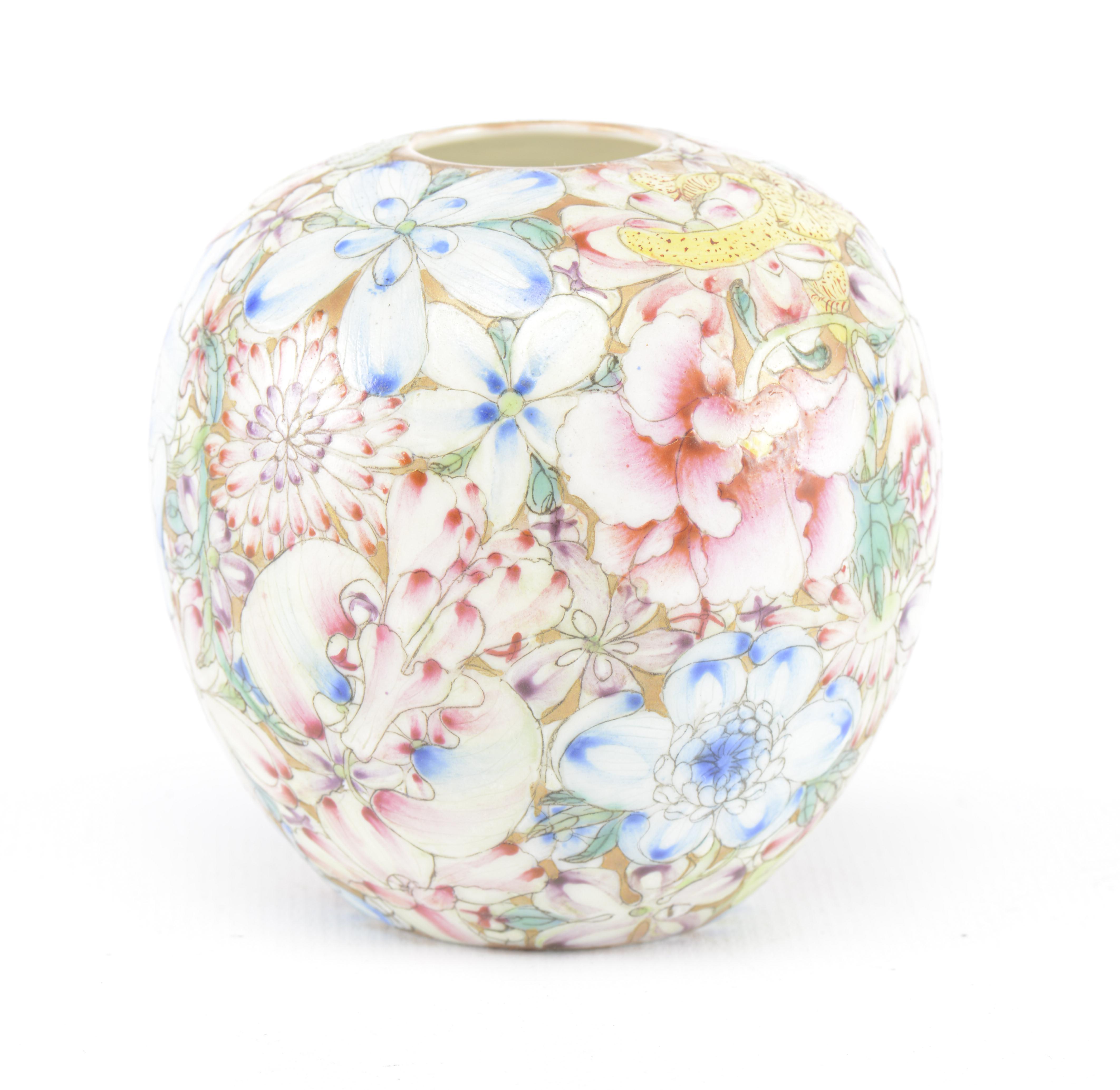 Chine, vase boule mille-fleurs en porcelaine de Chine