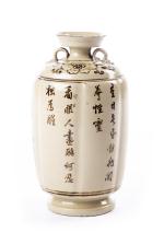 CHINE, Vase en porcelaine de Cizhou multilobé à décor de chrysanthèmes et caractères au revers.