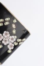 CHINE XXe, Ensemble de deux pipes à opium en métal, l'une en laque noir à décor de fleurs et l'autre en céramique.