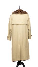 Chombert Paris, manteau en toile beige à col et doublure en fourrure de zibeline brune.