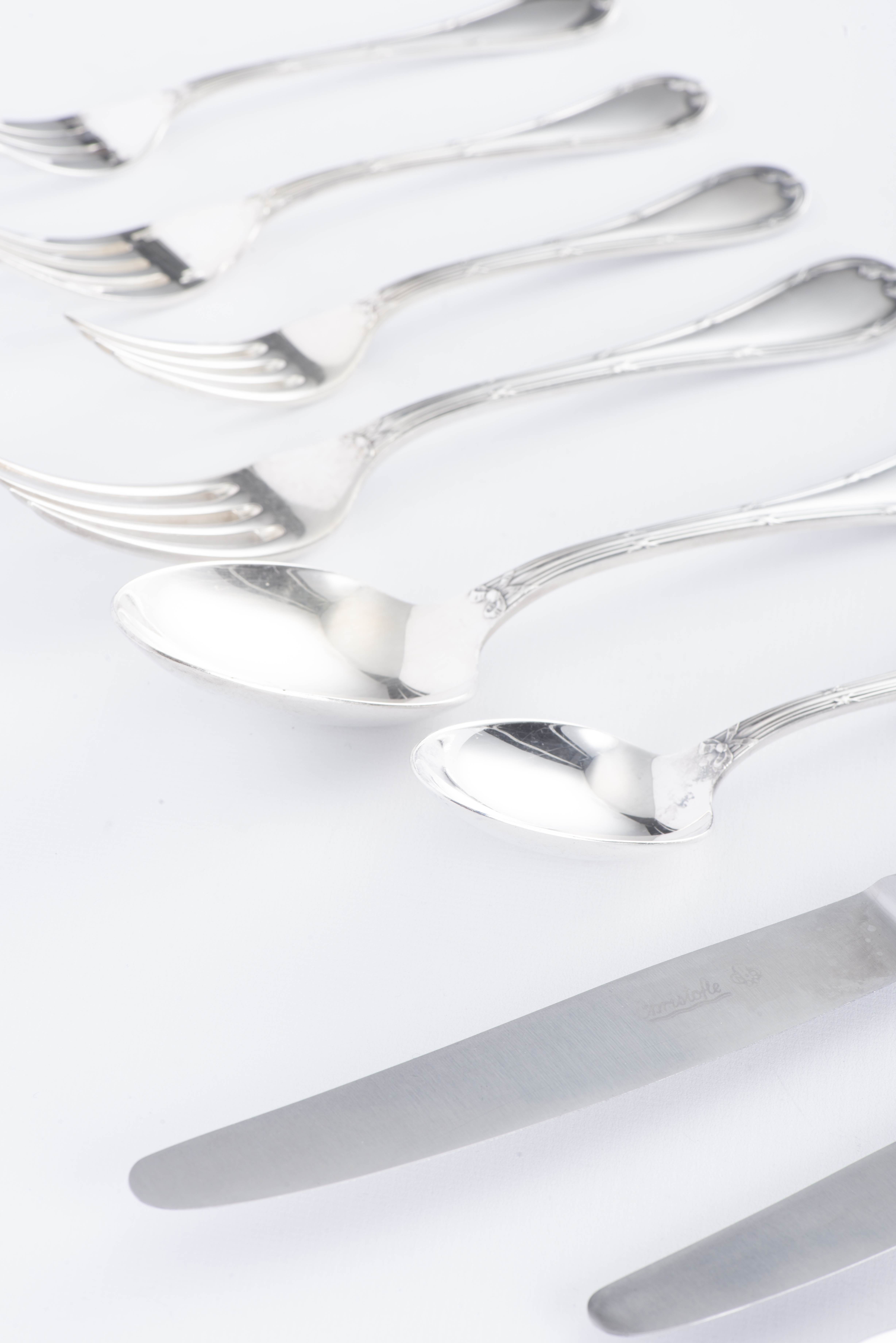 Christofle, ménagère, modèle rubans croisés comprenant :
