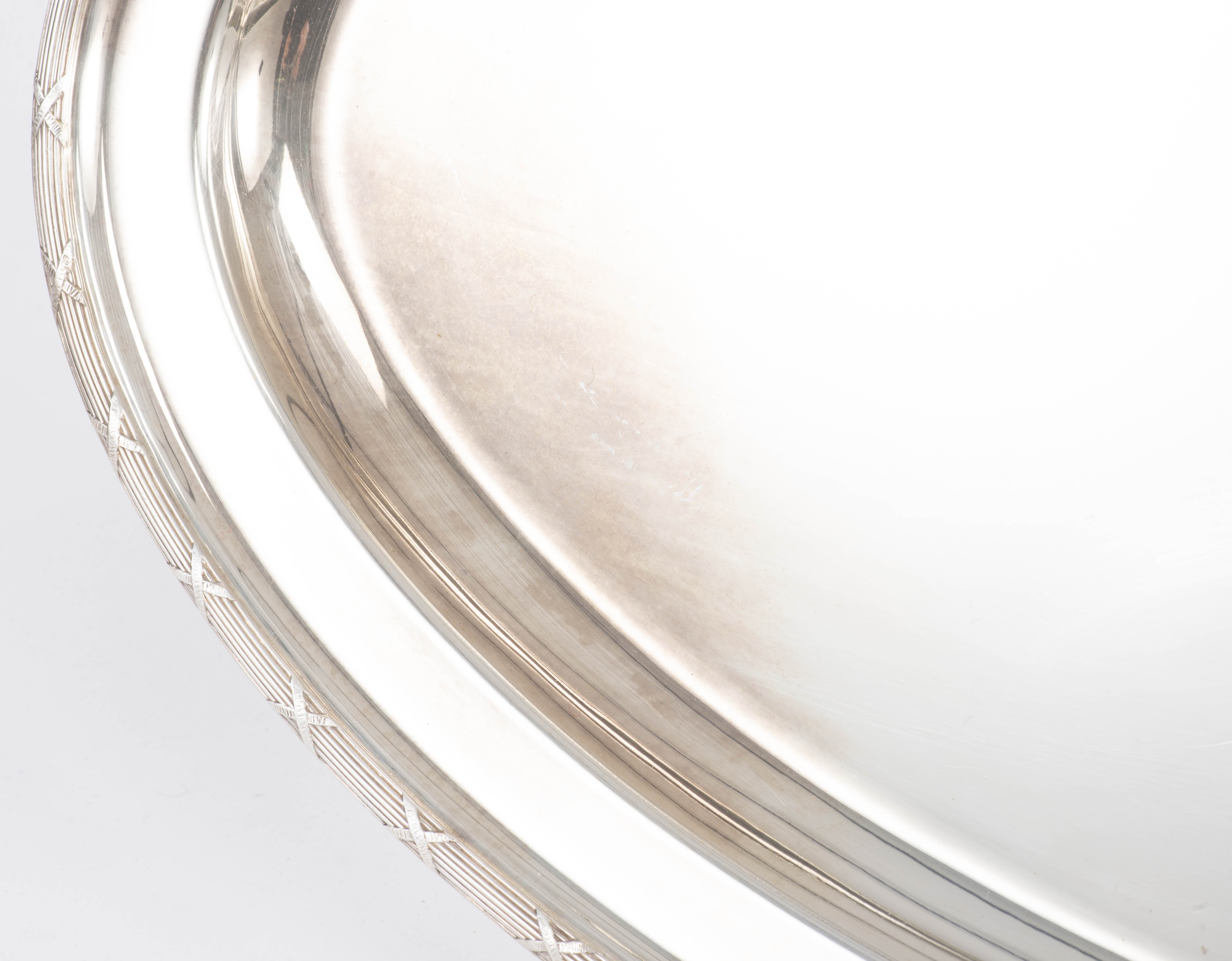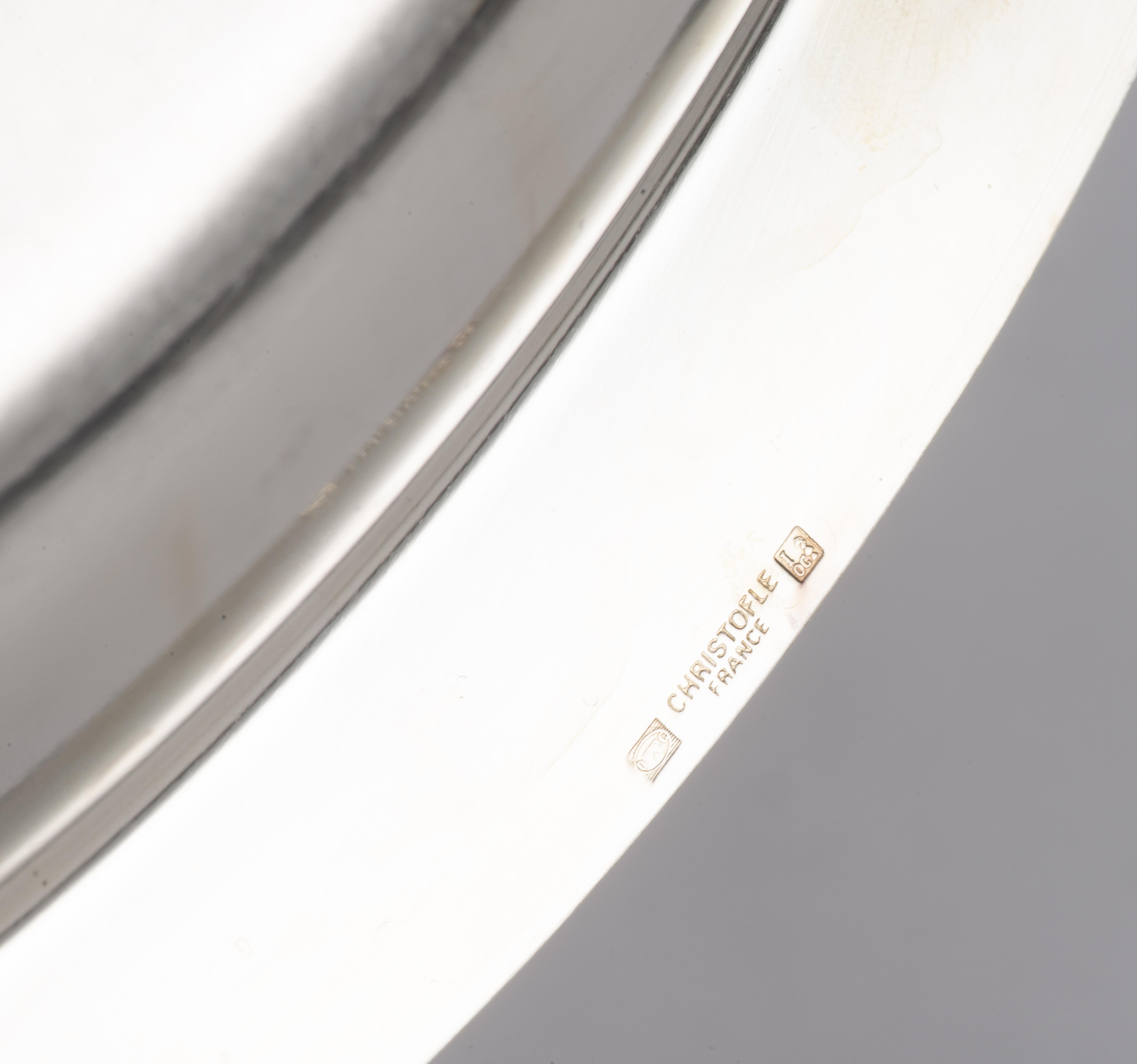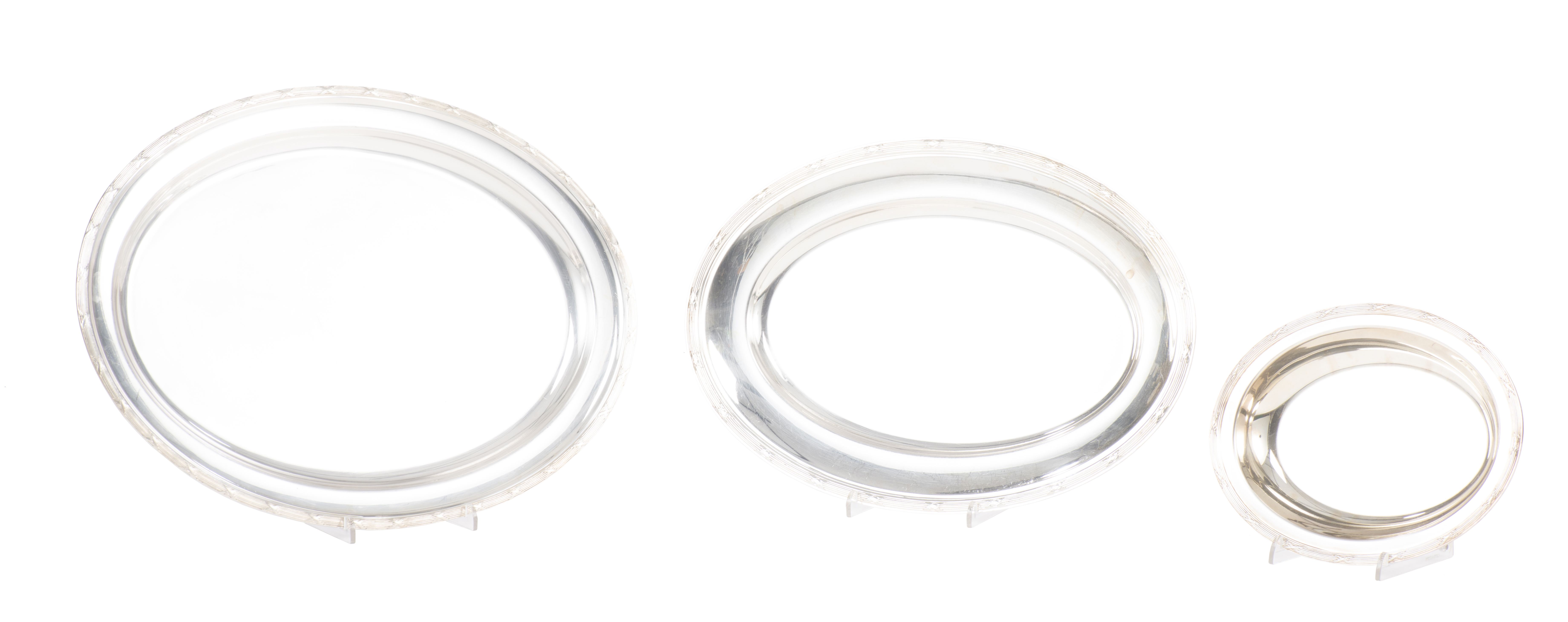 Christofle, suite de 4 plateaux ovales, modèle aux rubans croisés.