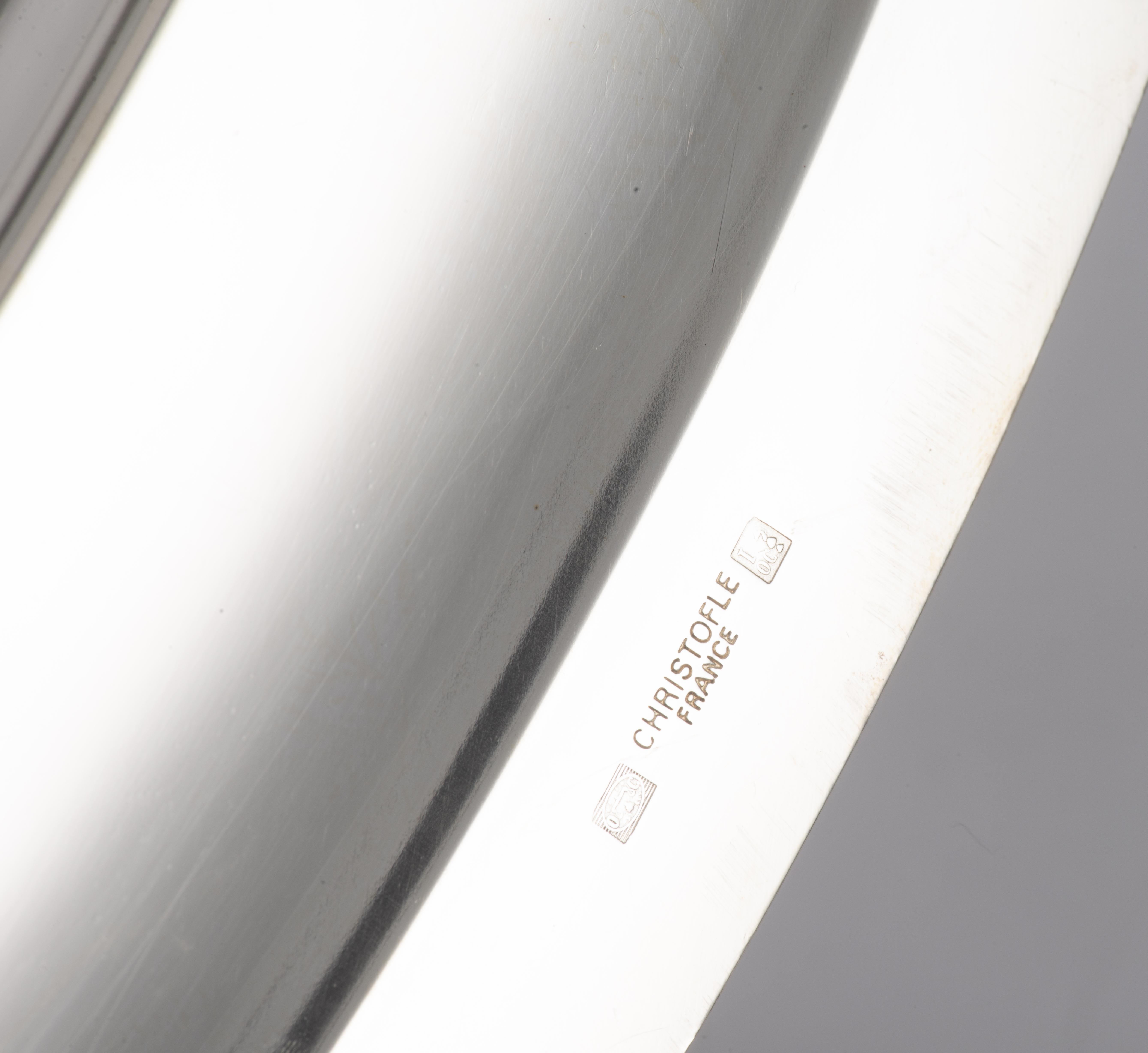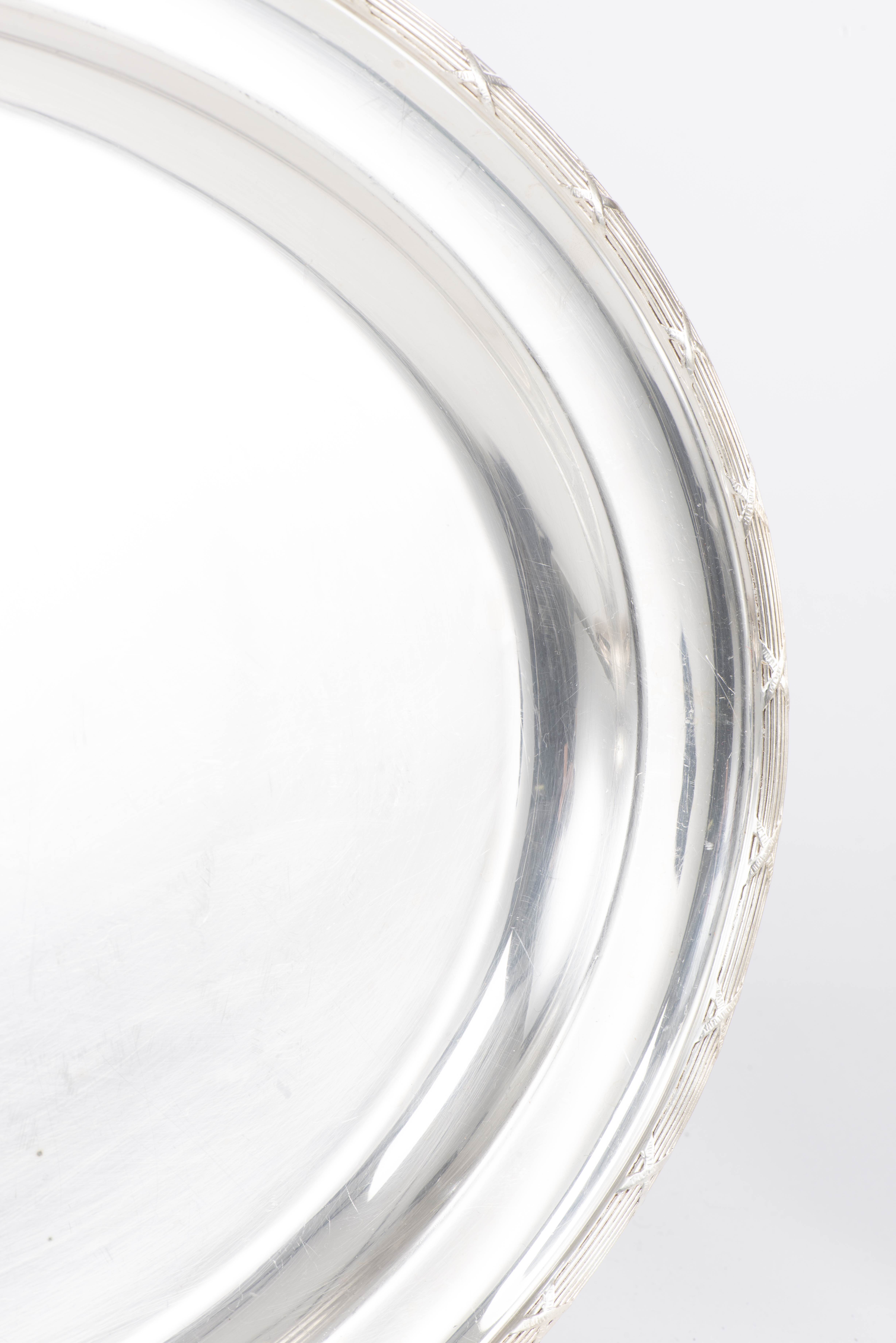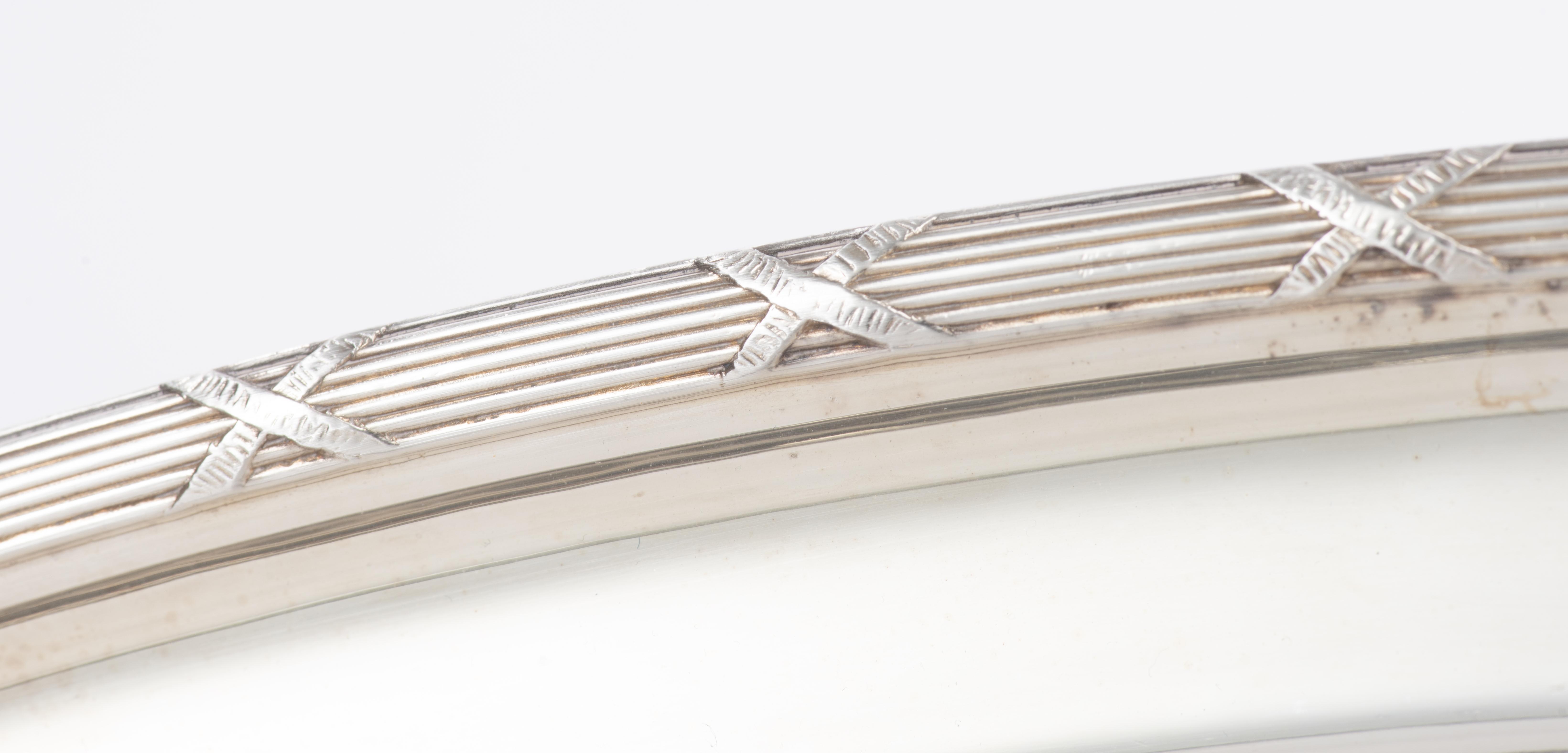 Christofle, suite de 4 plateaux ovales, modèle aux rubans croisés.
