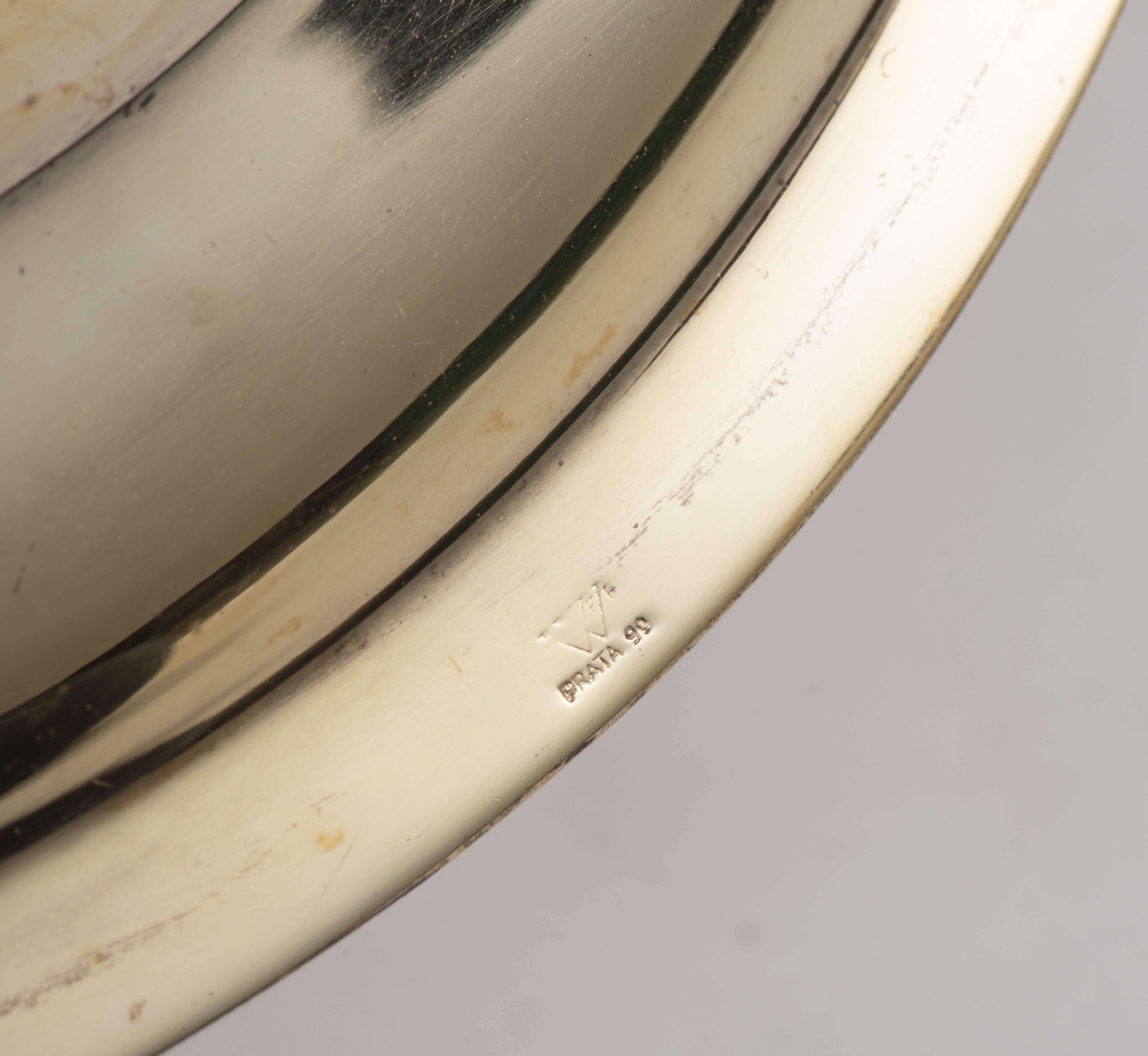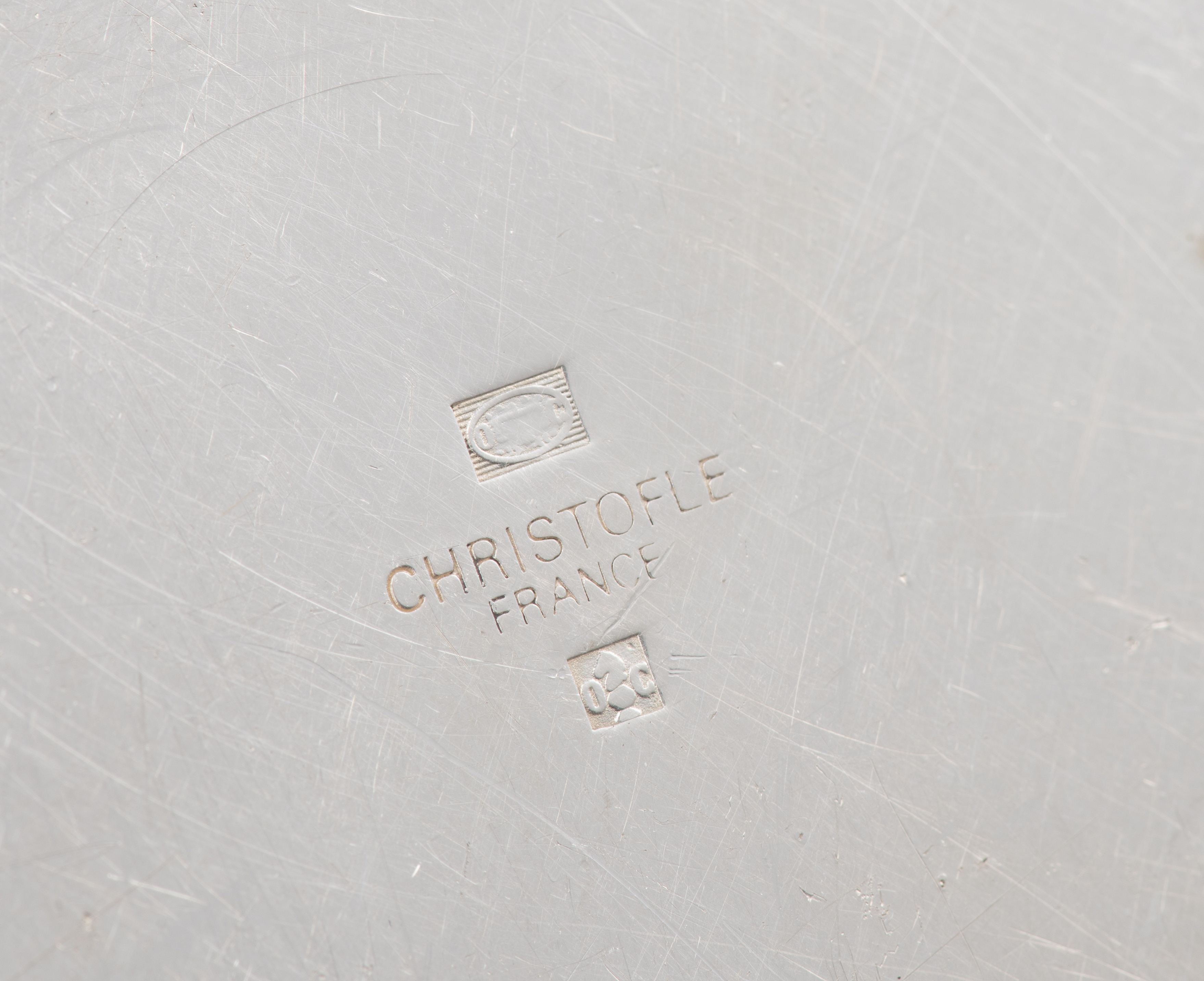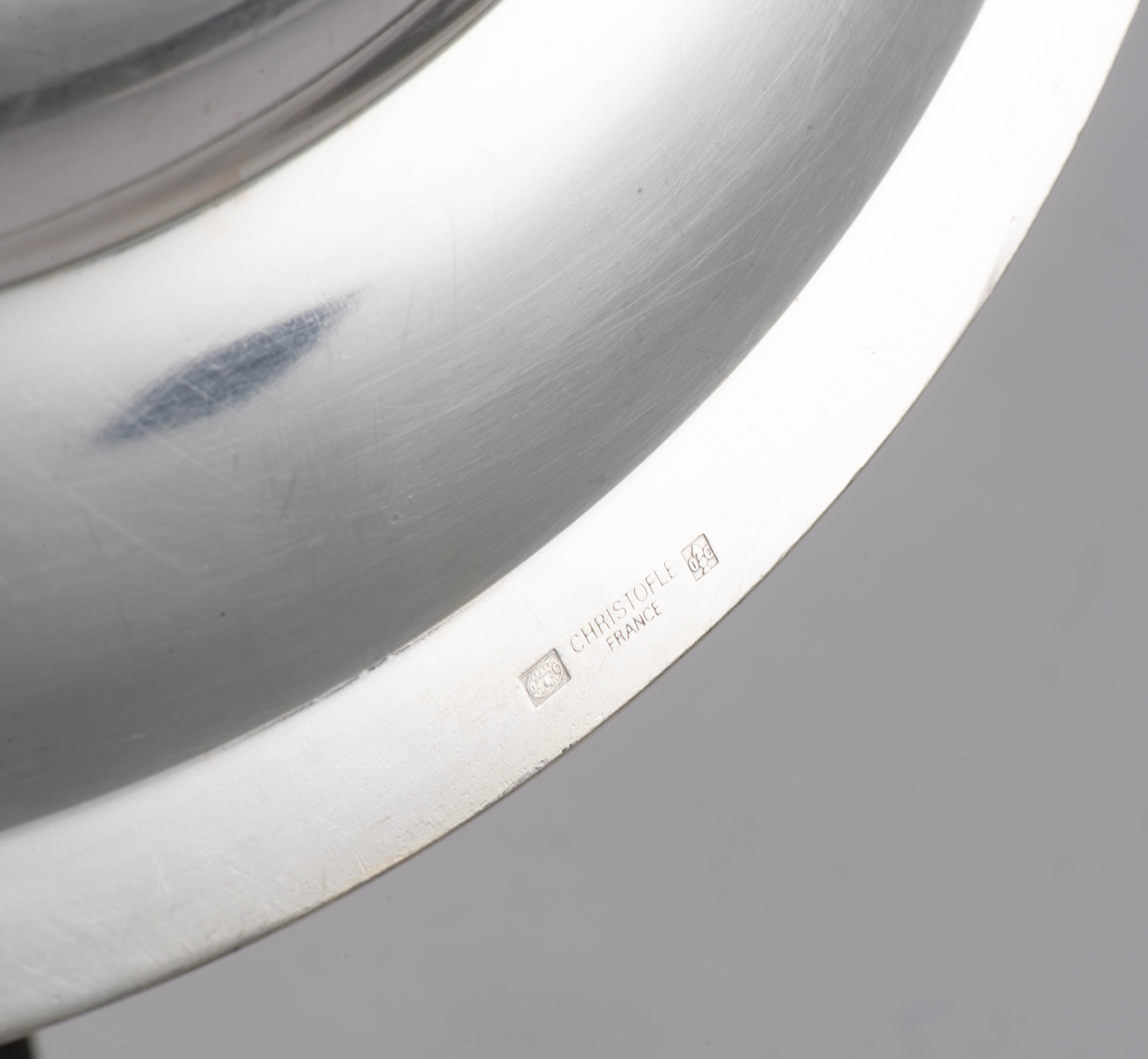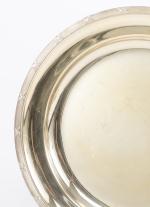 Christofle, suite de 4 plateaux ronds, modèle aux rubans croisés.