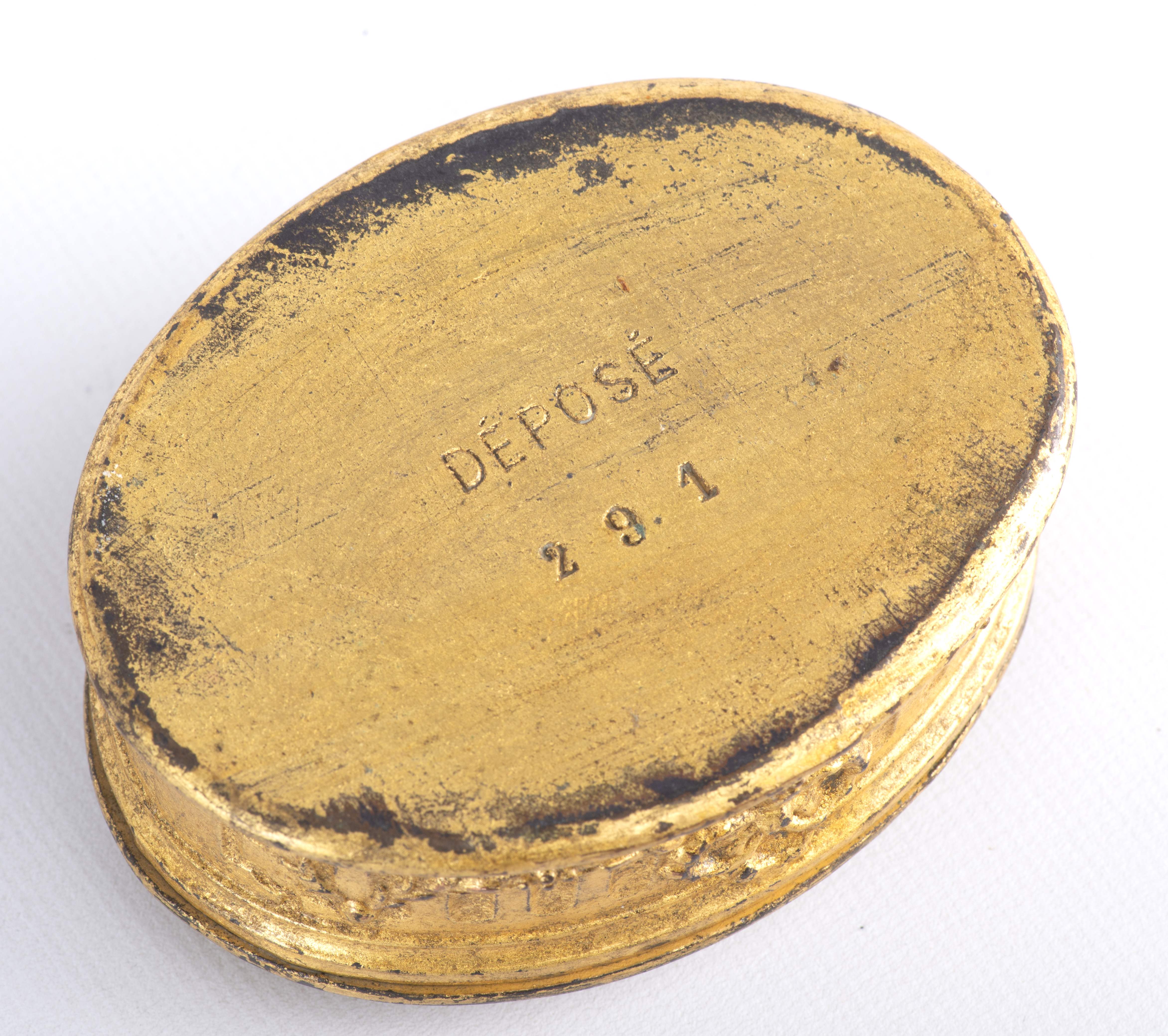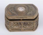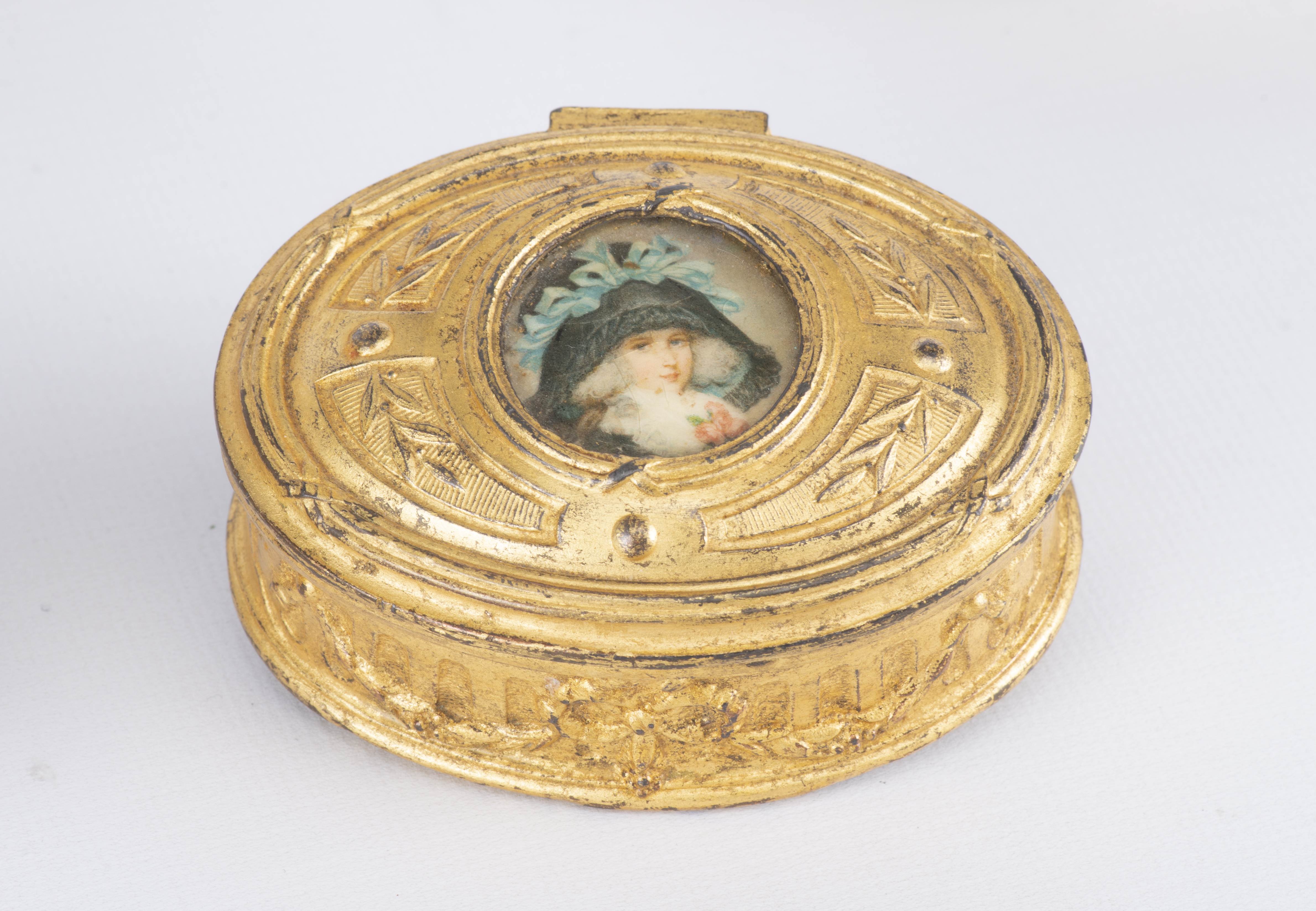 Cinq boîtes (minaudières) en cuivre doré à médaillon de miniatures