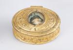 Cinq boîtes (minaudières) en cuivre doré à médaillon de miniatures, époque Napoléon III.