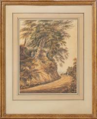 -Anonyme, "Le puit vers la route" aquarelle sur papier non signé