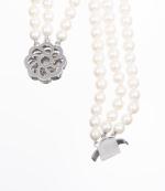 Collier de perles à trois rangs, fermoir motif marguerite en or blanc