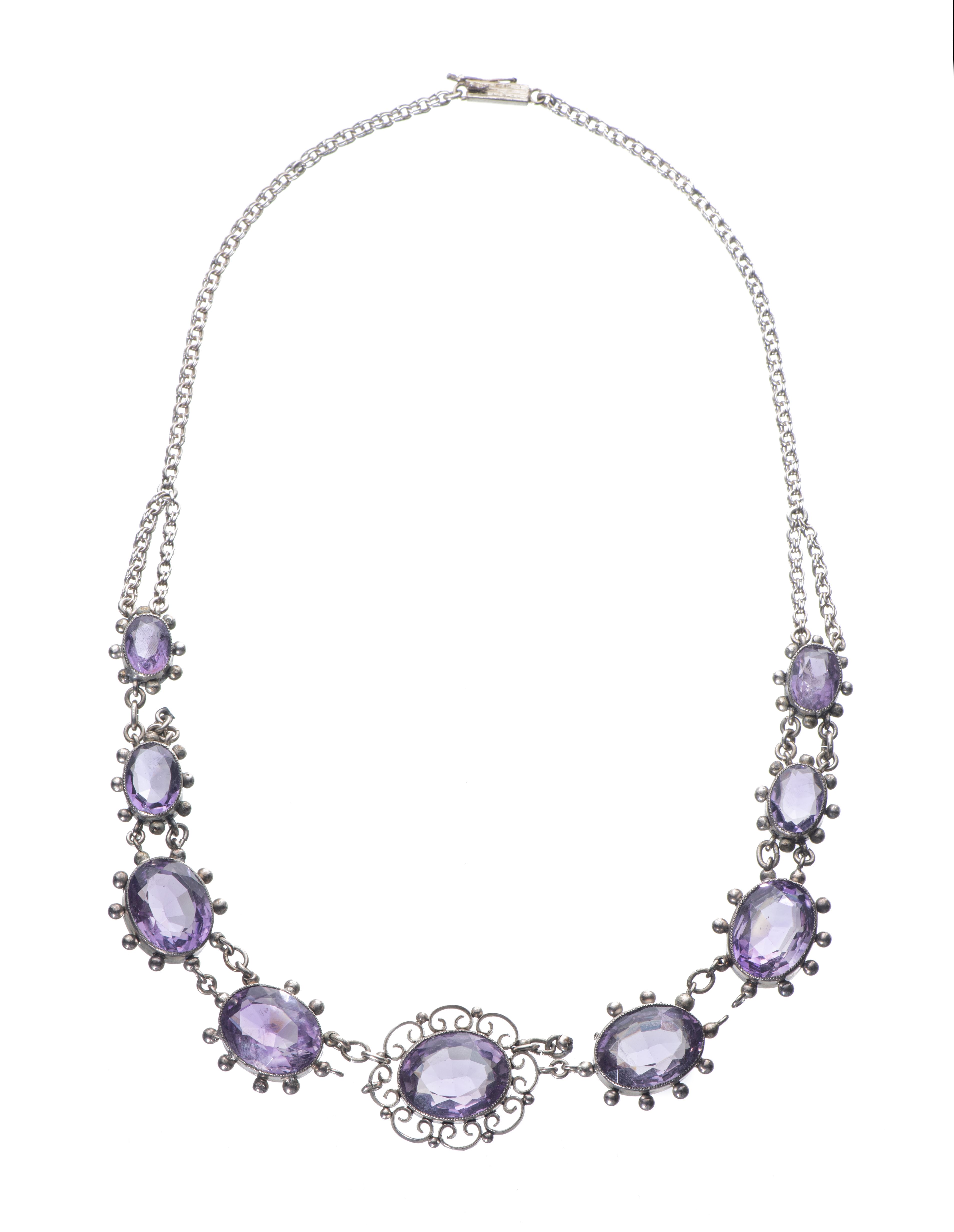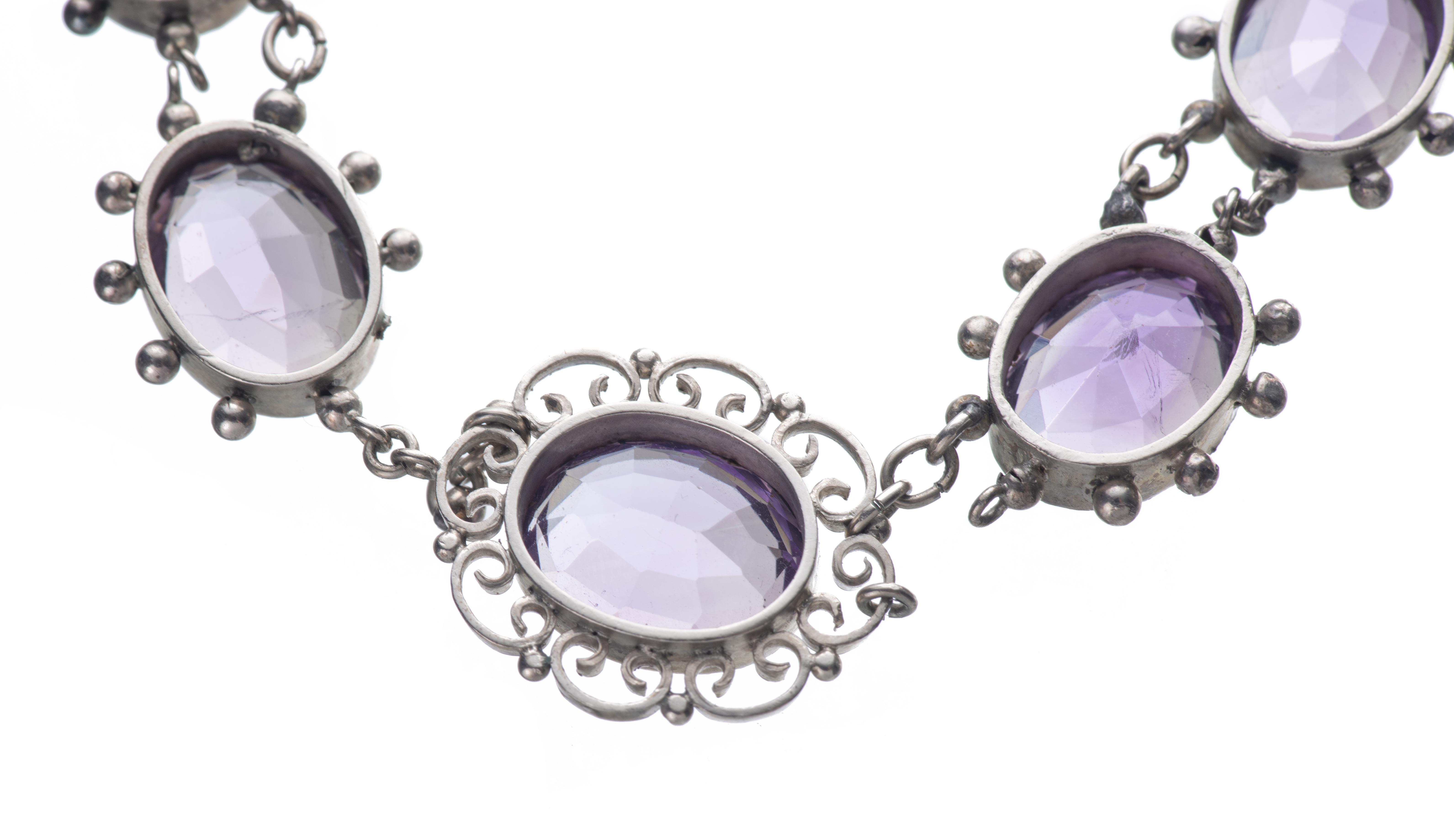 Collier en argent avec 9 améthystes serties clos pour un total de 45 ct.