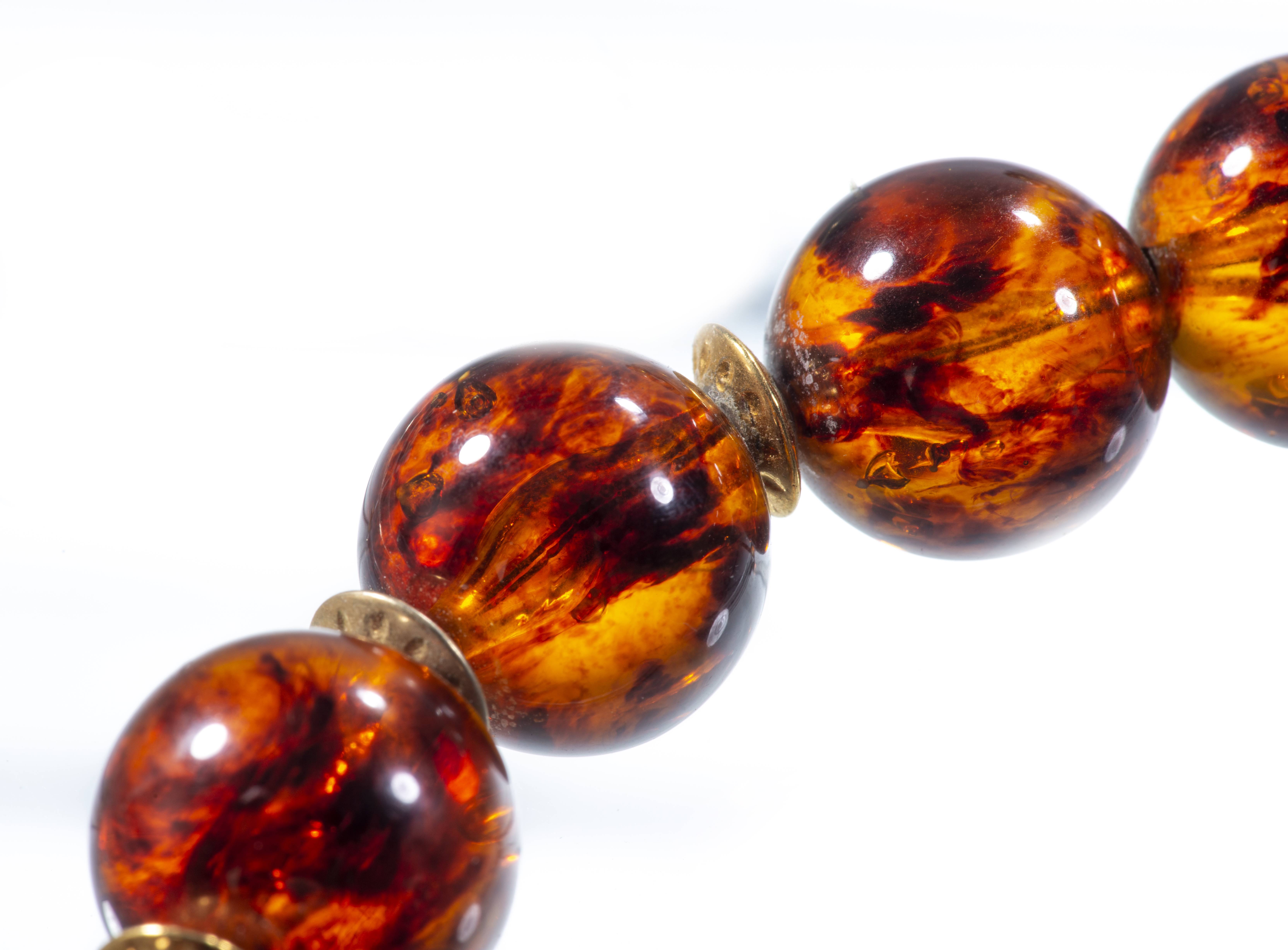 Collier tour de cou de 19 boules d'ambre.