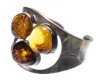 On y joint un bracelet en métal à 3 cabochons d'ambre D. 5 cm et un pendentif à 1 cabochon d'ambre avec montre en argent. 925.