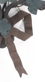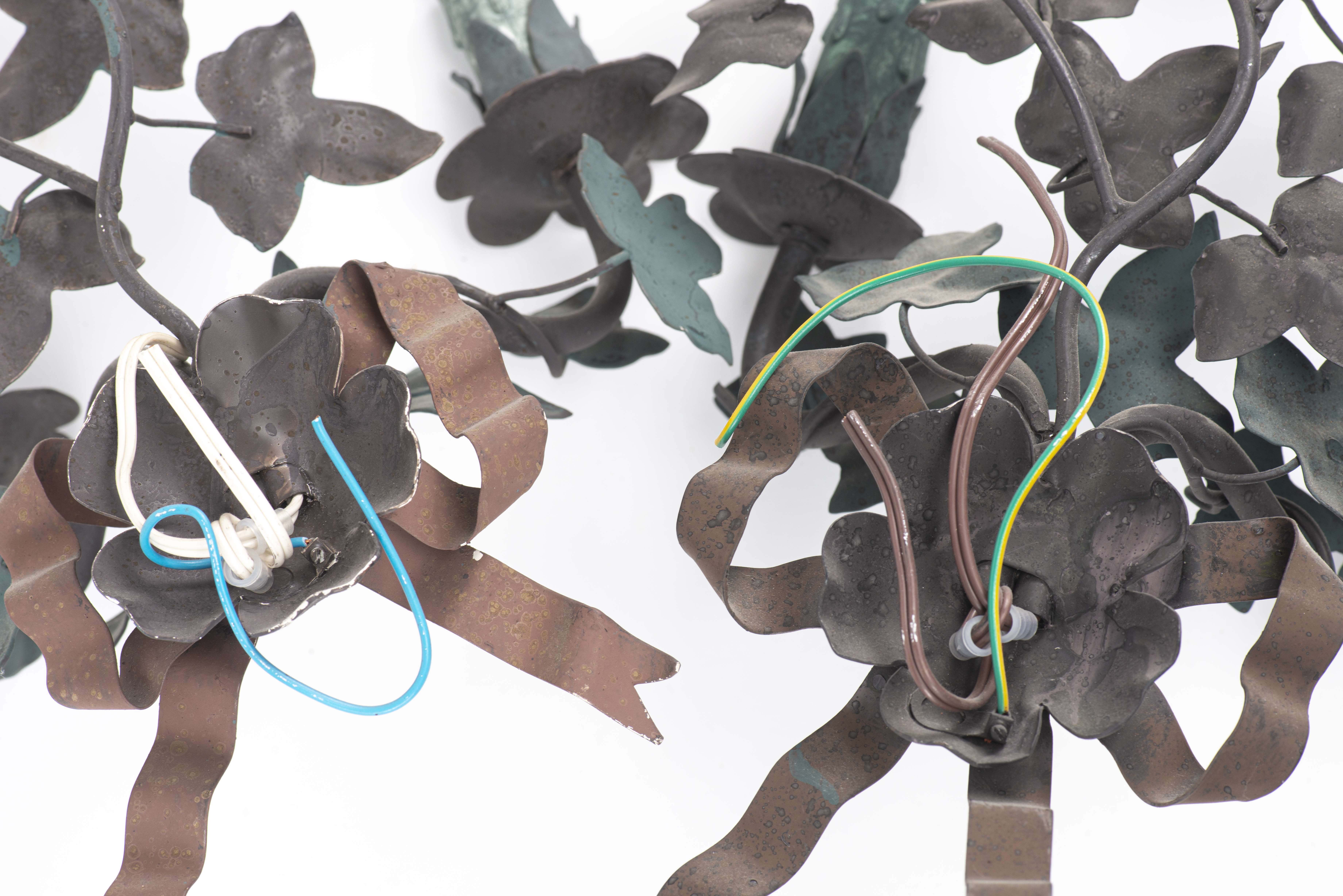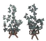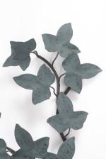 On y joint une paire d'appliques en fer forgé à décor de feuilles de lierre à même patine