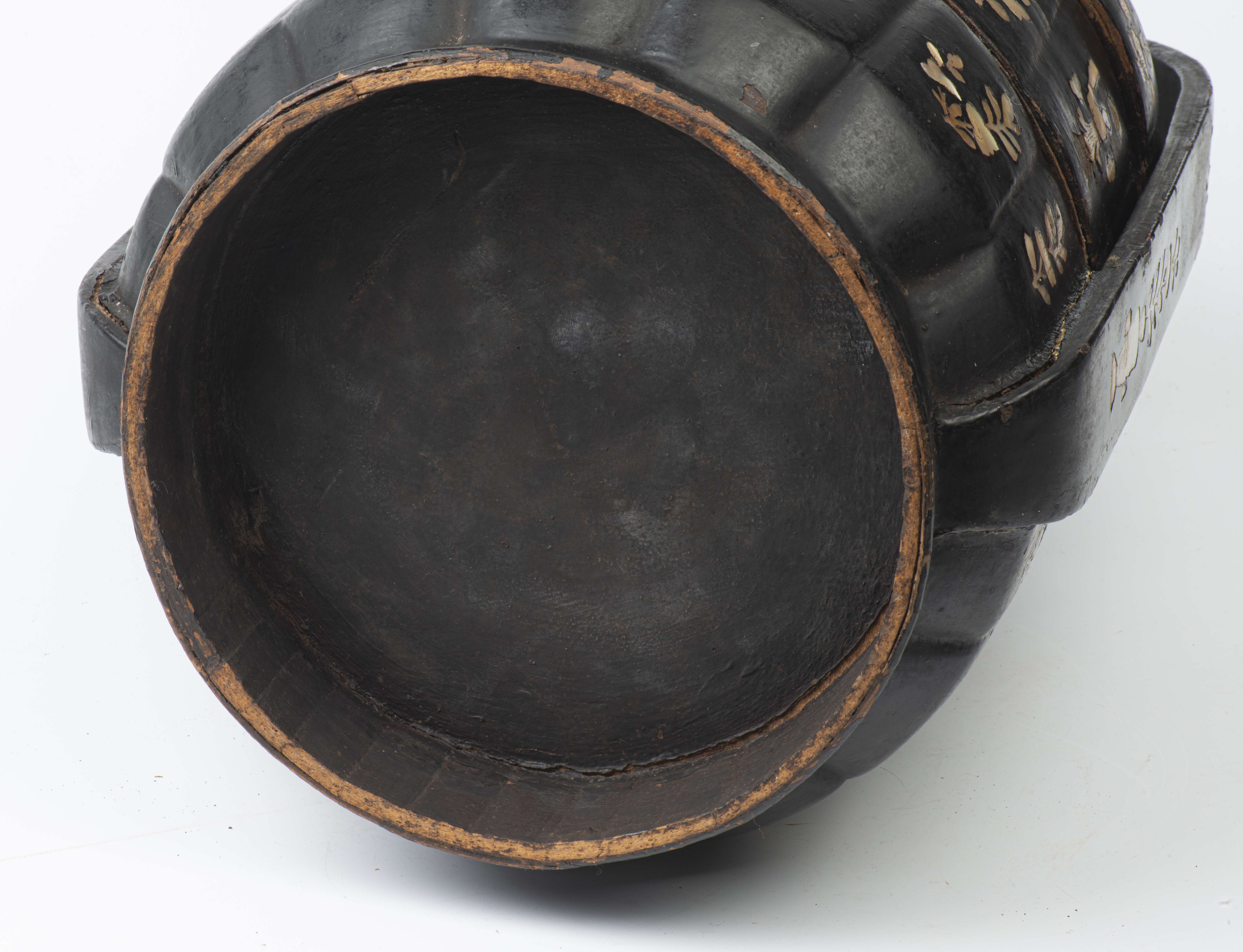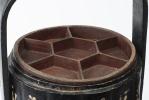 Corbeille de mariage en bois laqué noir à décor de nacre et 3 compartiments. Corée, XIXe-XXe.