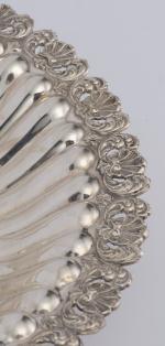 Coupe circulaire en argent .800 à décor de godrons, frise extérieure à motif de palmettes, le tout reposant sur 3 pieds.
