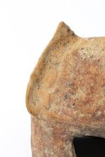 Culture Jalisco (Mexique) préclassique tardif 200-100 av. J.C., petite maison en terre cuite avec une mère assise tenant un enfant dans ses bras.