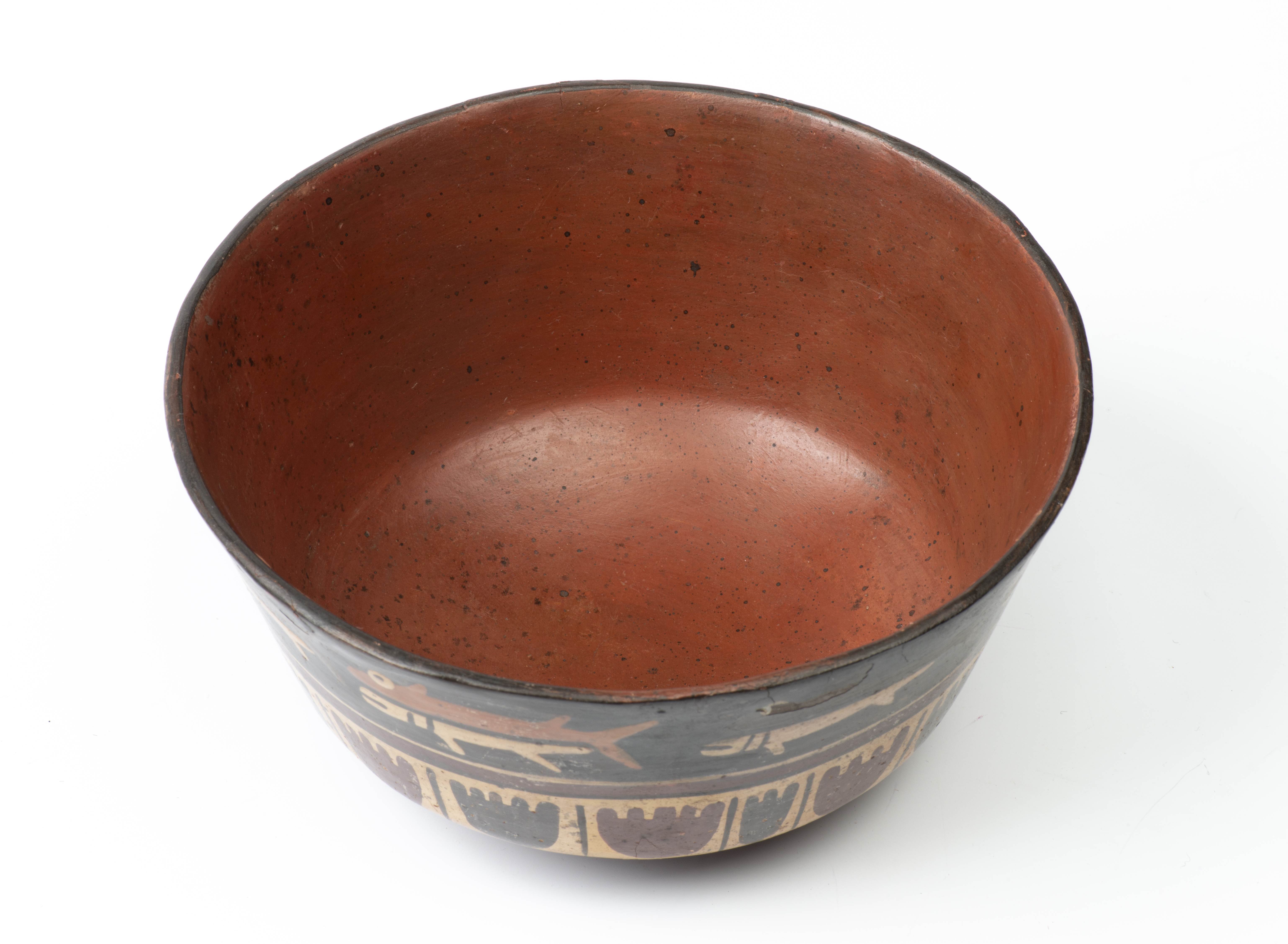 Culture Nazca (Pérou), bol en terre cuite à décor de frise de poissons