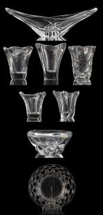 Daum France ensemble de 8 pièces en cristal transparent des années 50 :