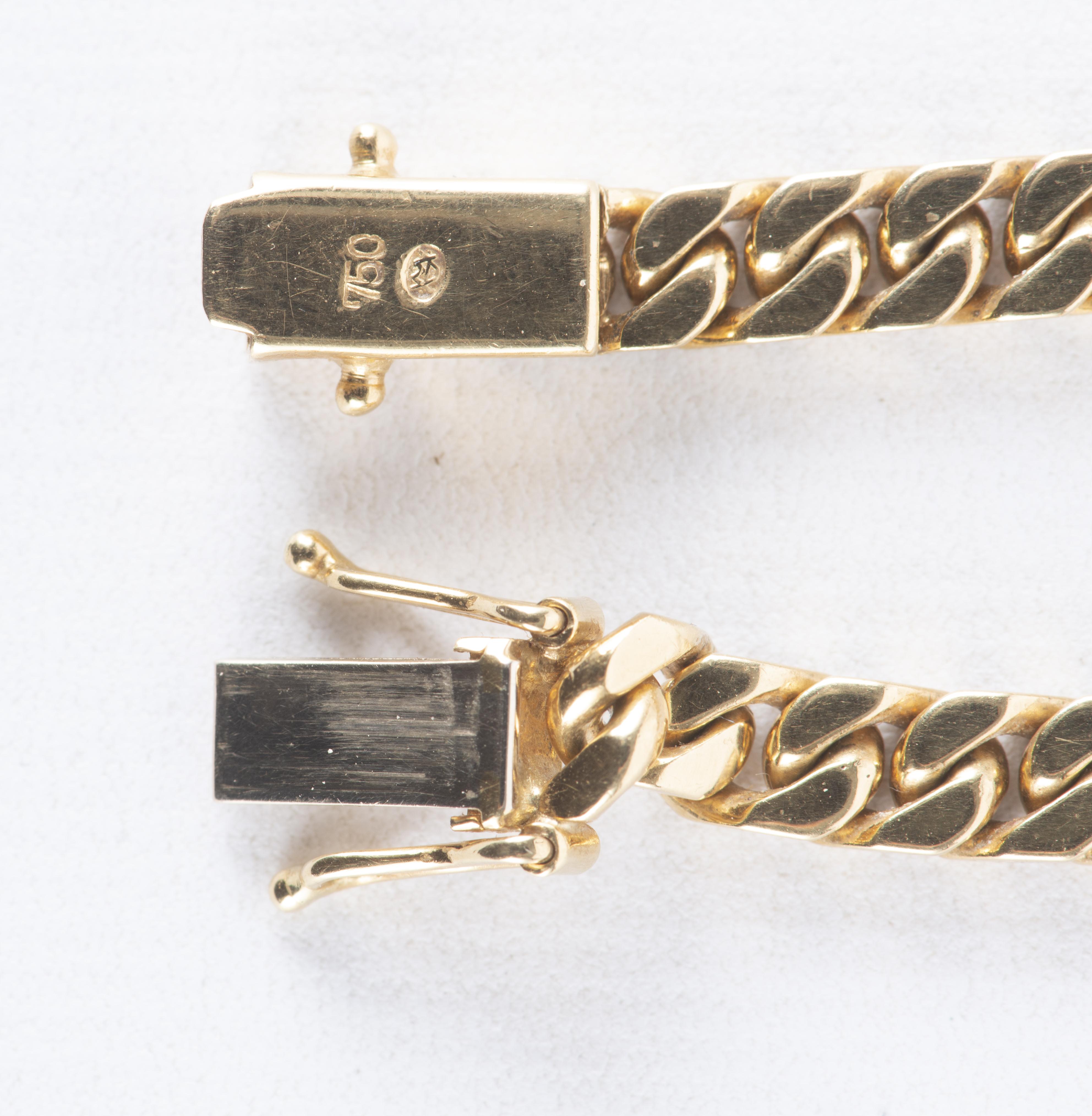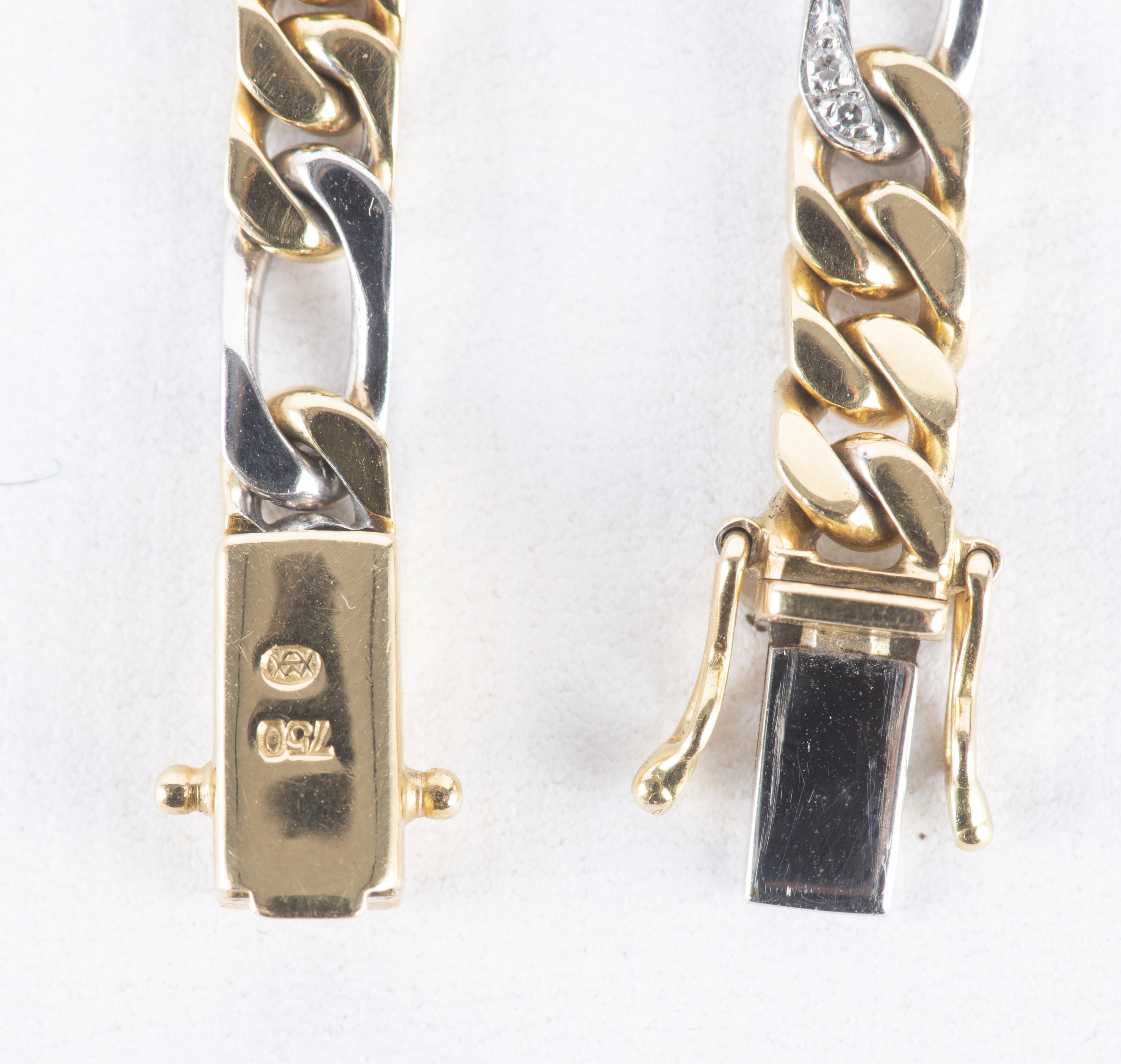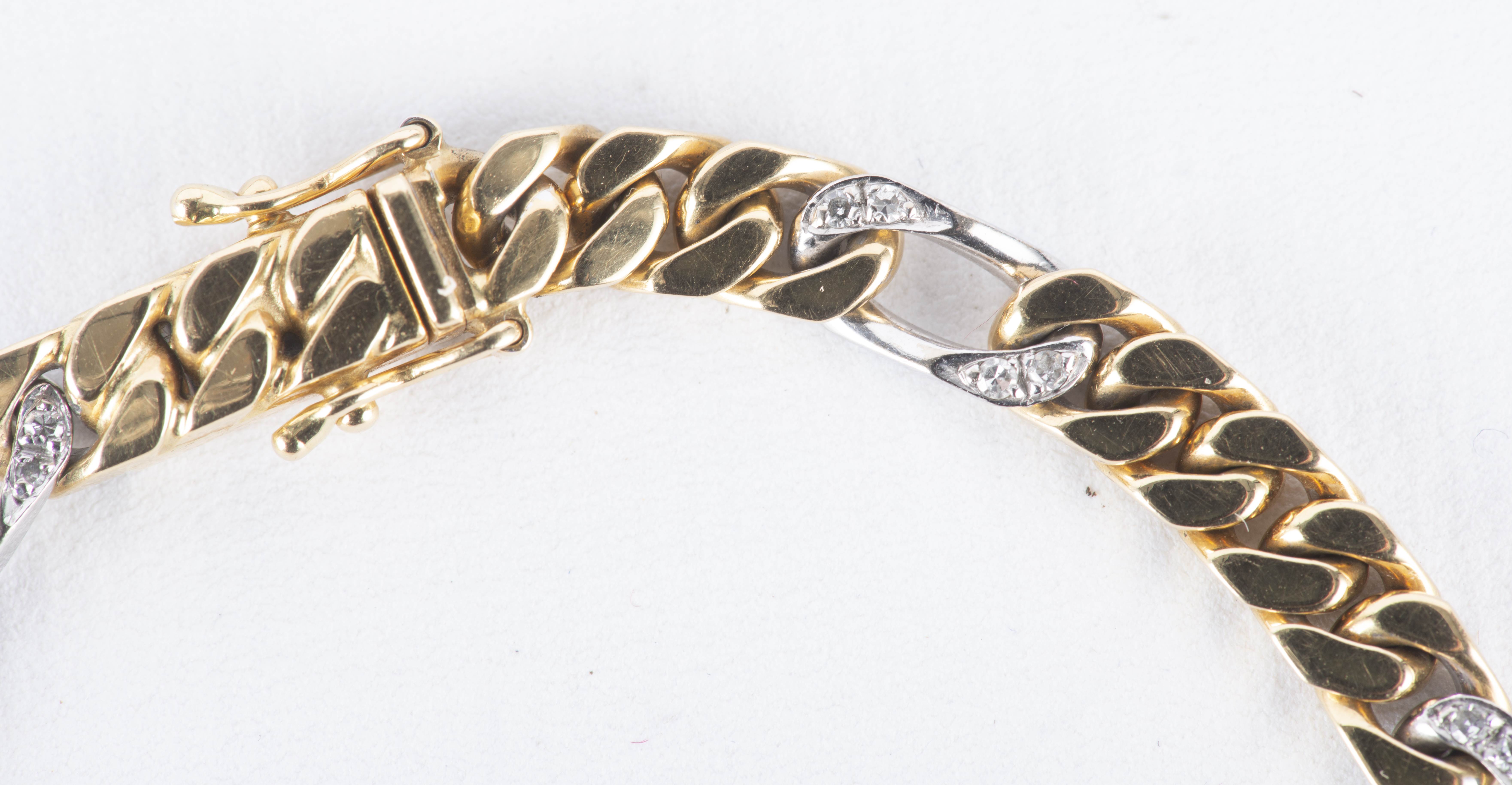 Demi-parure en or jaune .750 maille en S, avec 4 maillons en or blanc à 4 brillants :