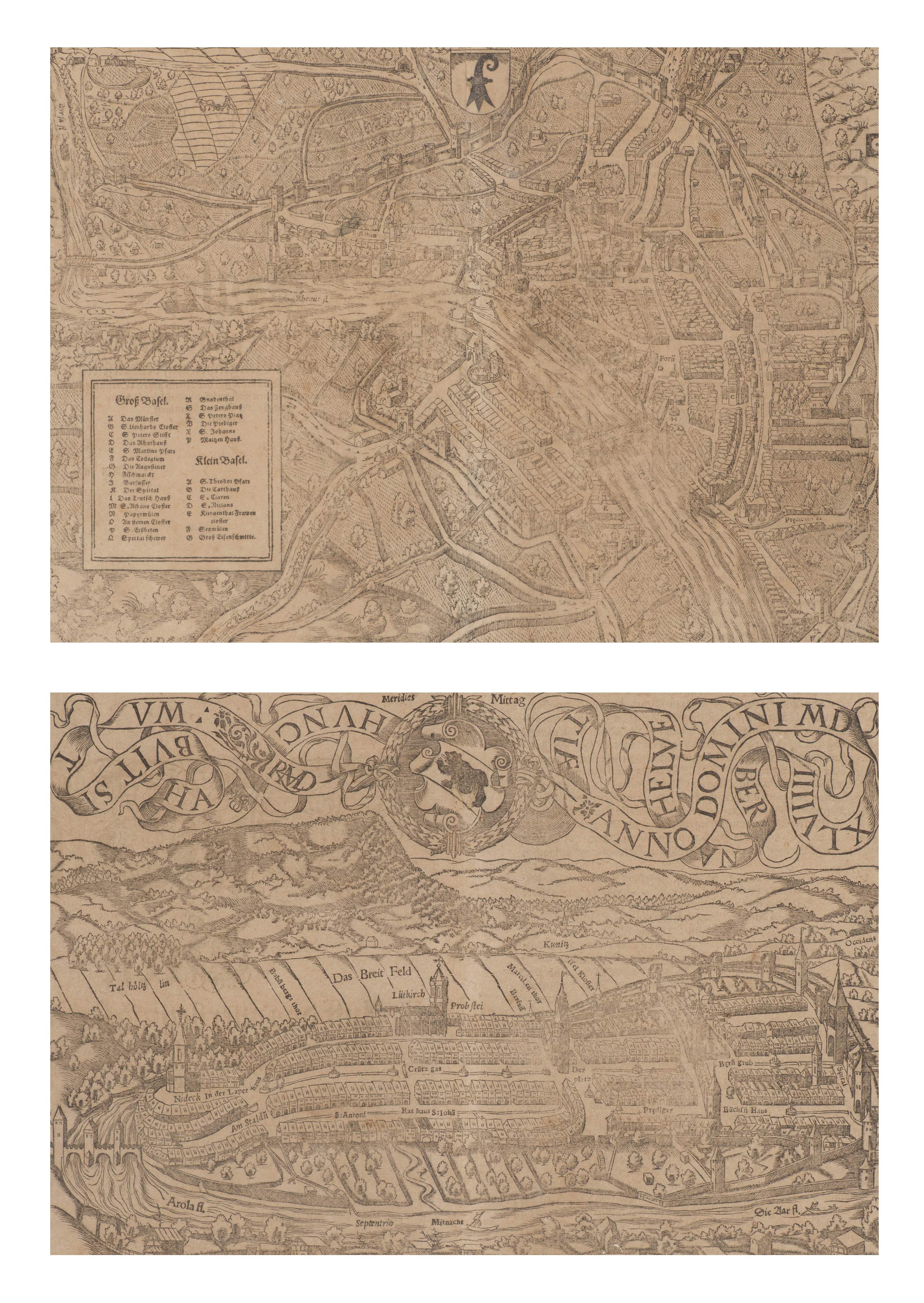 Deux cartes gravées des villes anciennes de Berne & Bâle.
