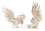 Deux coqs au combat en métal doré