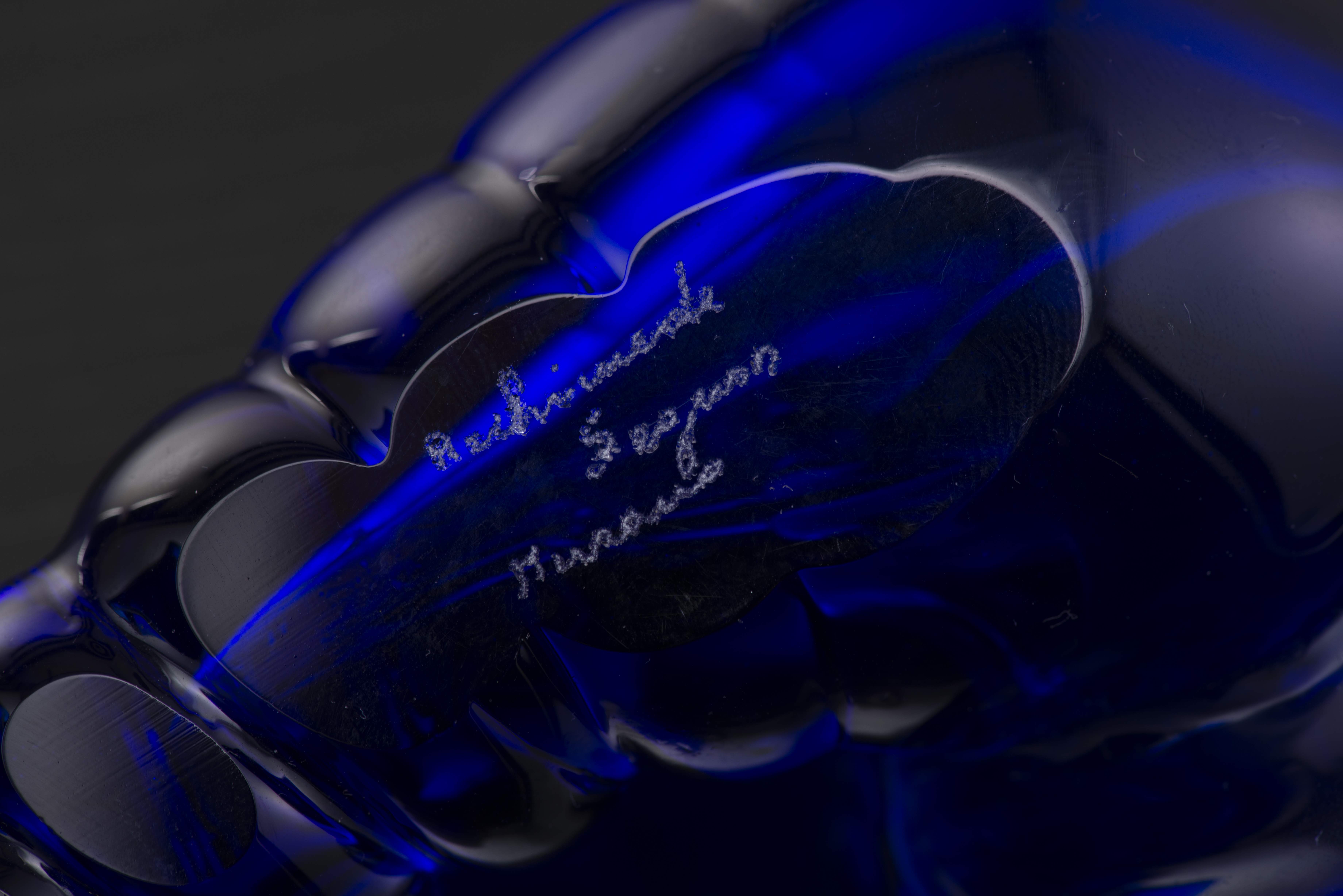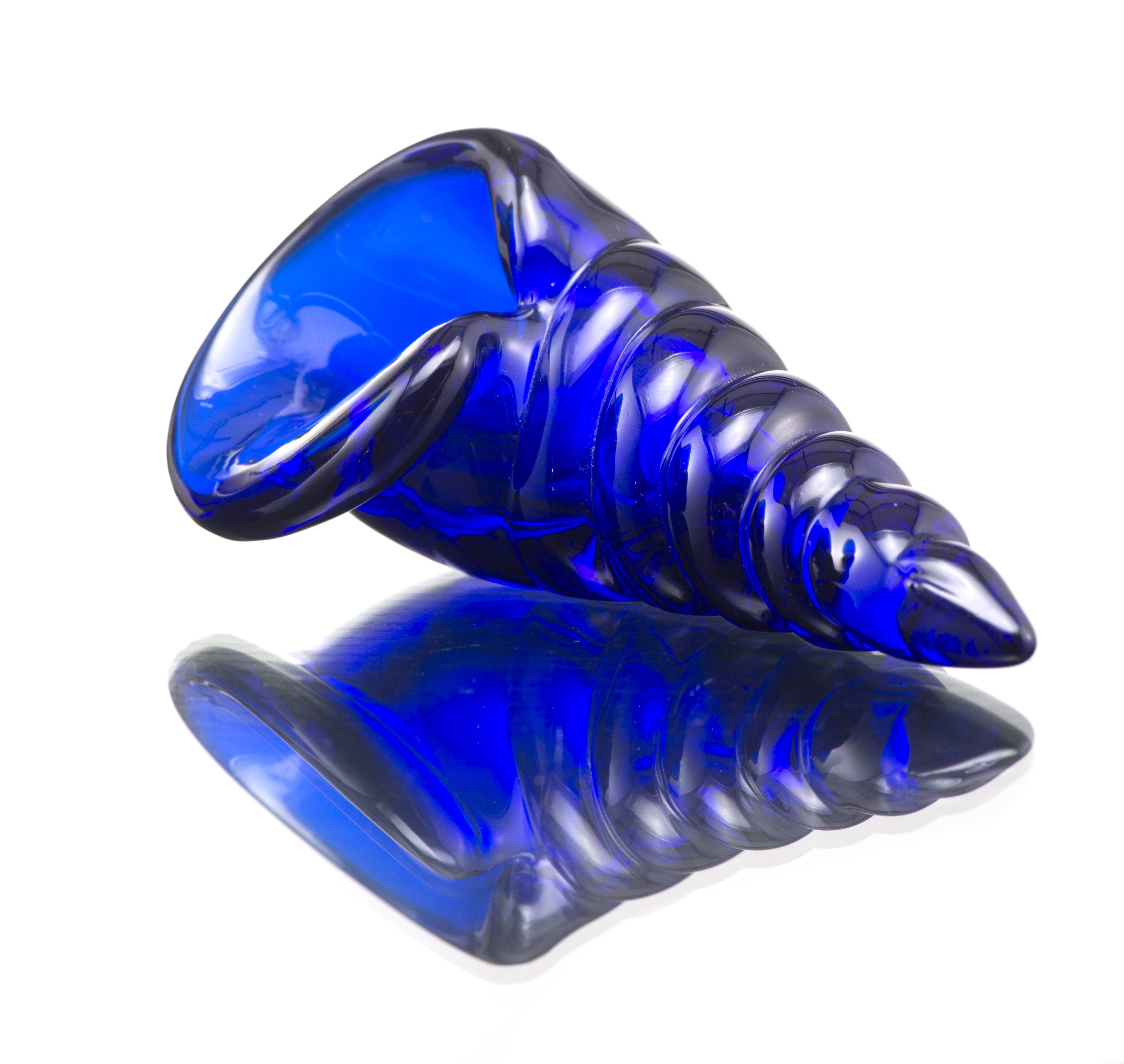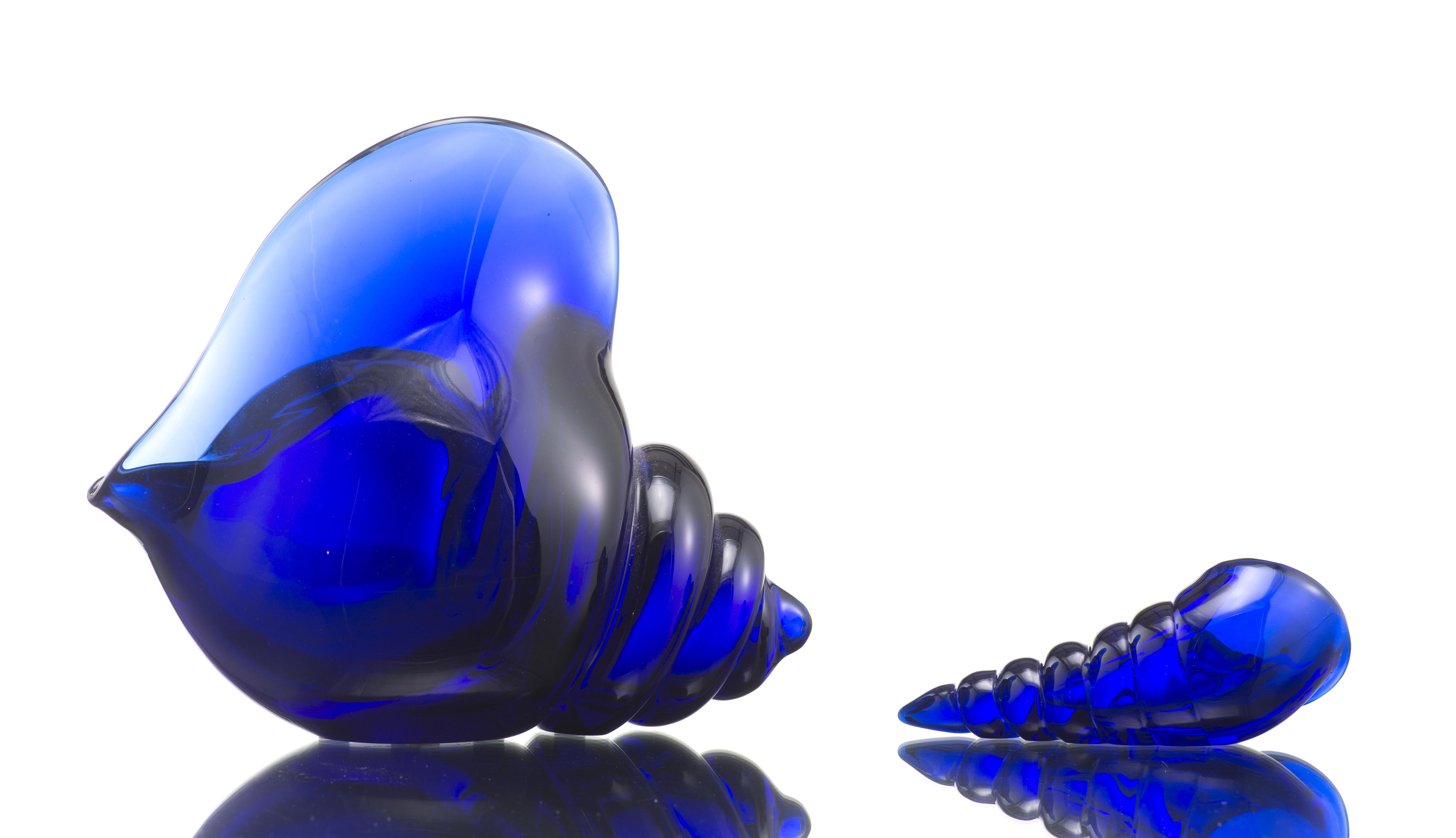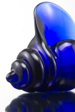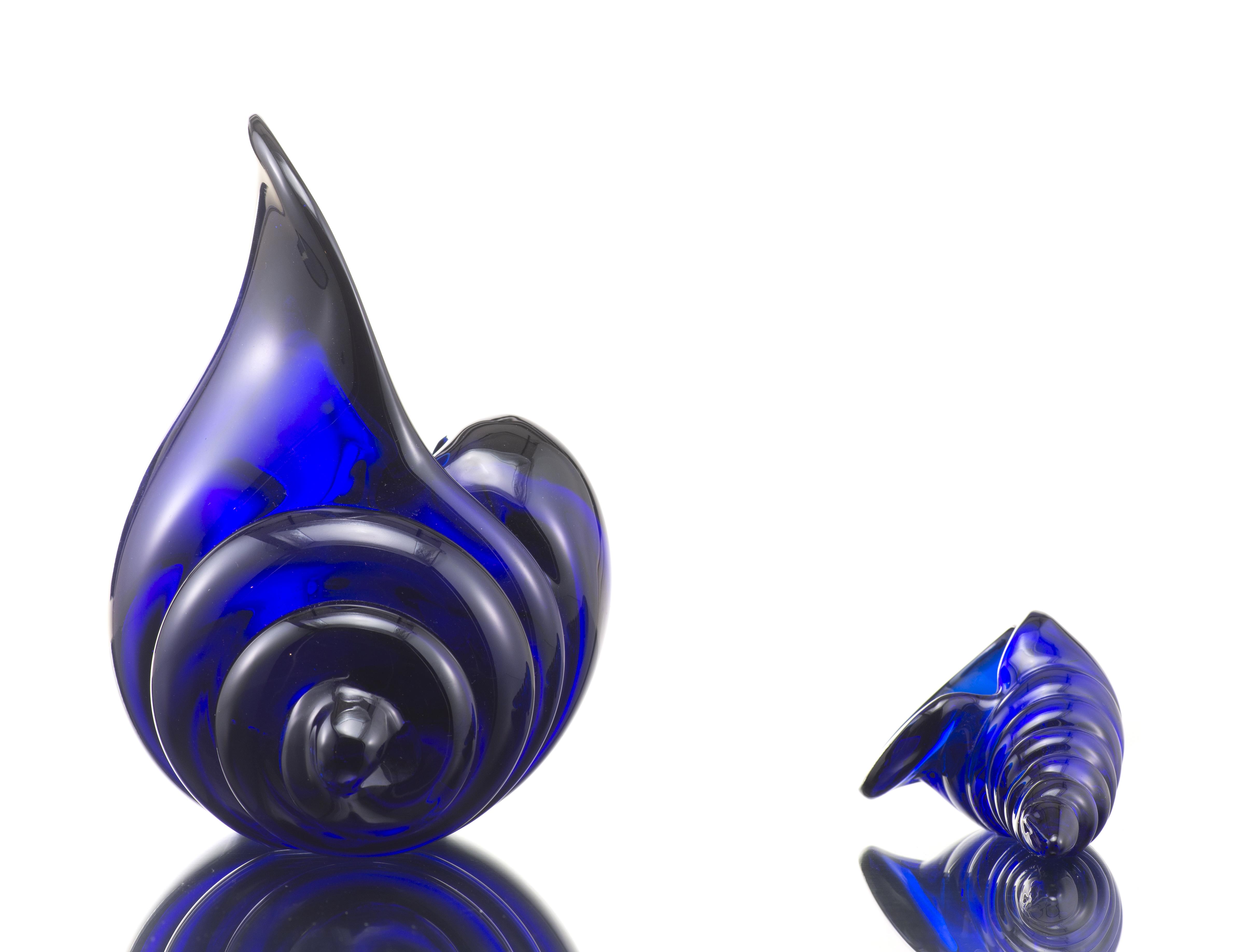 Deux coquillages en verre bleu de Murano par Archimede Seguso, signés sous la base.