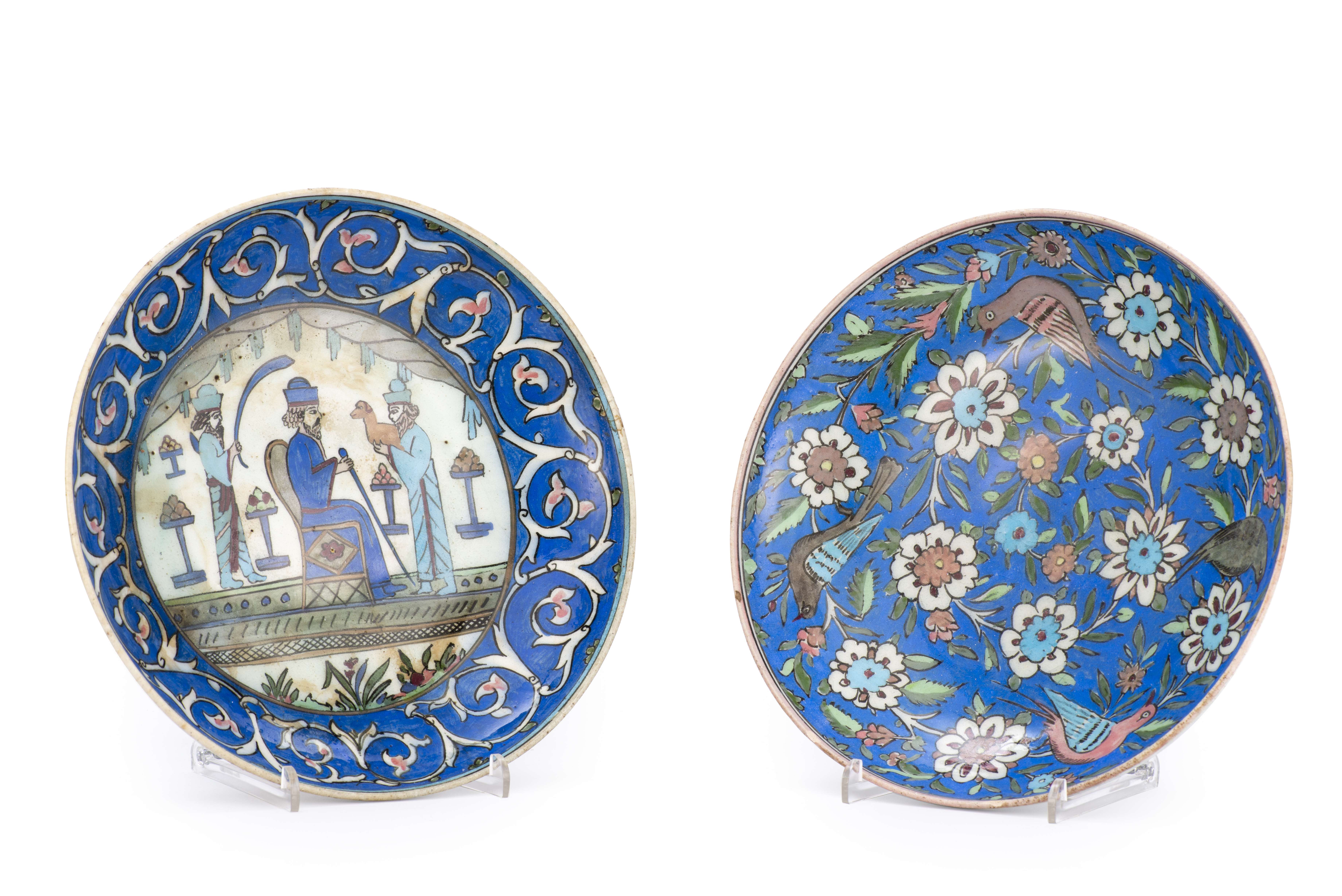 Deux grands plats ronds Kadjar (1786-1925) ou Kadjars (ou Qājār, Qadjar, Qajar, قاجار ) Iran