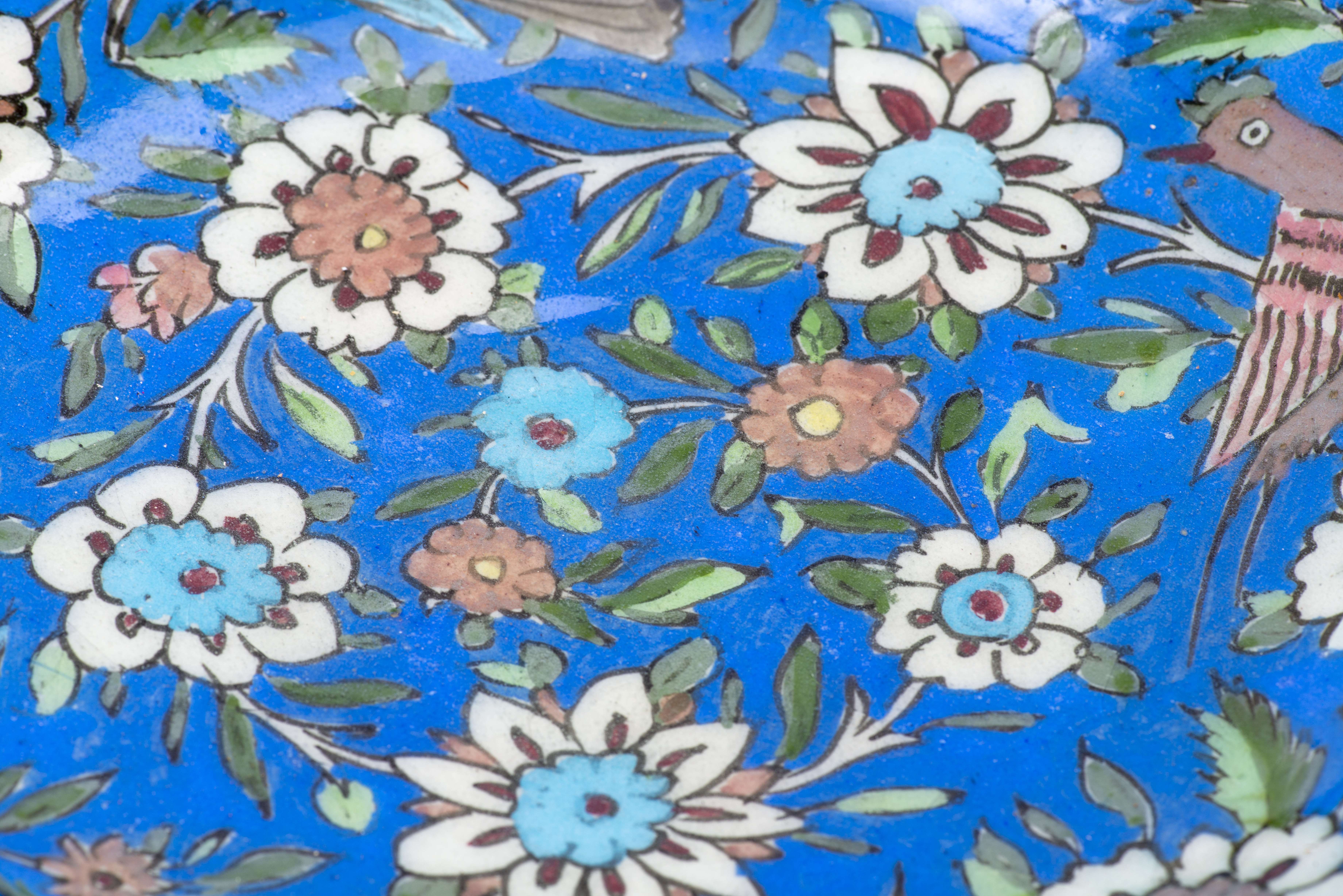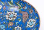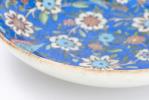 - l'un à fond bleu parsemé d'oiseaux et fleurs Diam.33.5 x H.8.5 cm