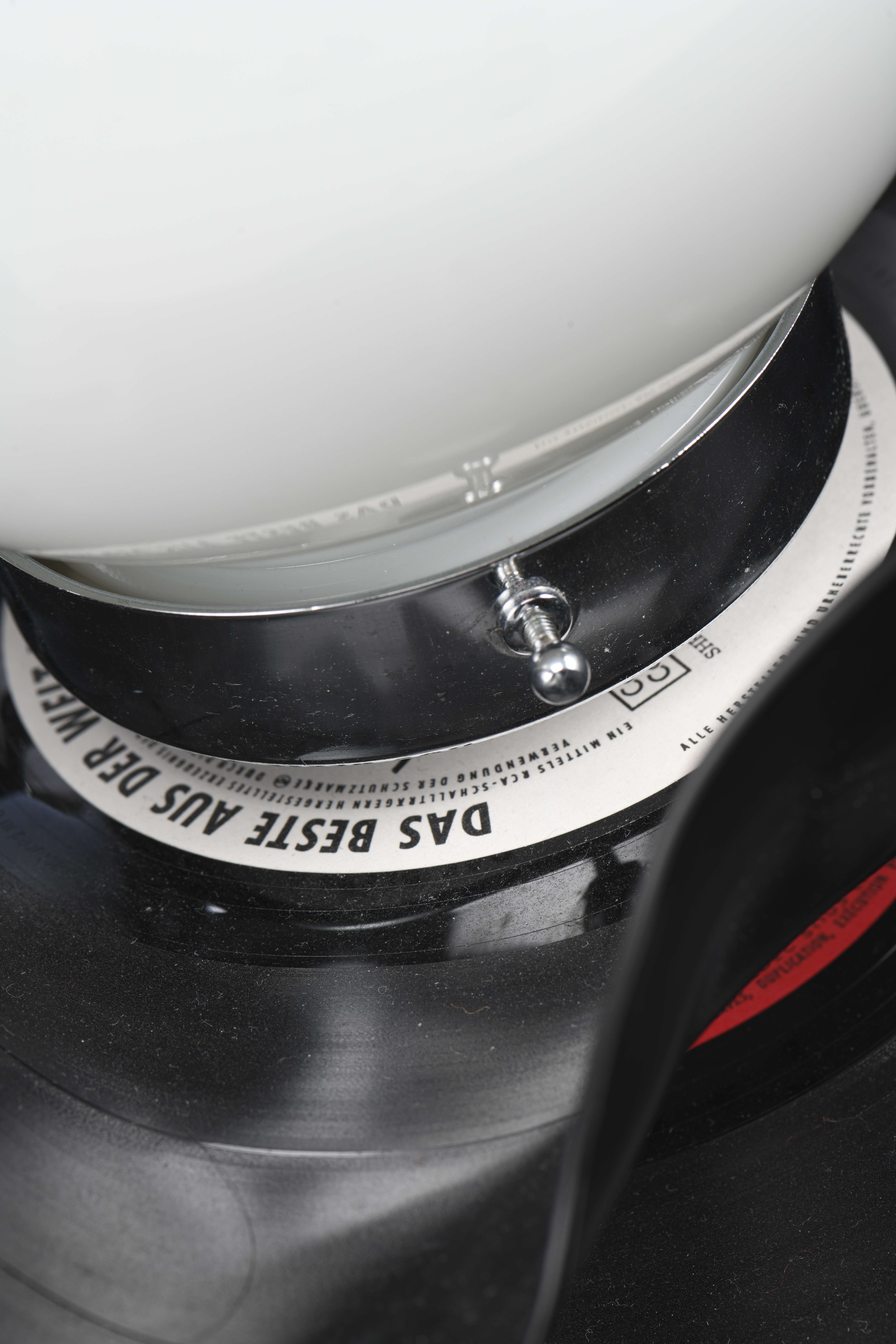 Deux lampes Vinyle avec globes de verre opaques (création des années 1970).
