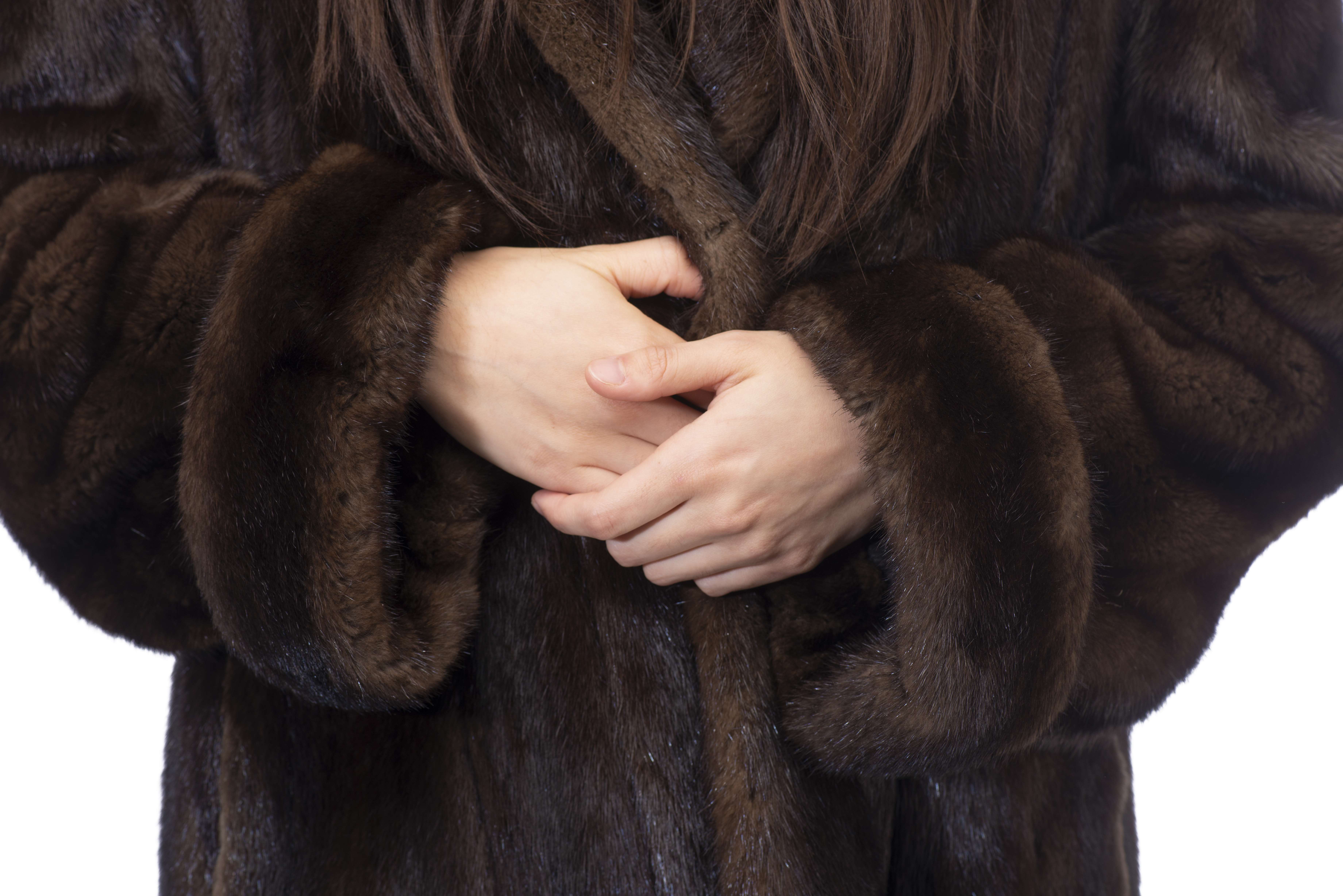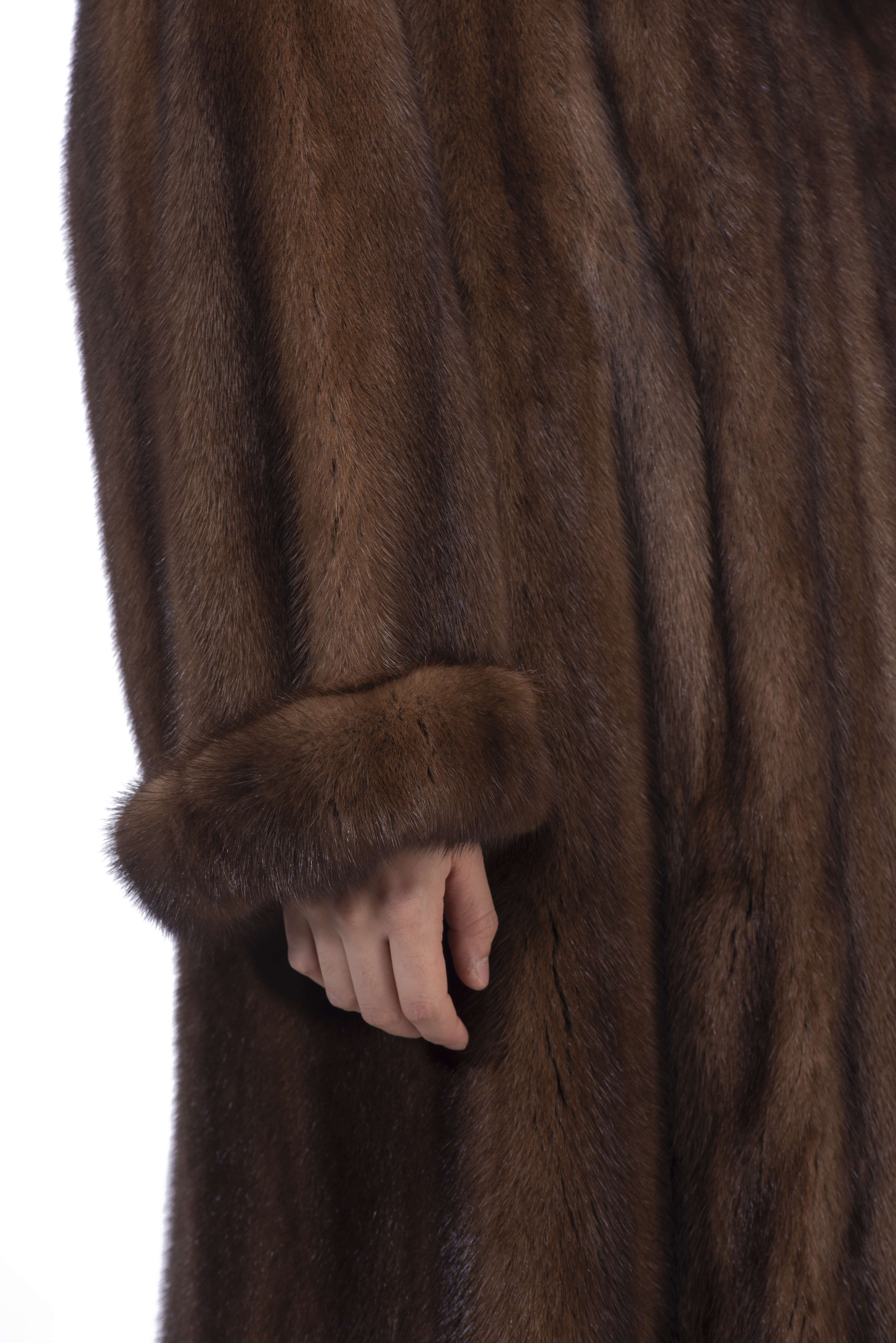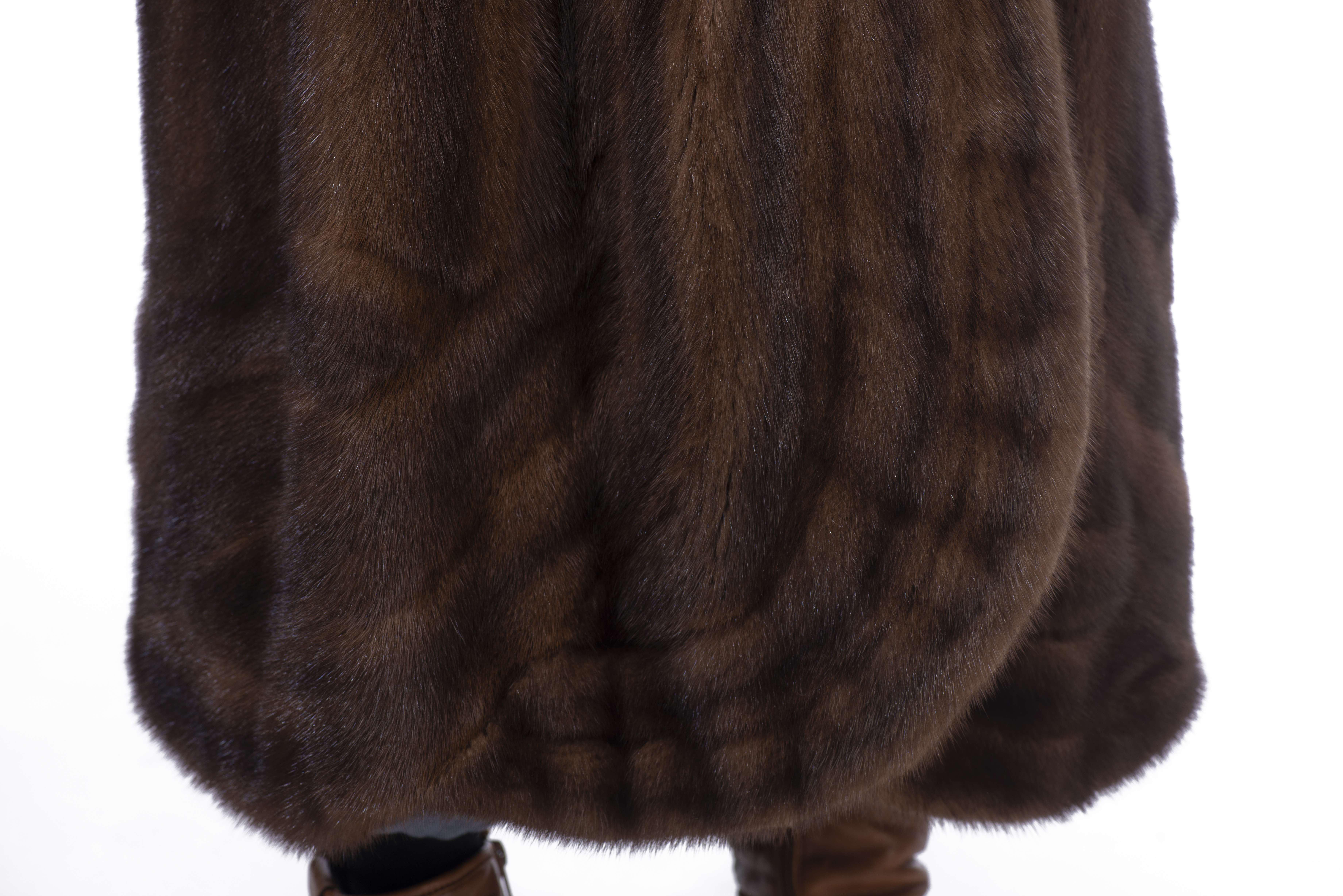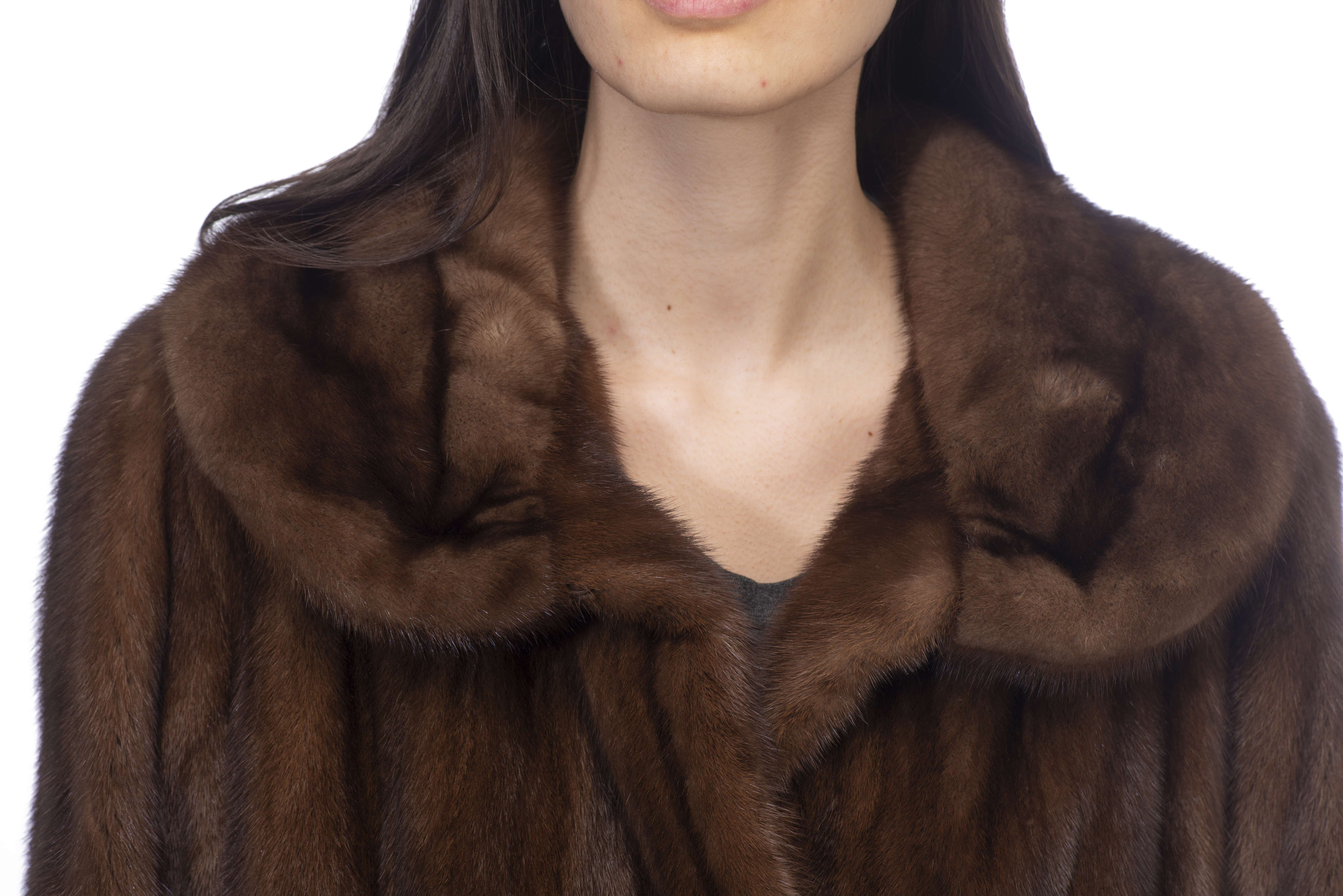 Deux manteaux longs de vison brun Benjamin Fourrures Lausanne Genève env. T. 46.