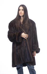 Deux manteaux longs de vison brun Benjamin Fourrures Lausanne Genève