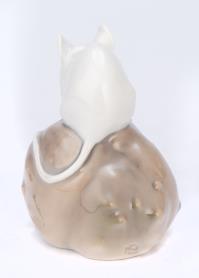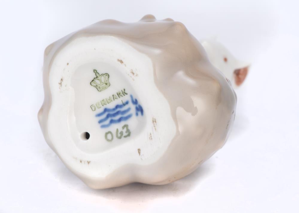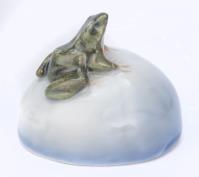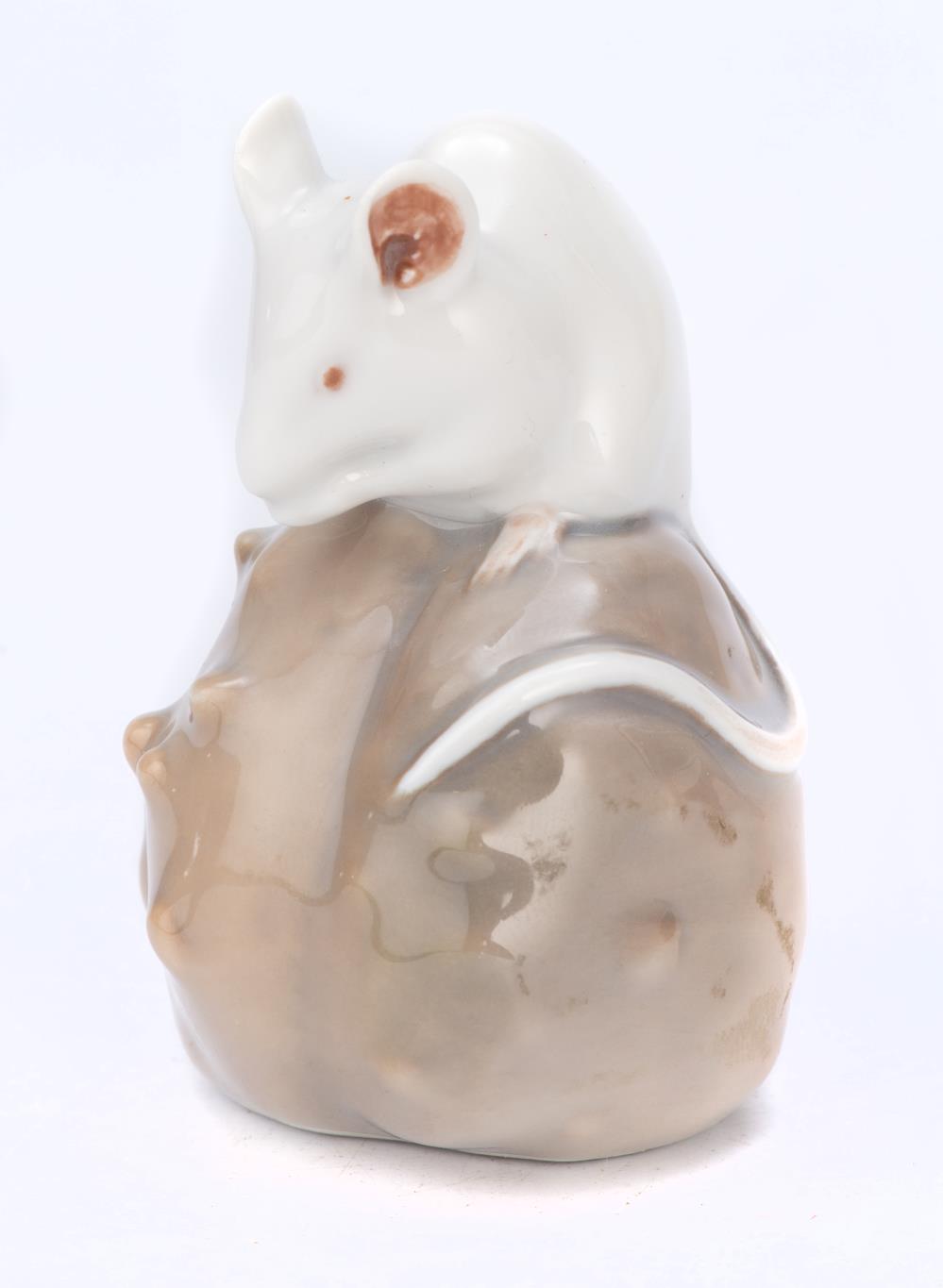 Deux mini-porcelaines en Royal Copenhague, une souris sur un marron, H. 6.6 cm et une grenouille sur un caillou H. 4.1 cm