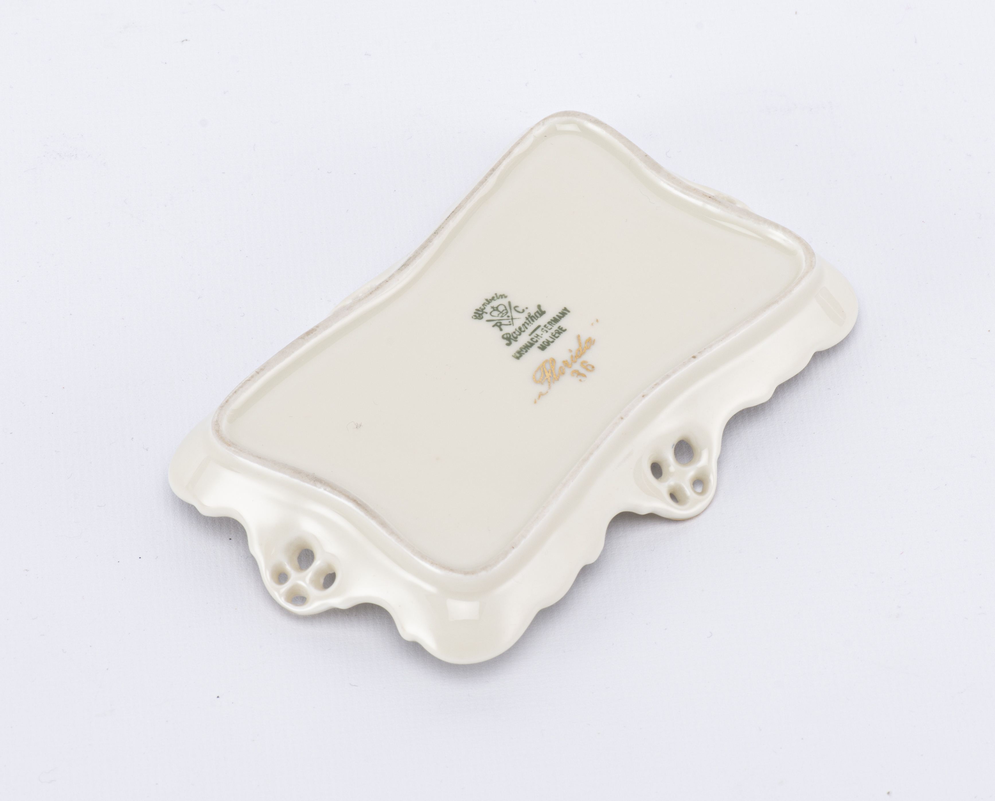 Petit plateau rectangulaire en porcelaine de Rosenthal Molière à décor Florida, signé sous la base et numéroté 36, H. 2x13.5x8.5 cm