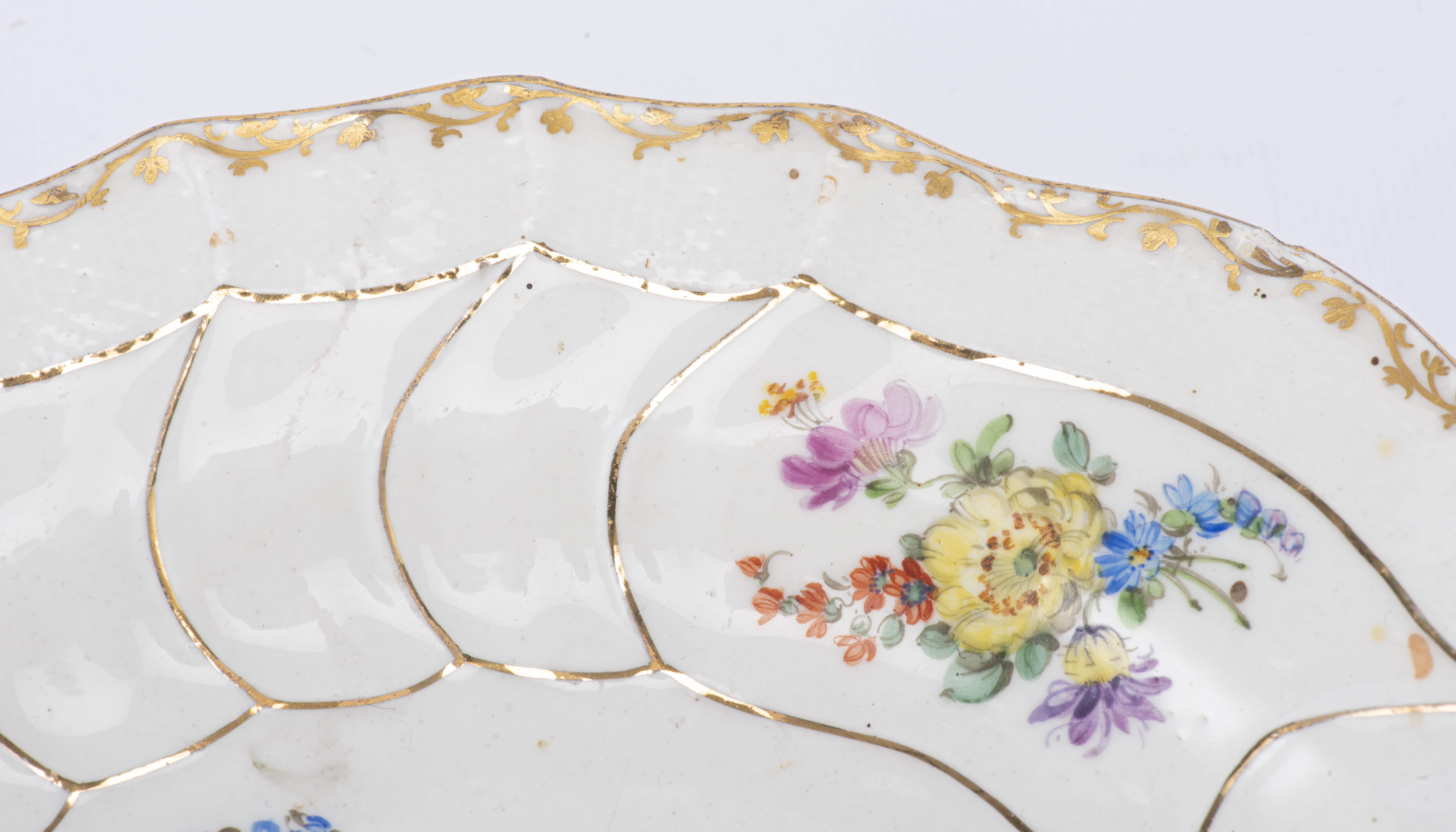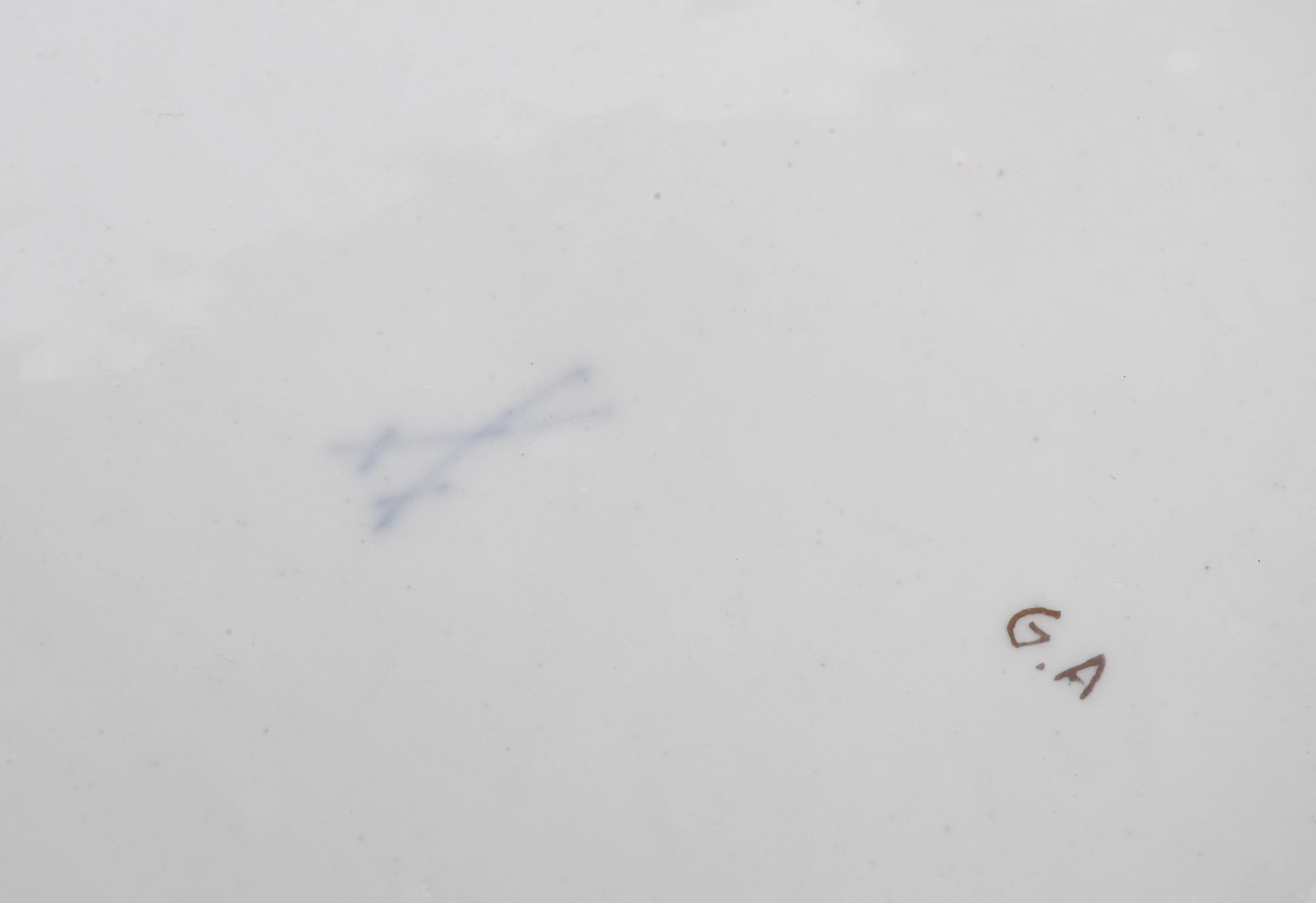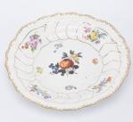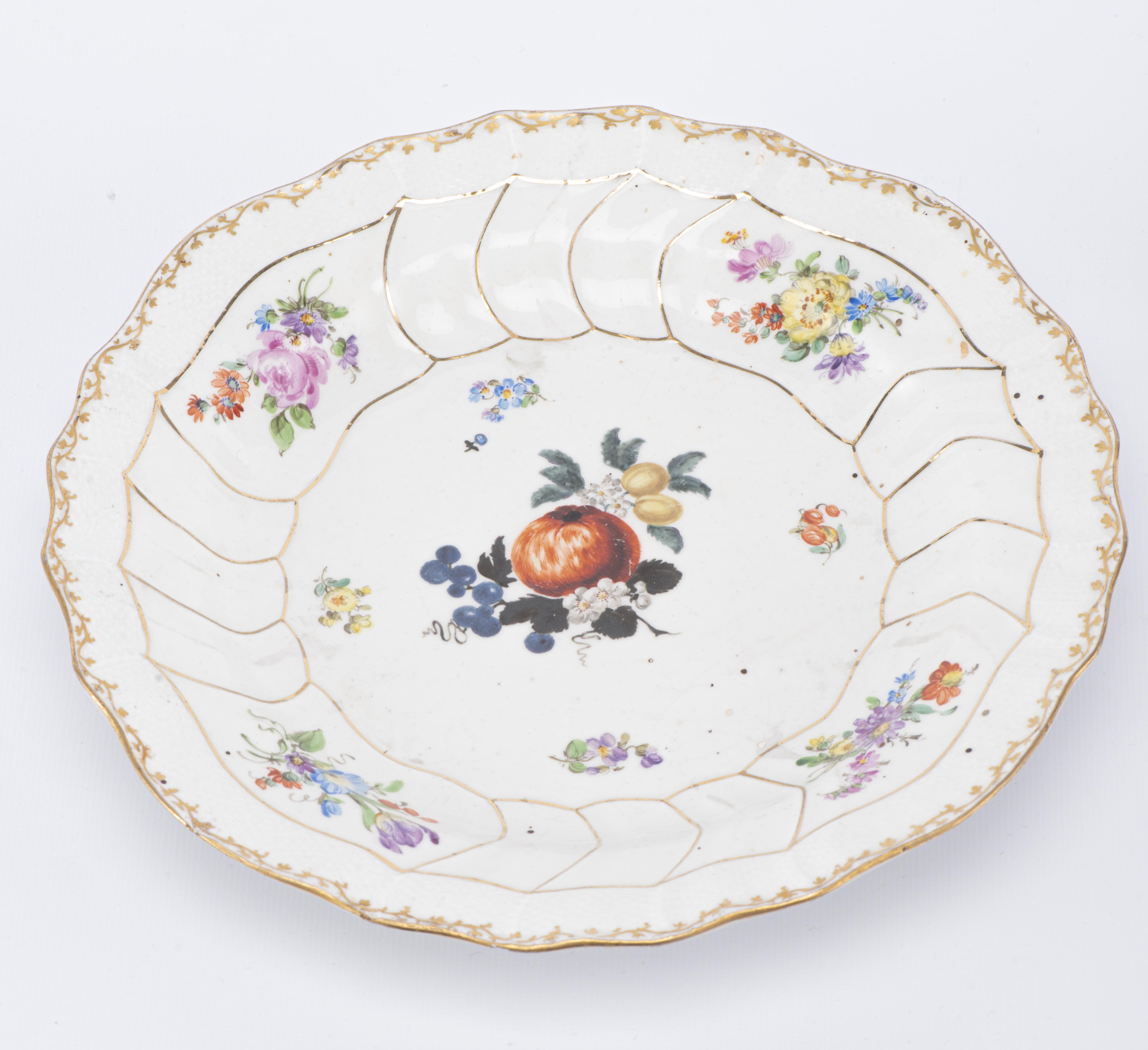 Assiette en porcelaine de Meissen, à décor de fleurs et fruits, signée sous la base et initiales G.A., Diam. 24.2 cm
