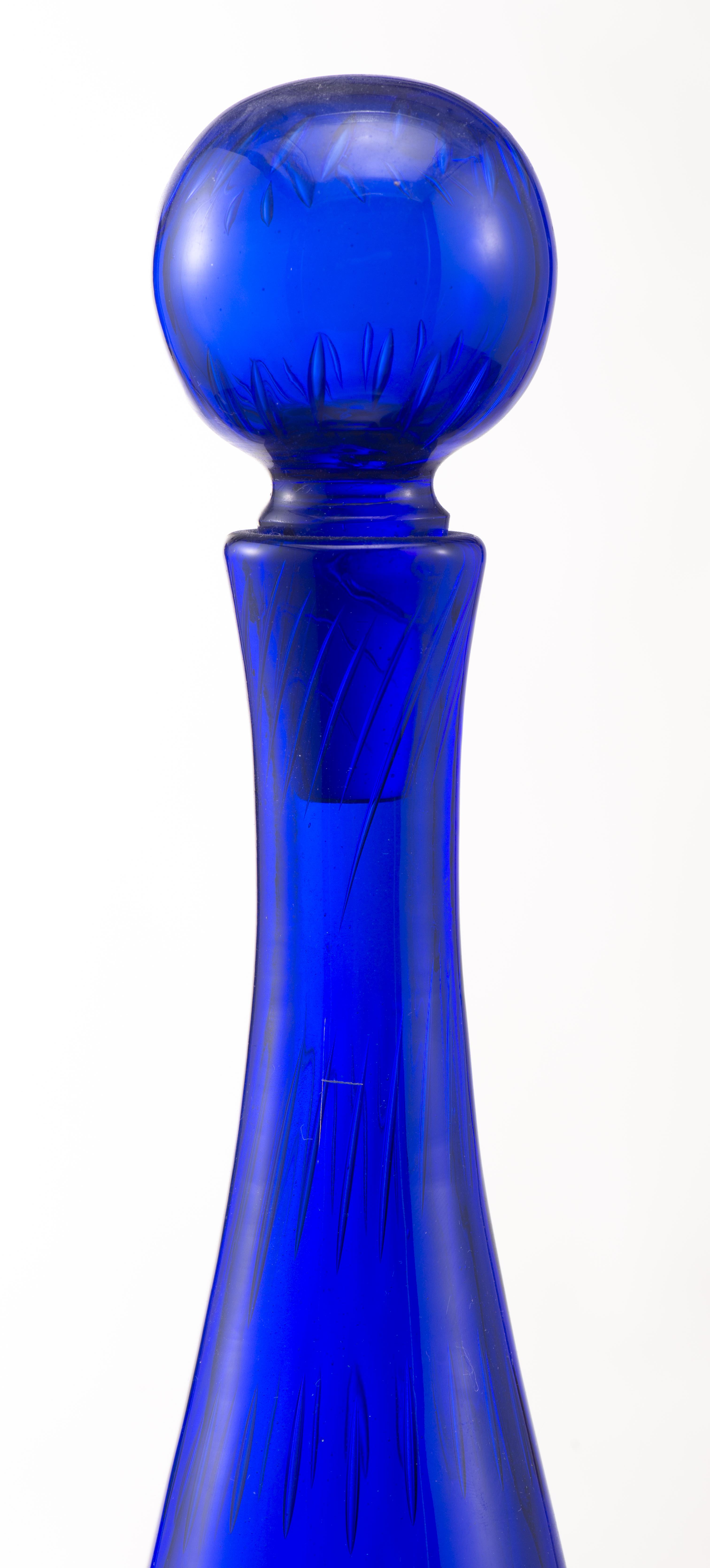 - carafe à bouchon rond, signée sous la base, H. 39.5 cm & Diam. 8 cm