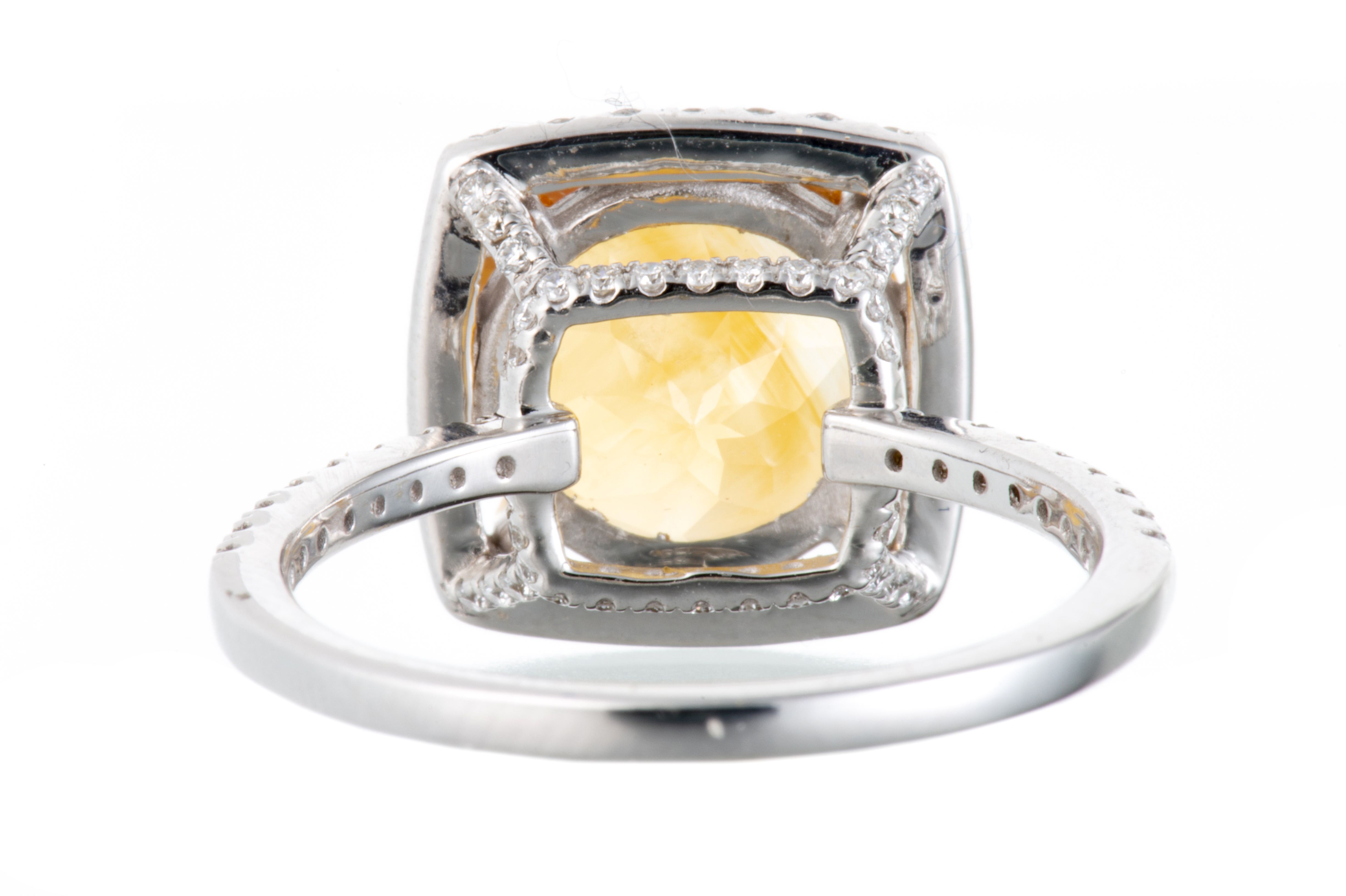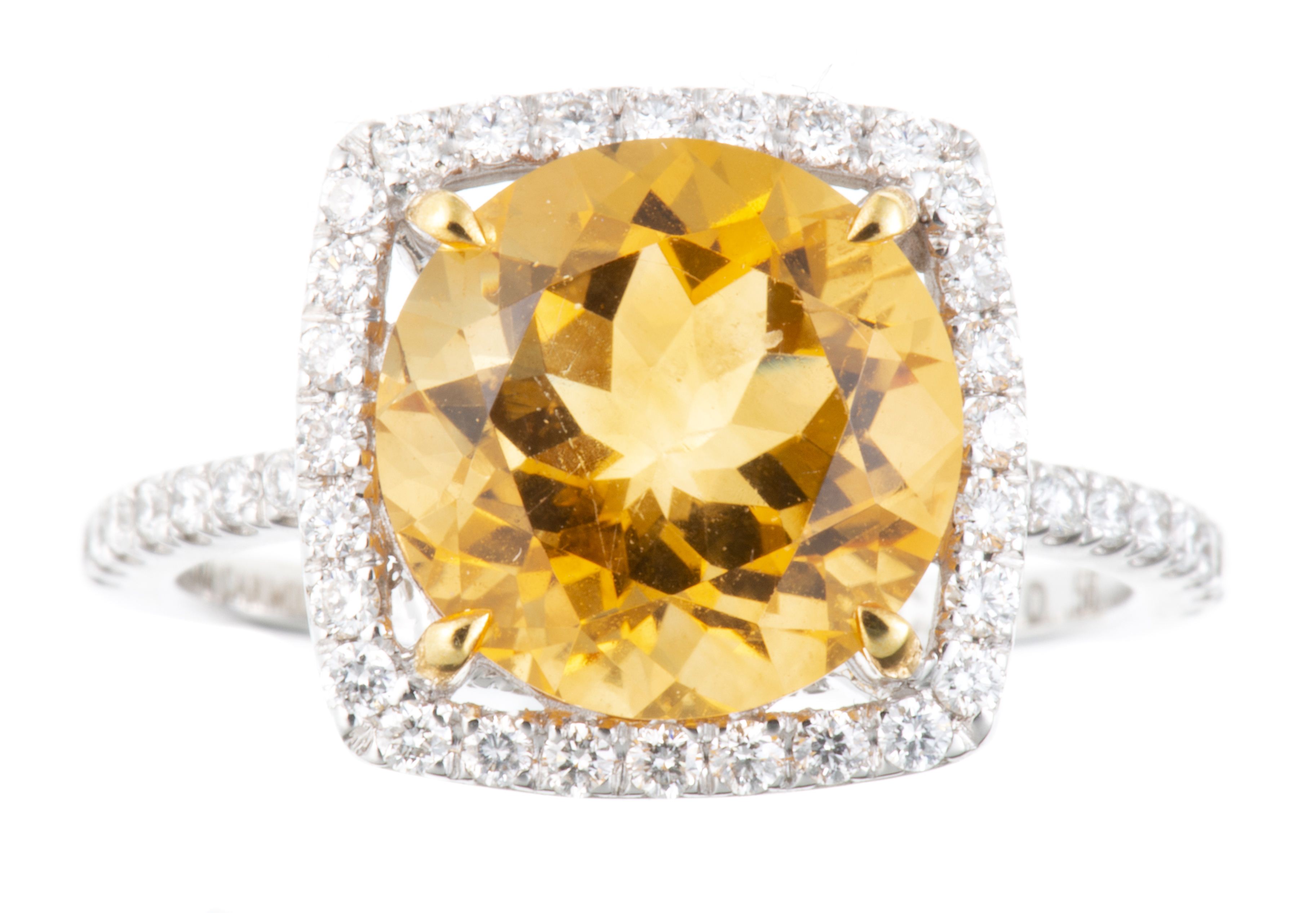 DIANA CARMICHAEL bague avec une citrine de taille ronde de 3.40 cts et une monture en or blanc .750 agrémentée de 0.56 ct de diamants.