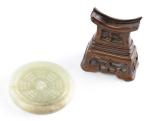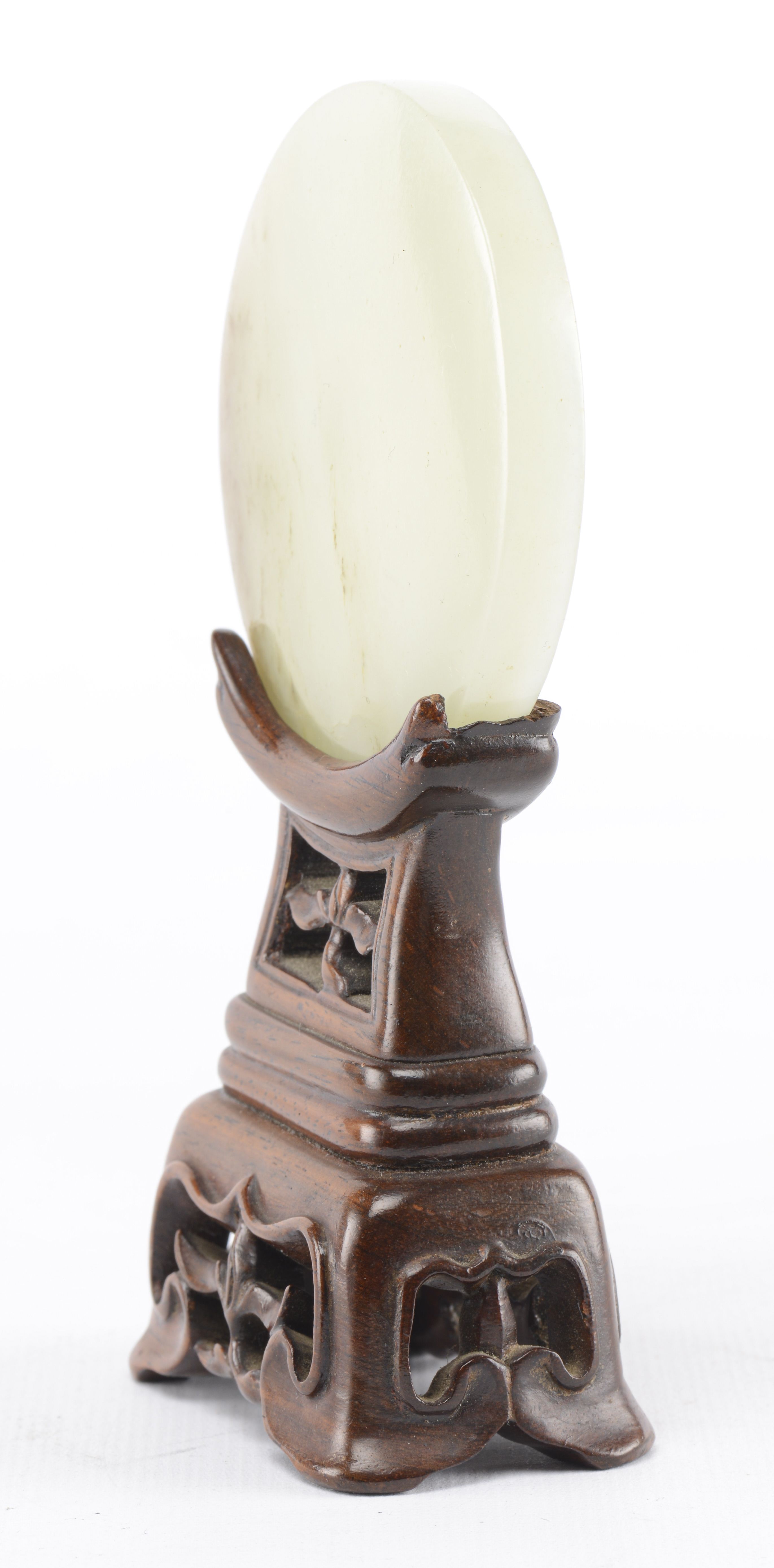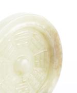 Disque en jade néphrite céladon en forme de miroir au décor des Bagua 8 trigrammes taoïstes.
