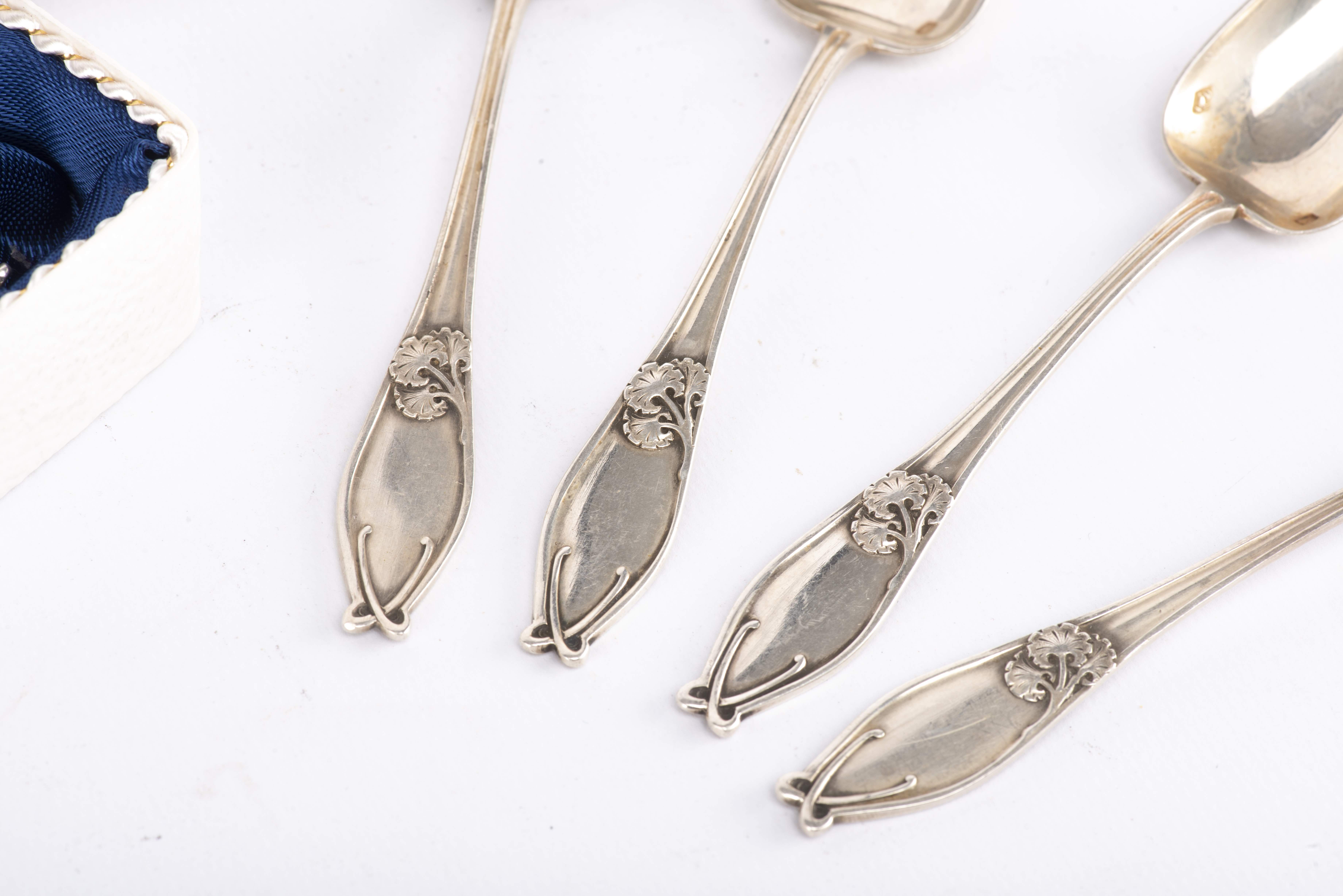 Dix cuillères à thé en argent français second titre d'époque Art nouveau à décor végétal.
