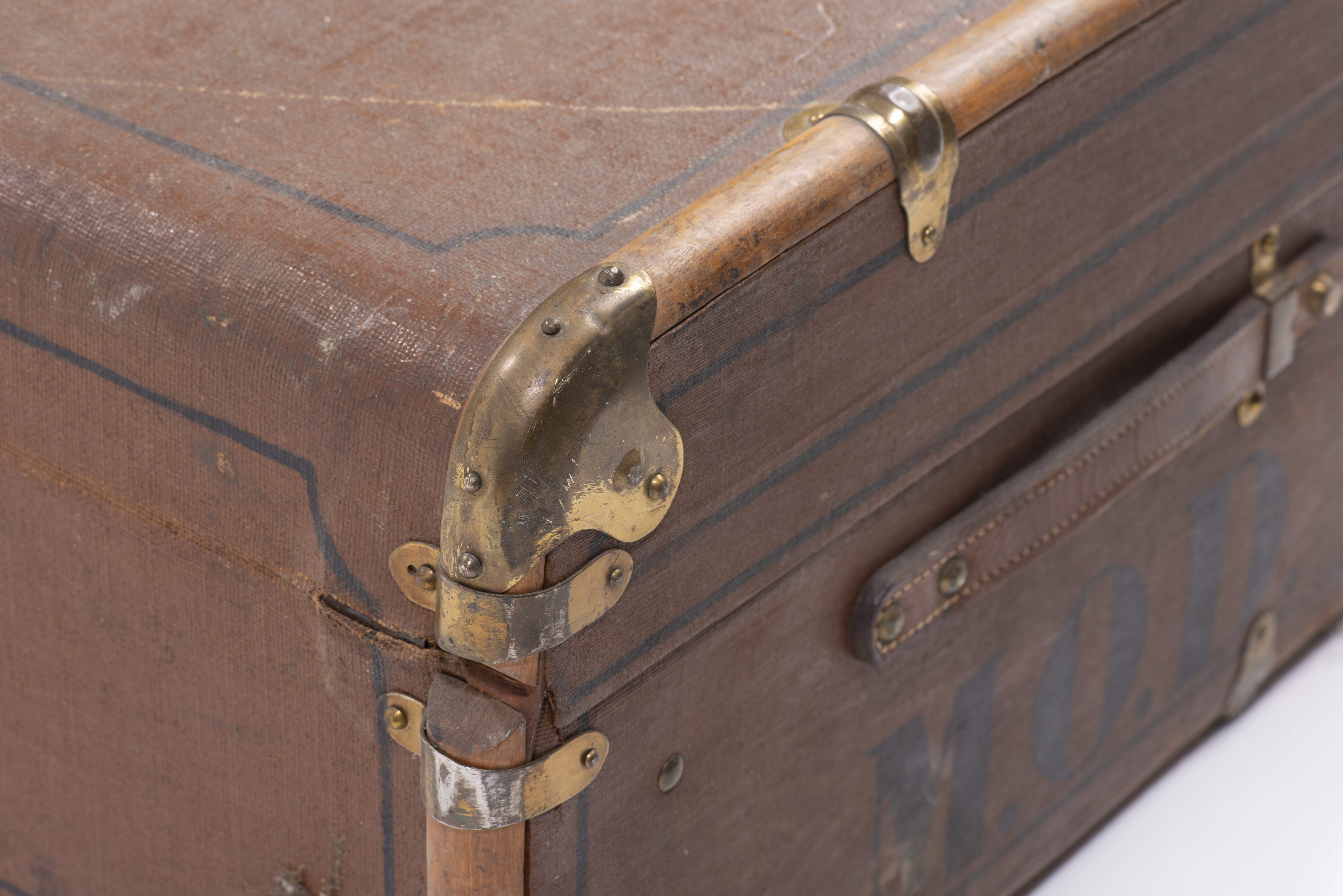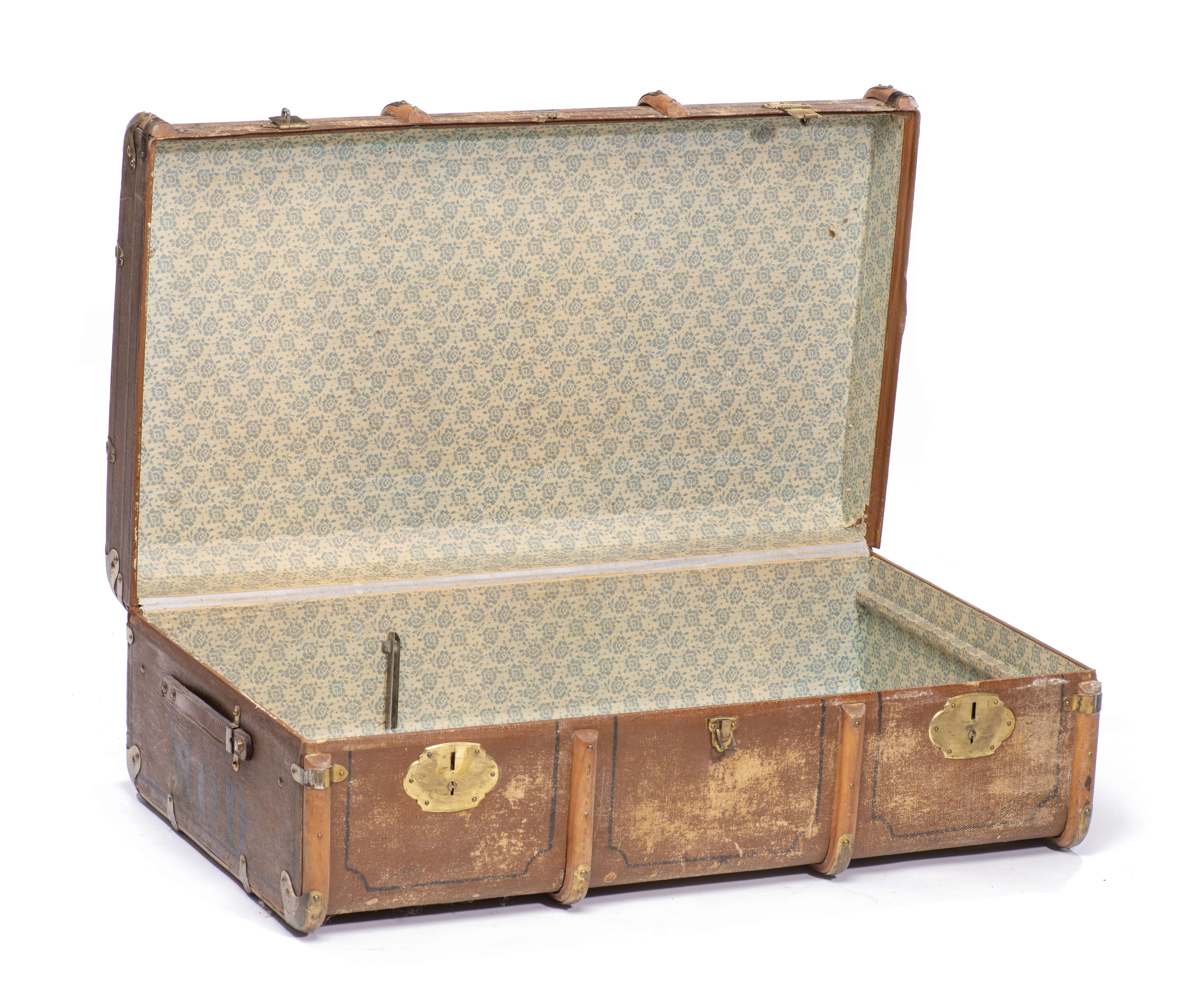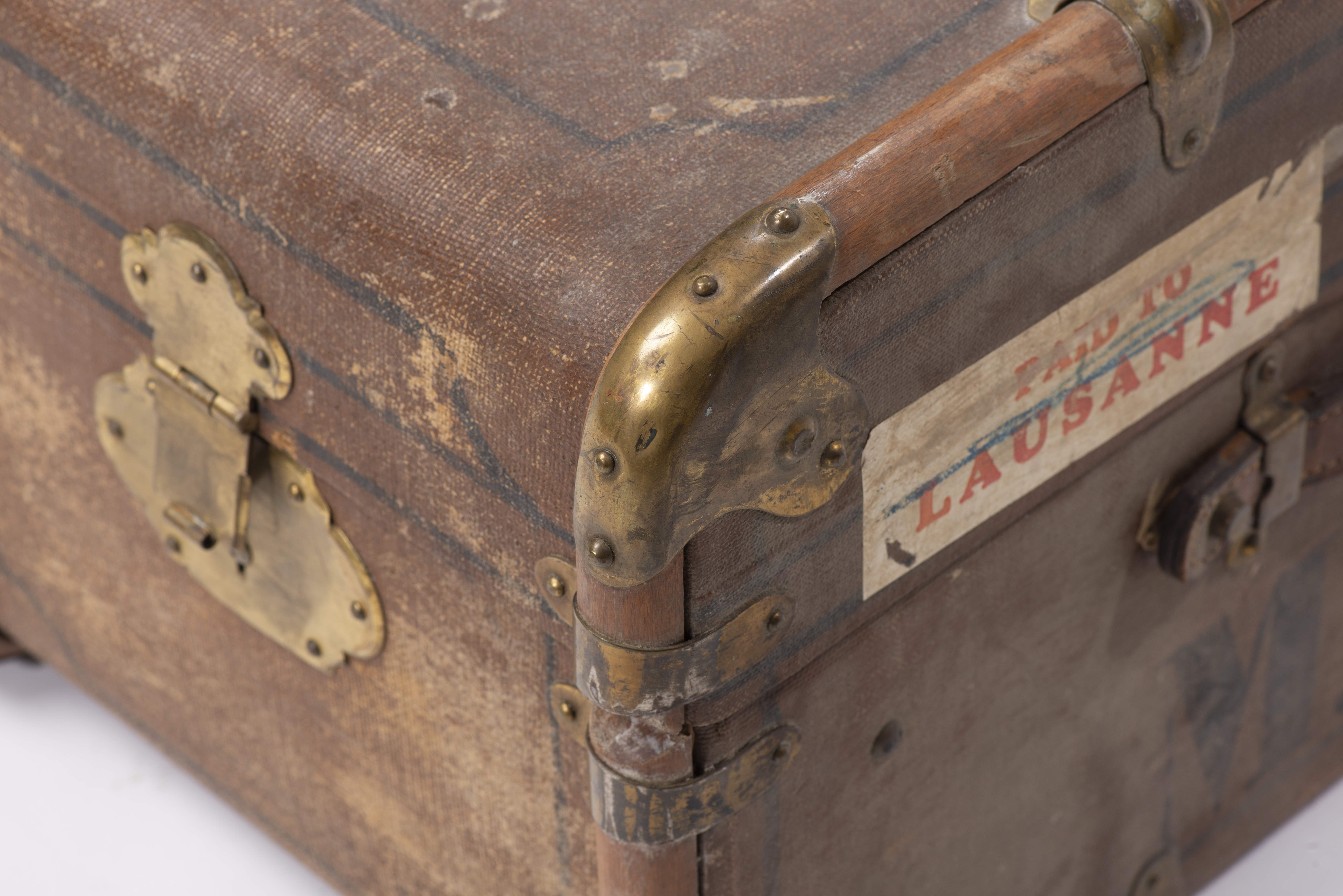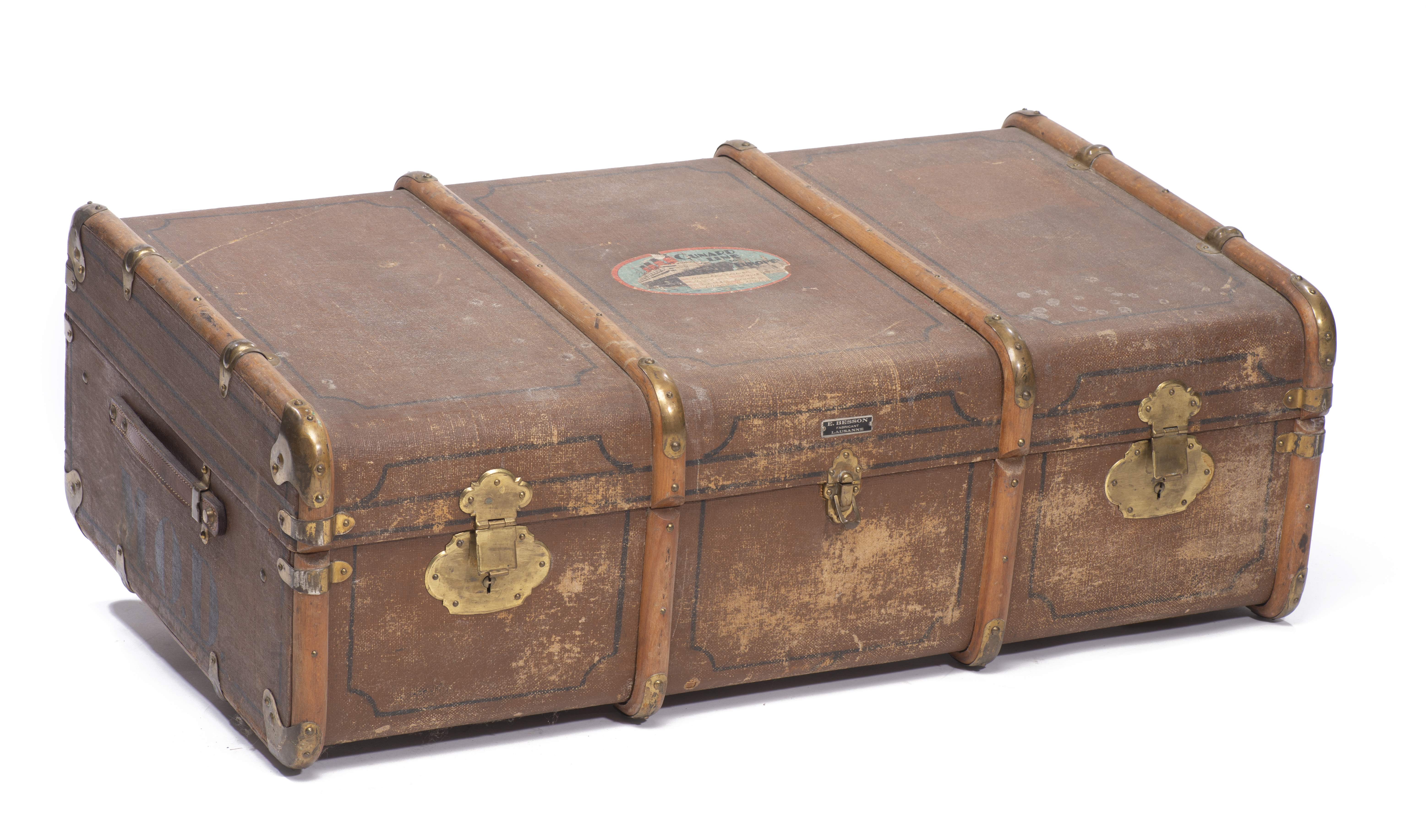 E. Besson Fabricant Lausanne, bagagiste, malle valise, ferrures et cloutage en métal doré, étiquettes dont celle du Cunard Line to Europe, etc.